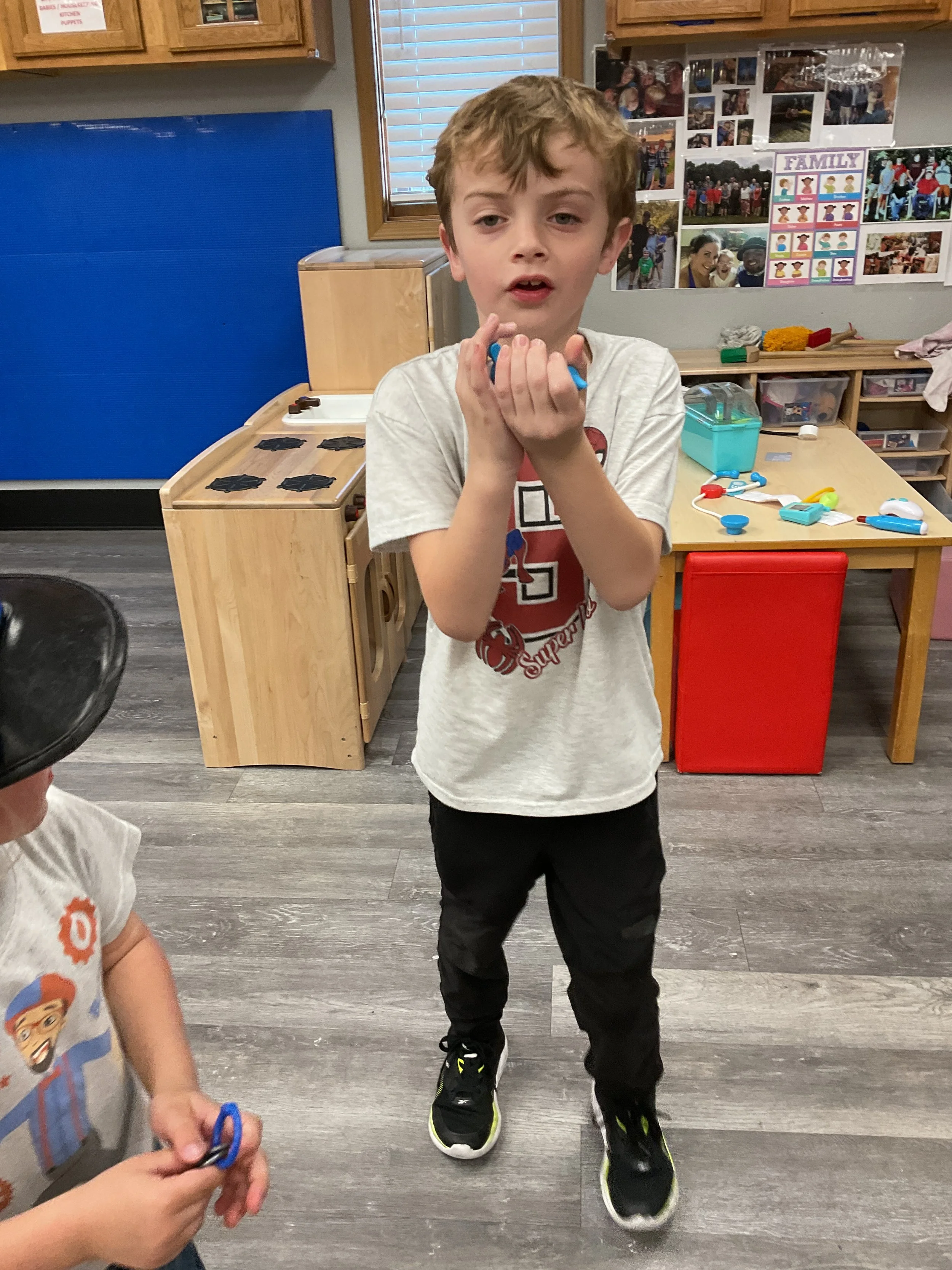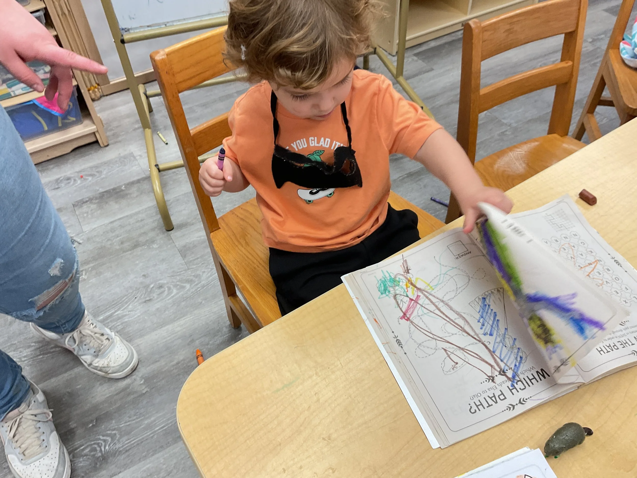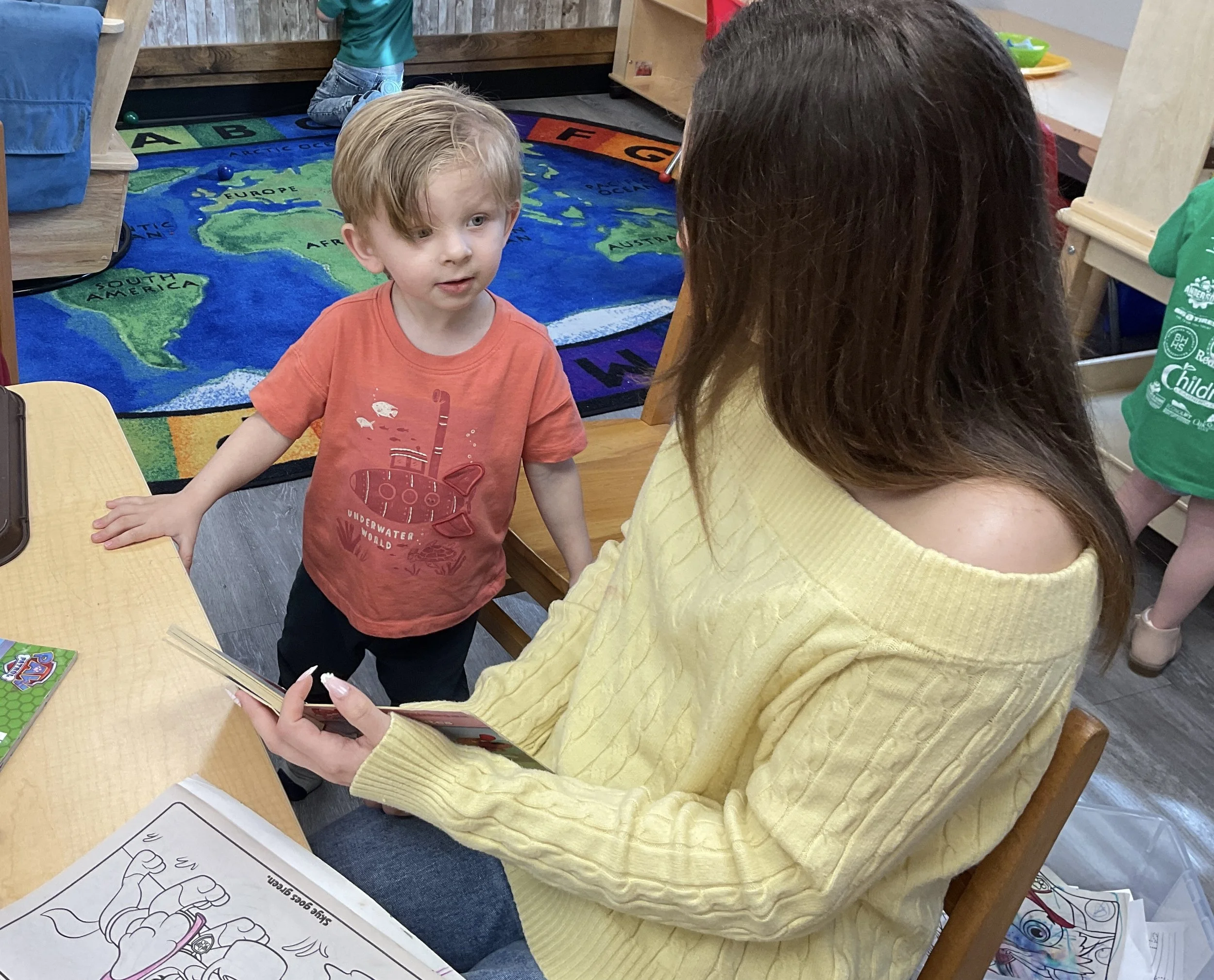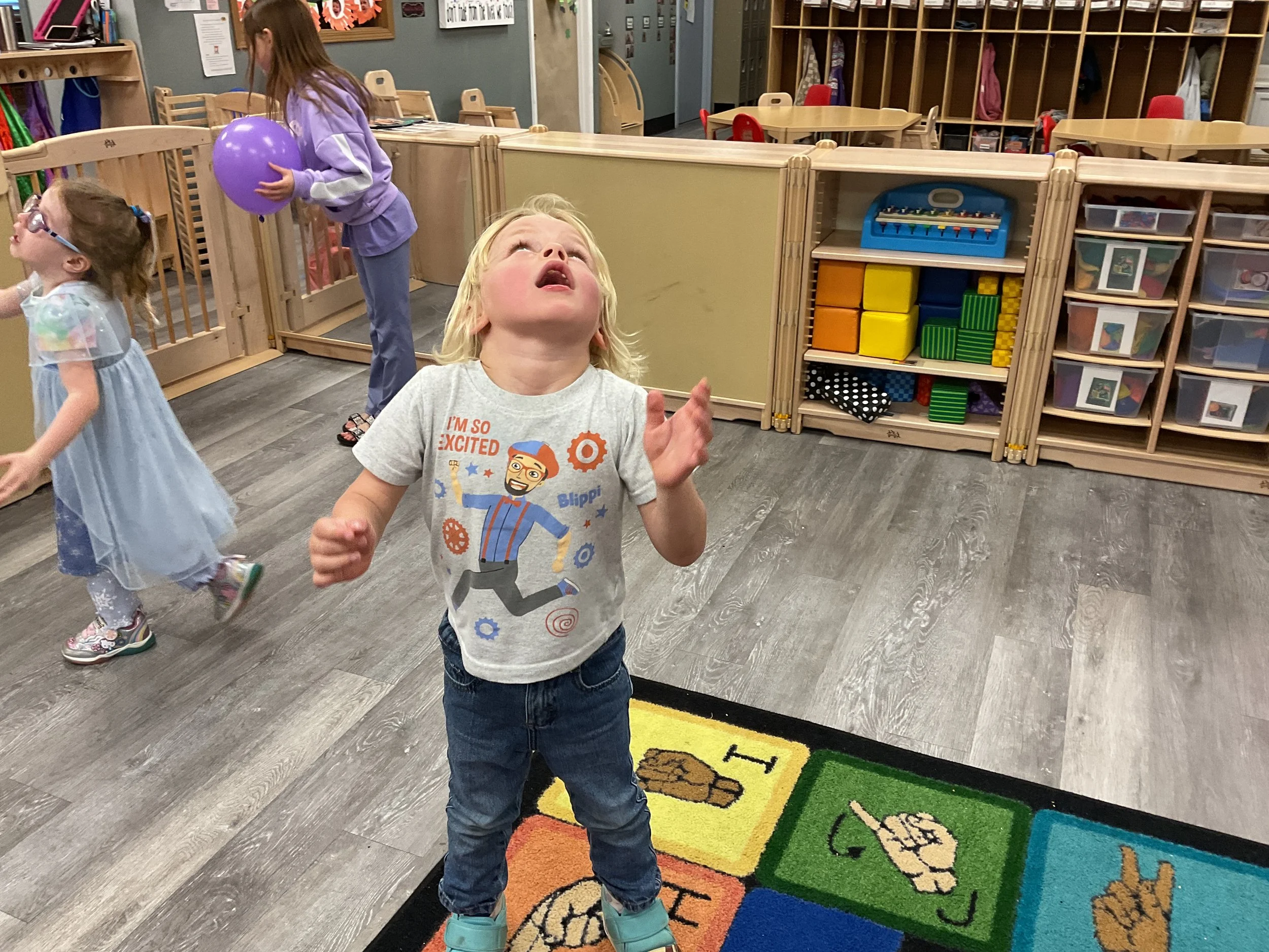This morning, we read the book Night is Coming written by W. Nikola-Lisa and illustrated by Jamichael Henterly. During our music and movement time, we played with balloons. Then, during our math and cognition lesson, we worked on simple addition. Next, for our science and sensory lesson, we made an “eyes at night” picture. Finally, for our literacy and fine motor lesson, we listened to a book on tape.