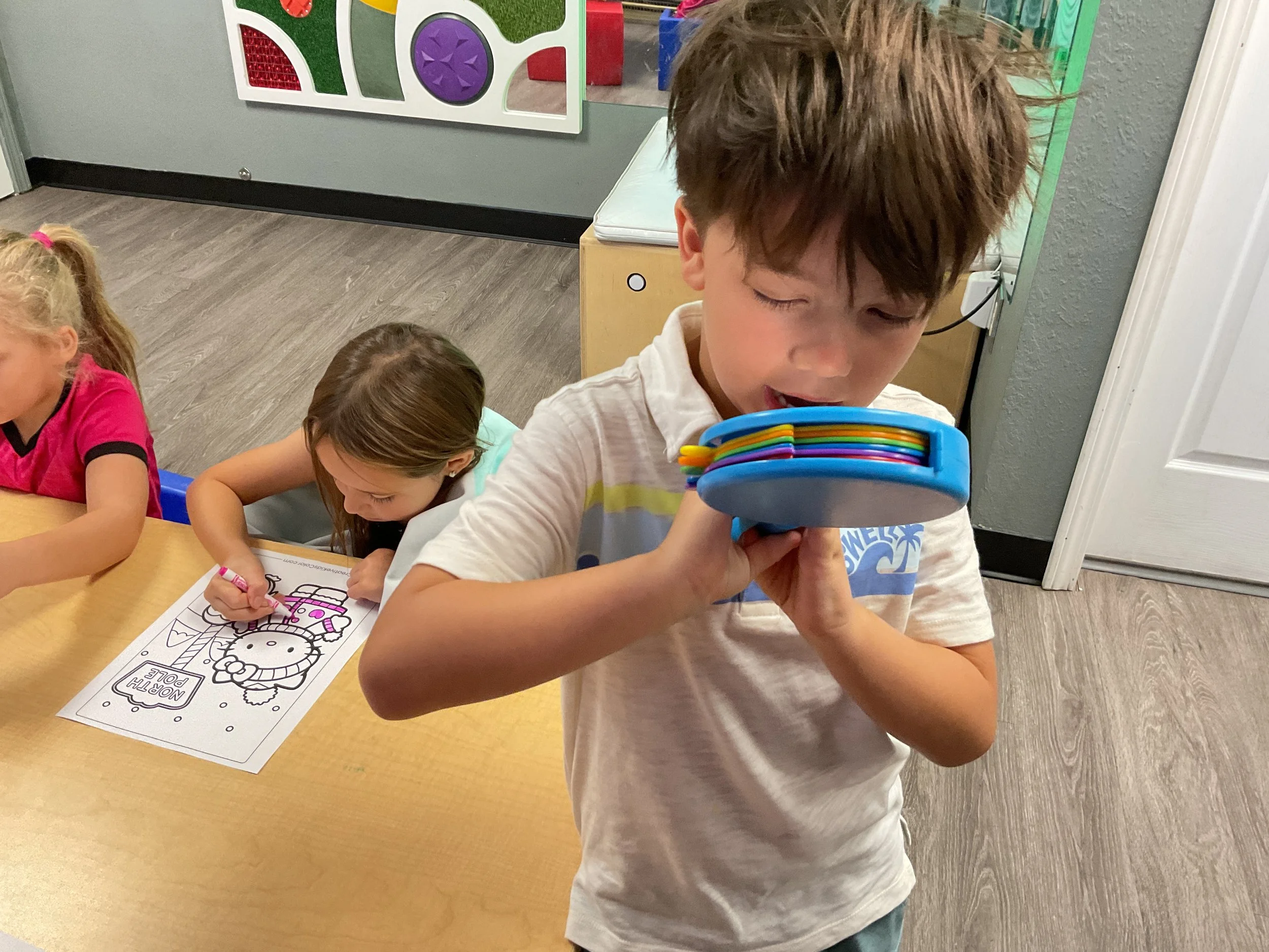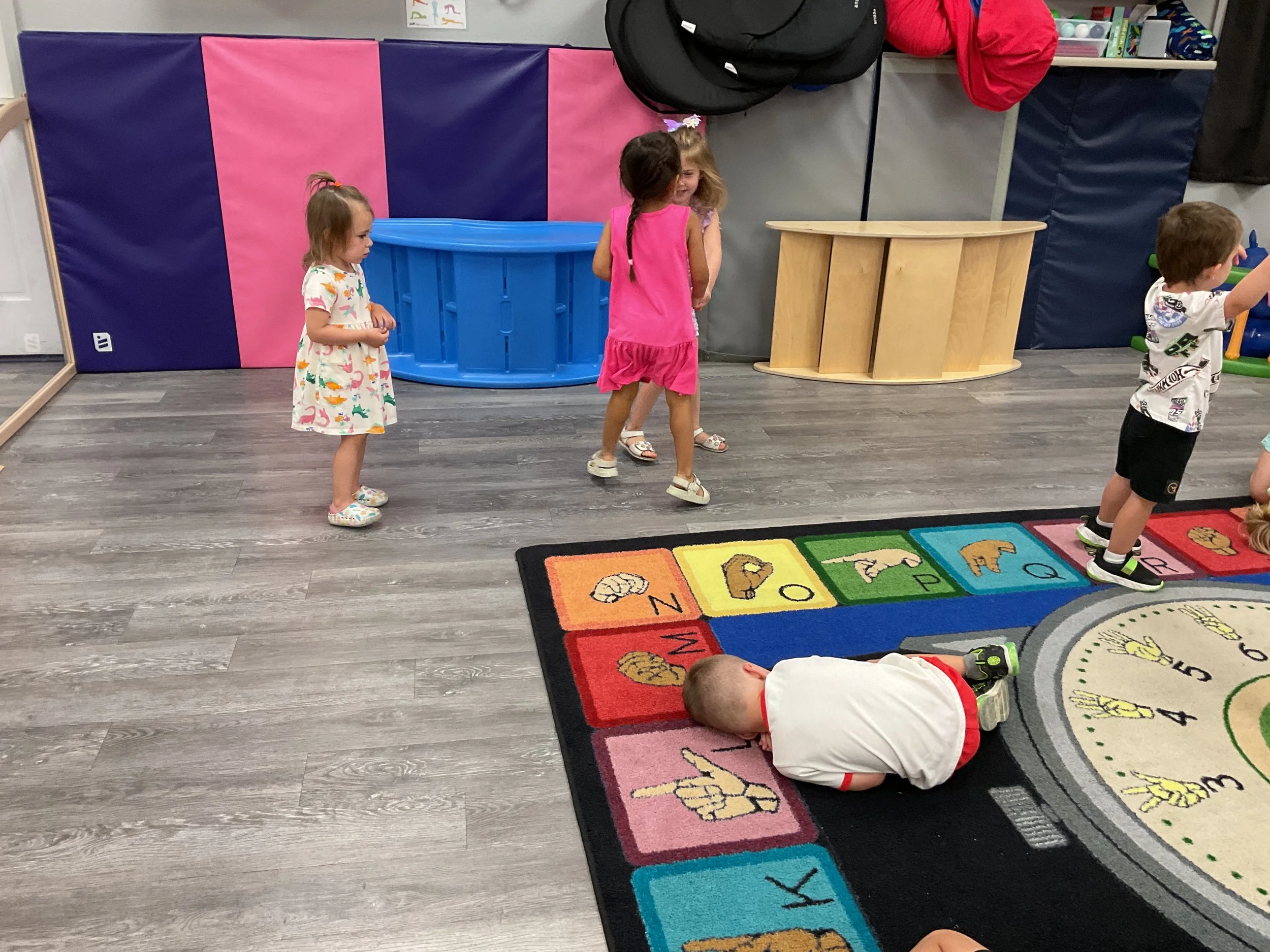 Today we read the book A Silly Snow Day written by Michael Coleman and illustrated by Gwyneth Williamson. During music and movement time, we played “Duck, Duck, Goose” and sang the “Wheels on the Bus” while we used scarves to make the motions. During our math and cognition lesson, we matched stockings by color. For our science and sensory lesson, we attempted to make instant ice. Finally, during our fine motor and literacy lesson, we used our fingers to paint a snowy picture.