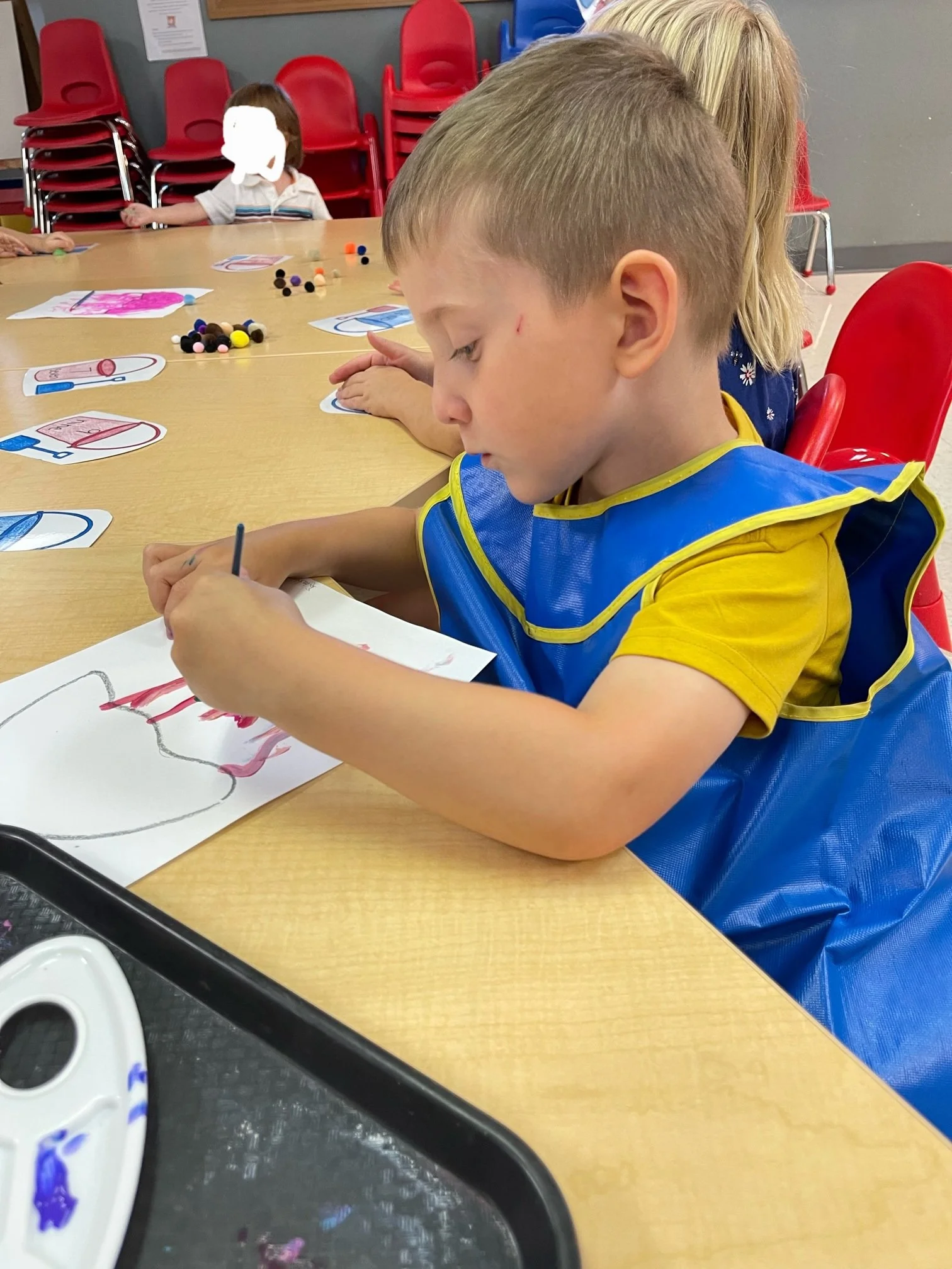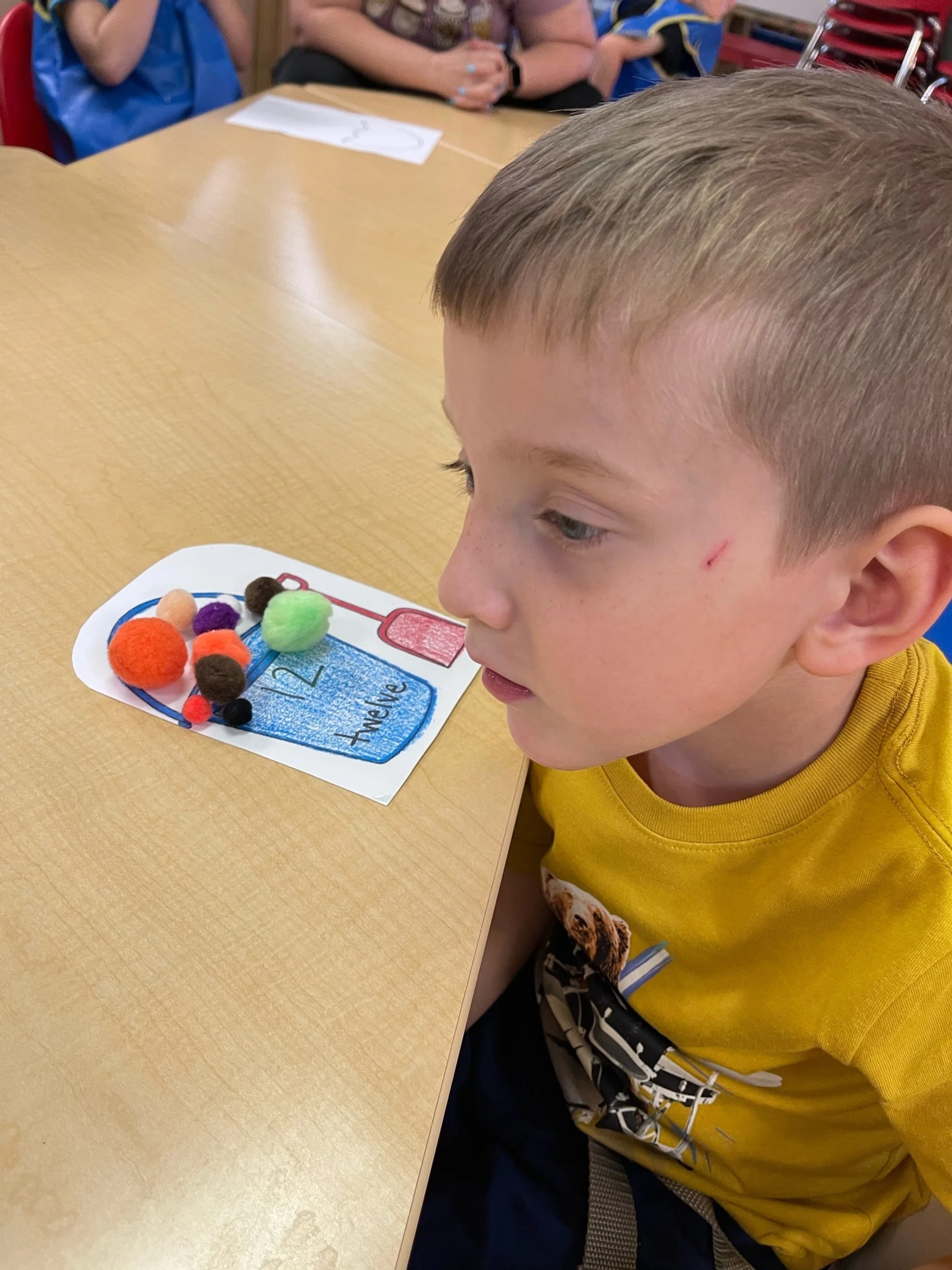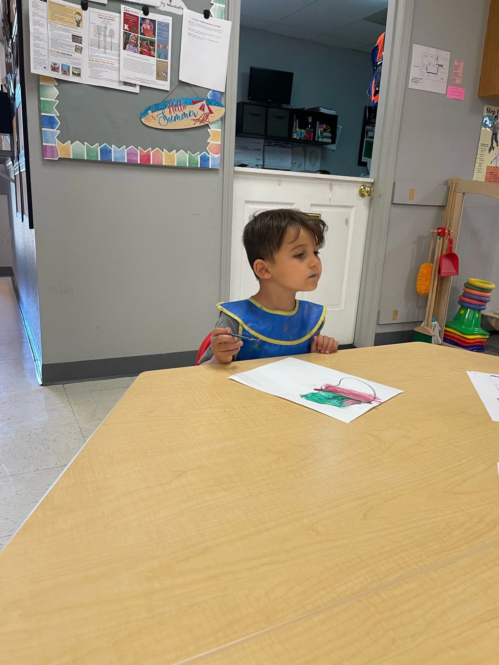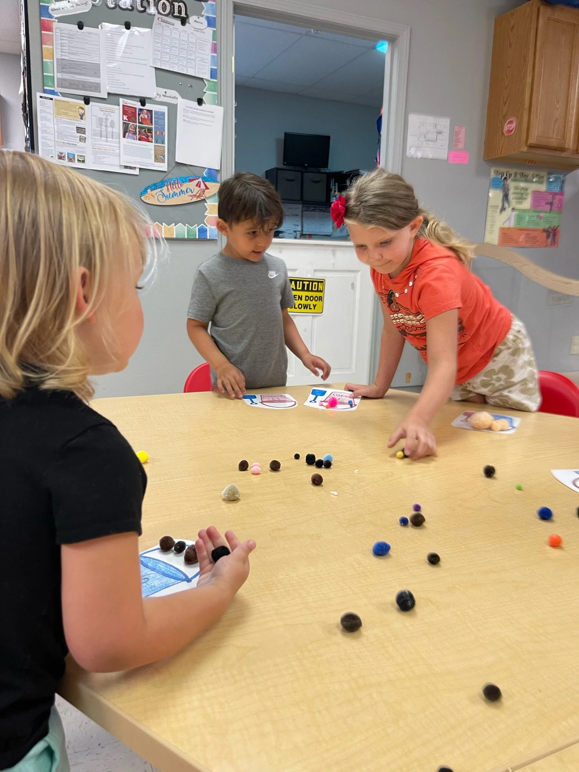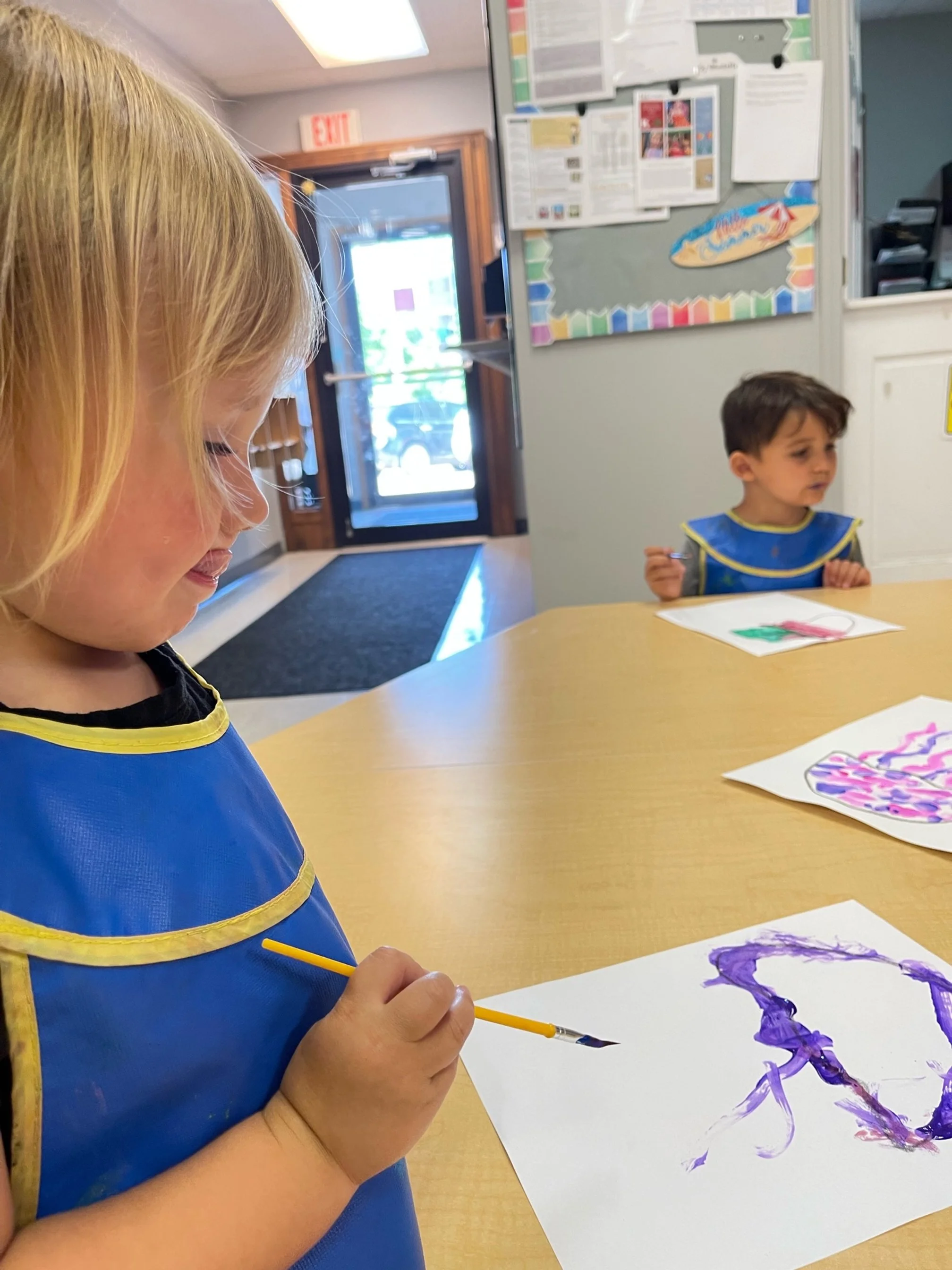 Today we read Never Take a Shark to the Dentist by Judi Barrett. This book tells us not to do certain things with some animals because an ant might take your picnic food away or taking a centipede shoe shopping because of all of his feet. For our math and cognition activity, we counted some sand balls (pom poms) and placed them into sand buckets. Then we used our literacy and fine motor skill to listen to a book on tape. We listened to the book Clifford Makes a Splash by Quinlan Lee and found how much fun we can have when we go to the beach. During our sensory and science activity, we made a jellyfish painting. We painted the top of the jellyfish and added tentacles to our jellyfish.