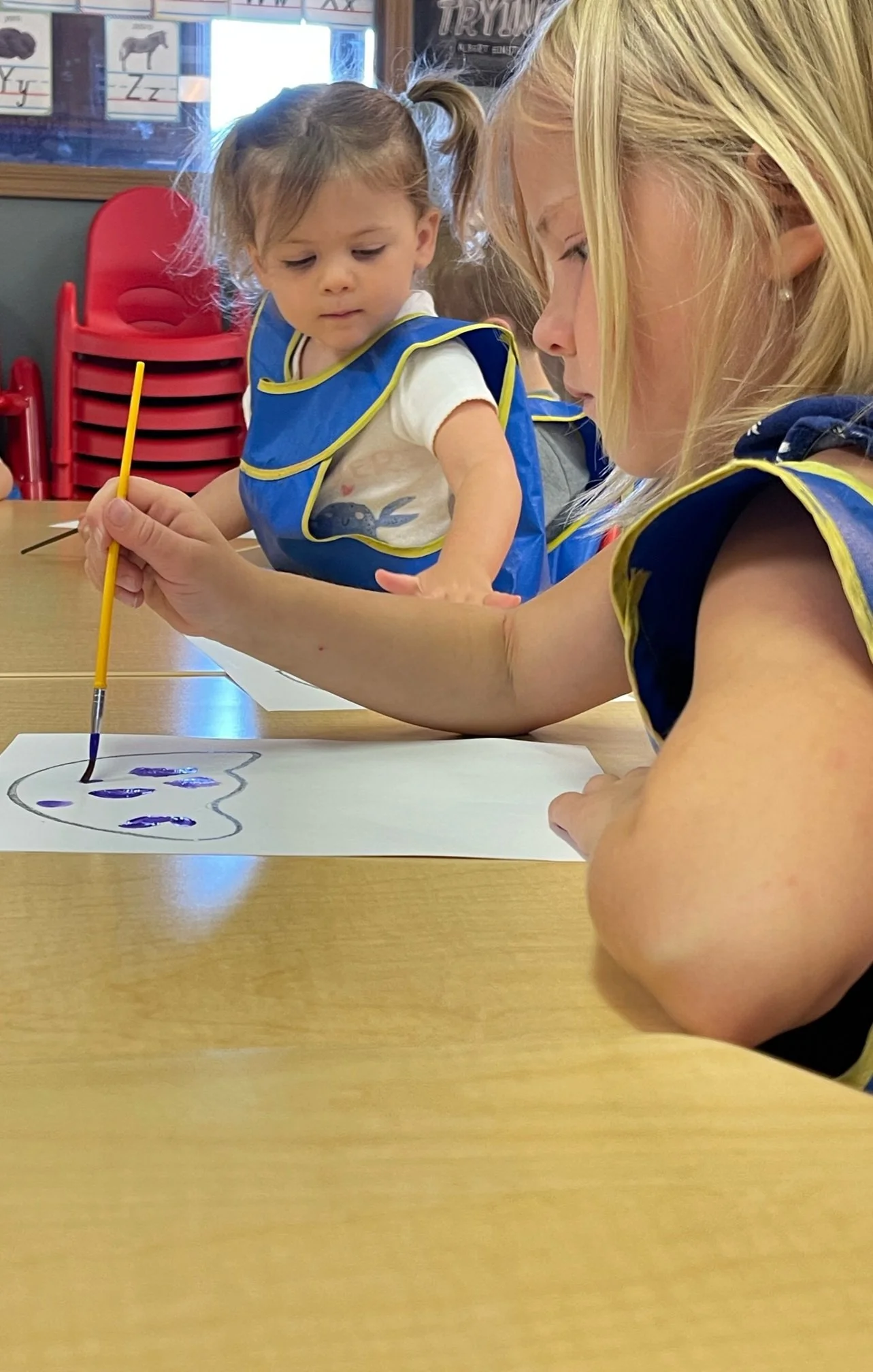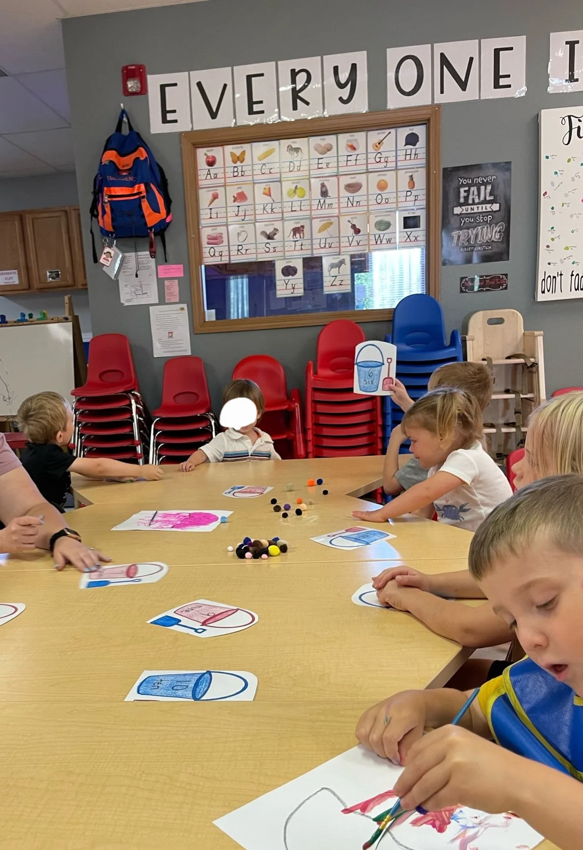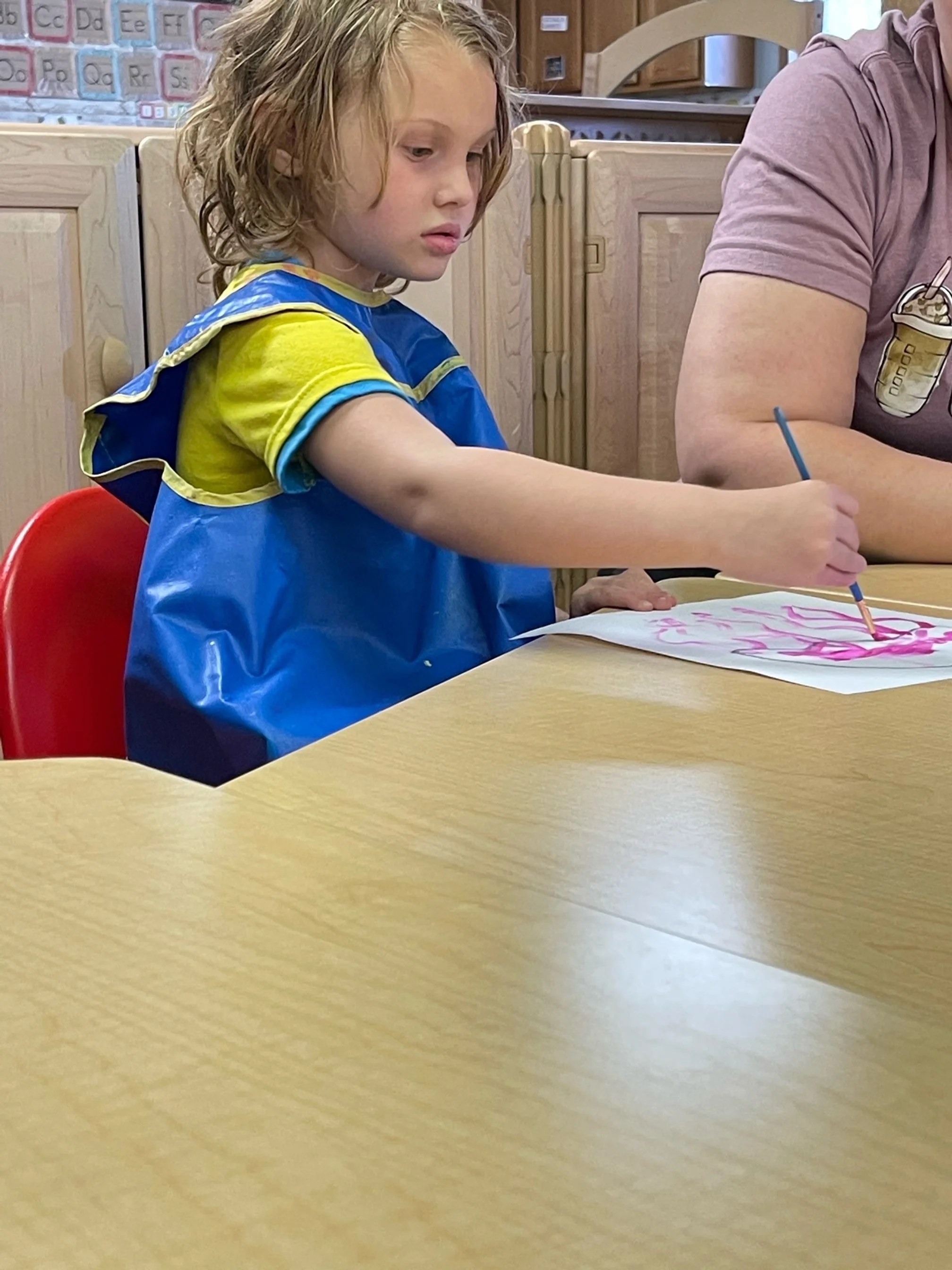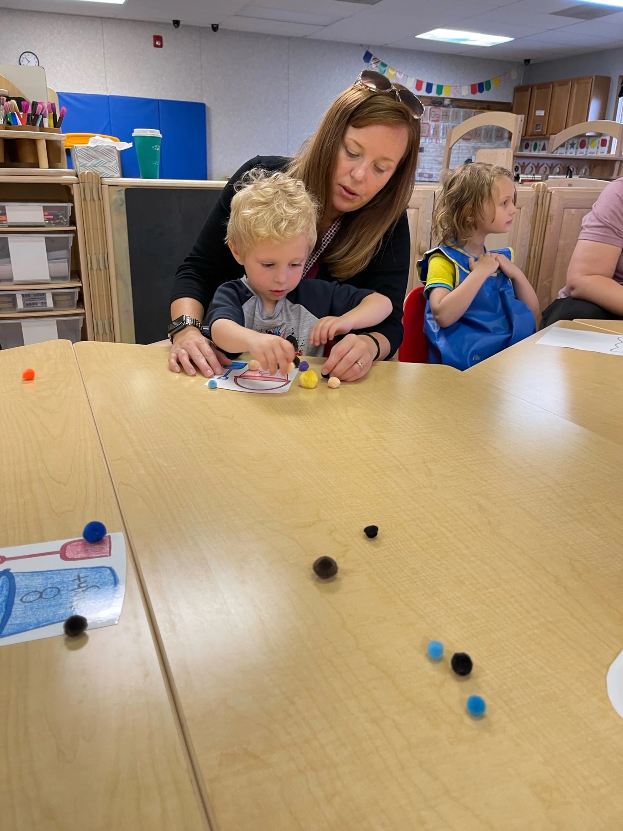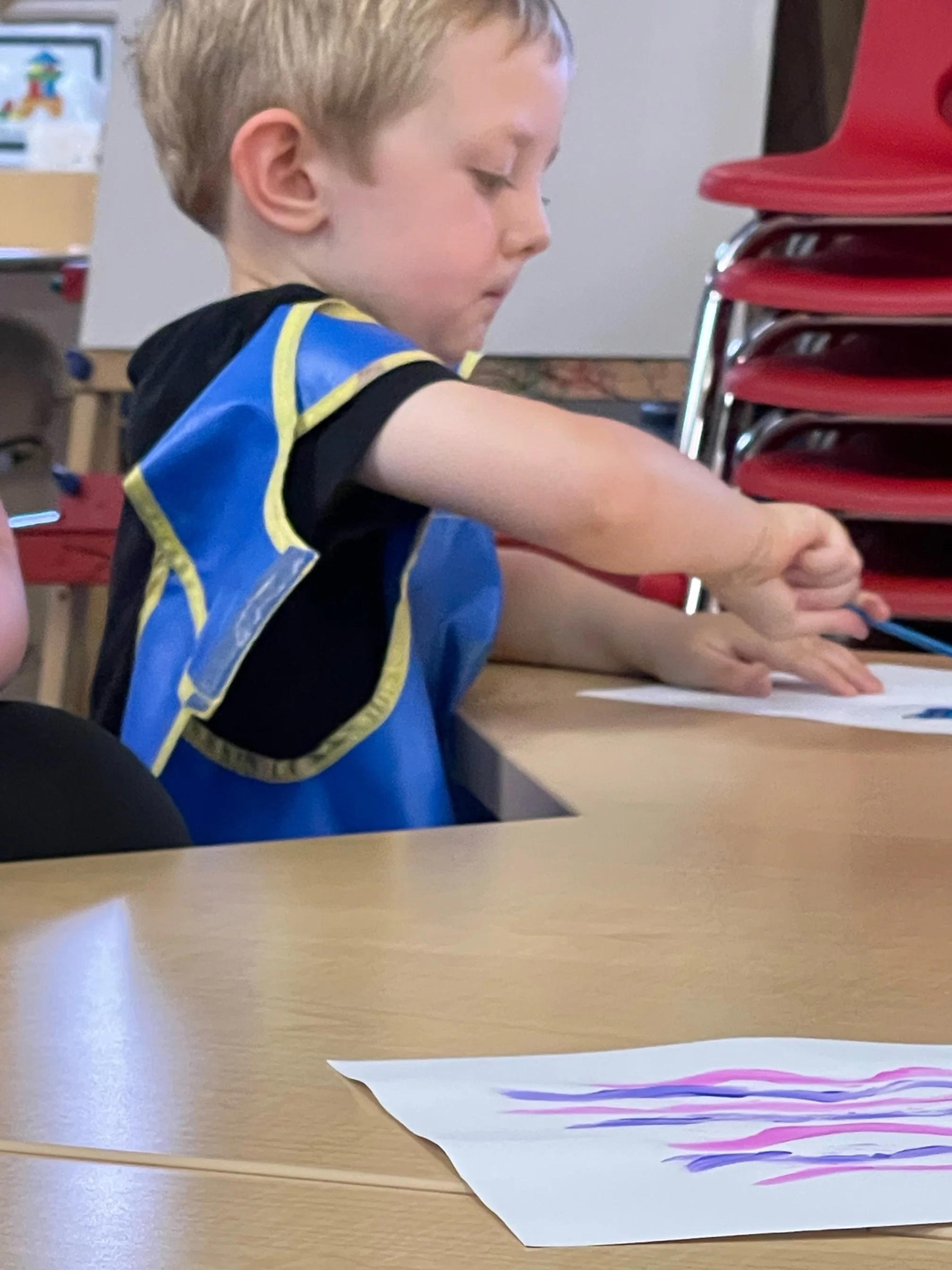 Today we read Never Take a Shark to the Dentist by Judi Barrett. This book tells us not to do certain things with some animals because an ant might take your picnic food away or taking a centipede shoe shopping because of all of his feet. For our math and cognition activity, we counted some sand balls (pom poms) and placed them into sand buckets. Then we used our literacy and fine motor skill to listen to a book on tape. We listened to the book Clifford Makes a Splash by Quinlan Lee and found how much fun we can have when we go to the beach. During our sensory and science activity, we made a jellyfish painting. We painted the top of the jellyfish and added tentacles to our jellyfish.