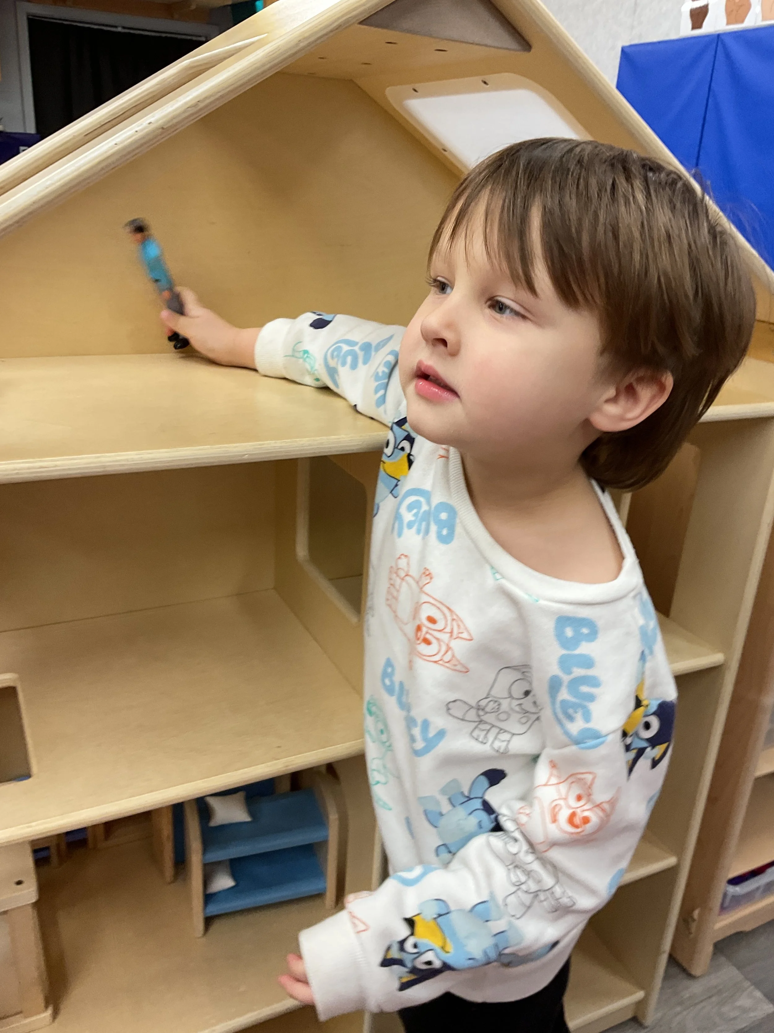 This morning, we read the book There was a Cold Lady Who Swallowed Some Snow written by Lucille Colandro and illustrated by Jared Lee. During our music and movement time, we got ready for our day with some yoga! Then, during our math and cognition lesson, we worked on identifying 3 dimensional shapes such as cone, cube, sphere and cylinder. Next, for our science and sensory lesson, we put a few ice cubes in our sensory bin. Finally, for our literacy and fine motor lesson, we traced the alphabet.