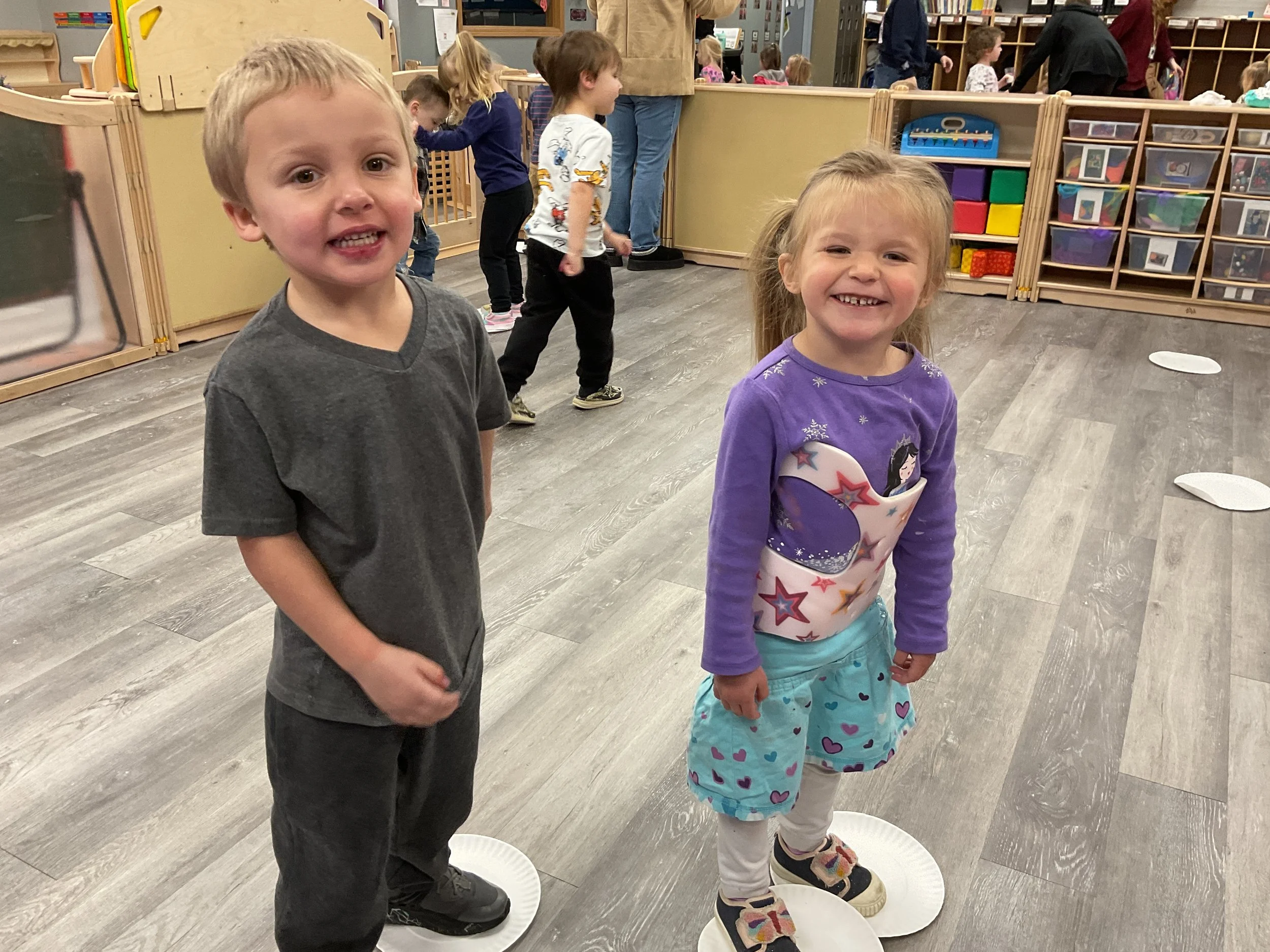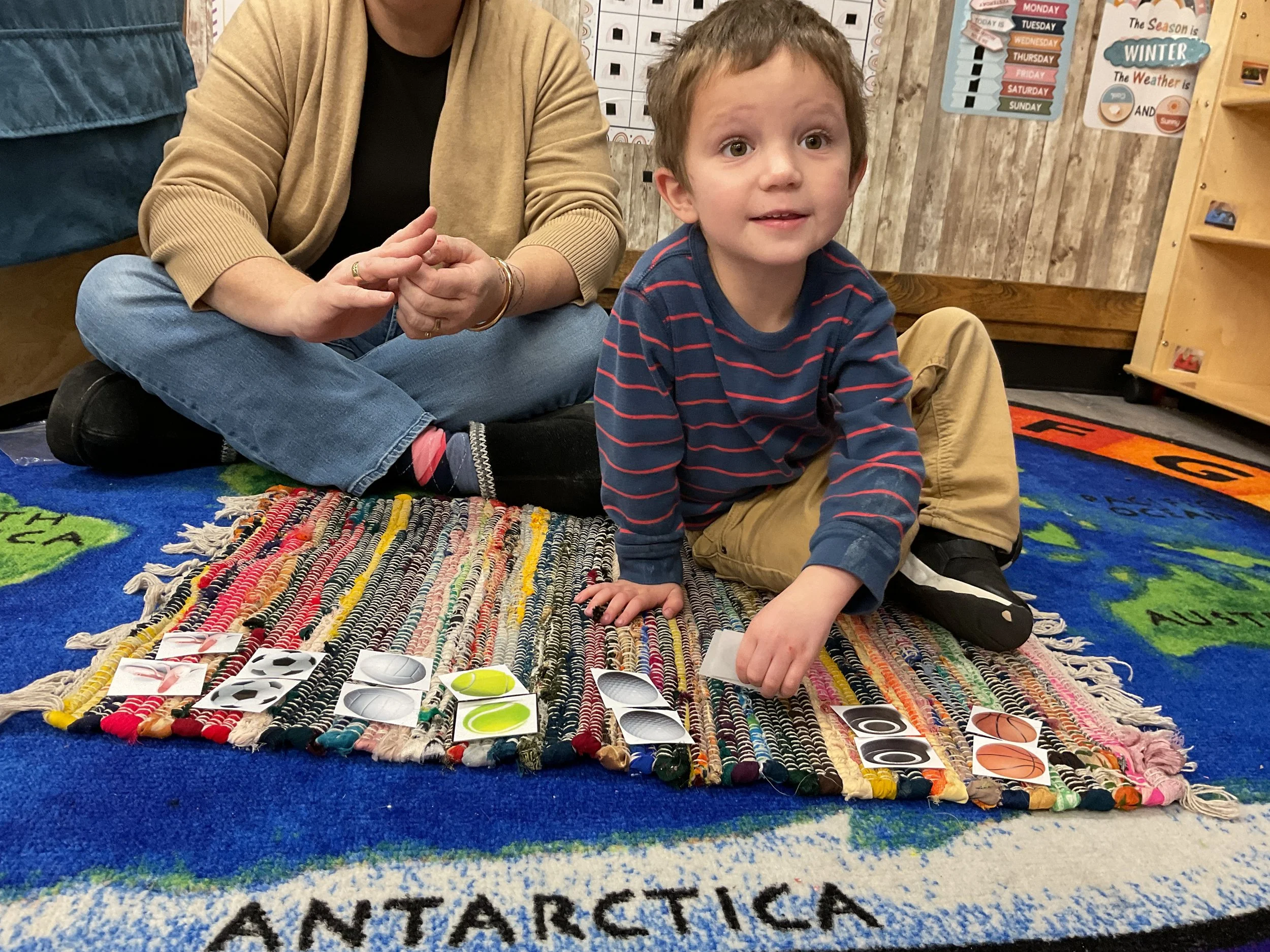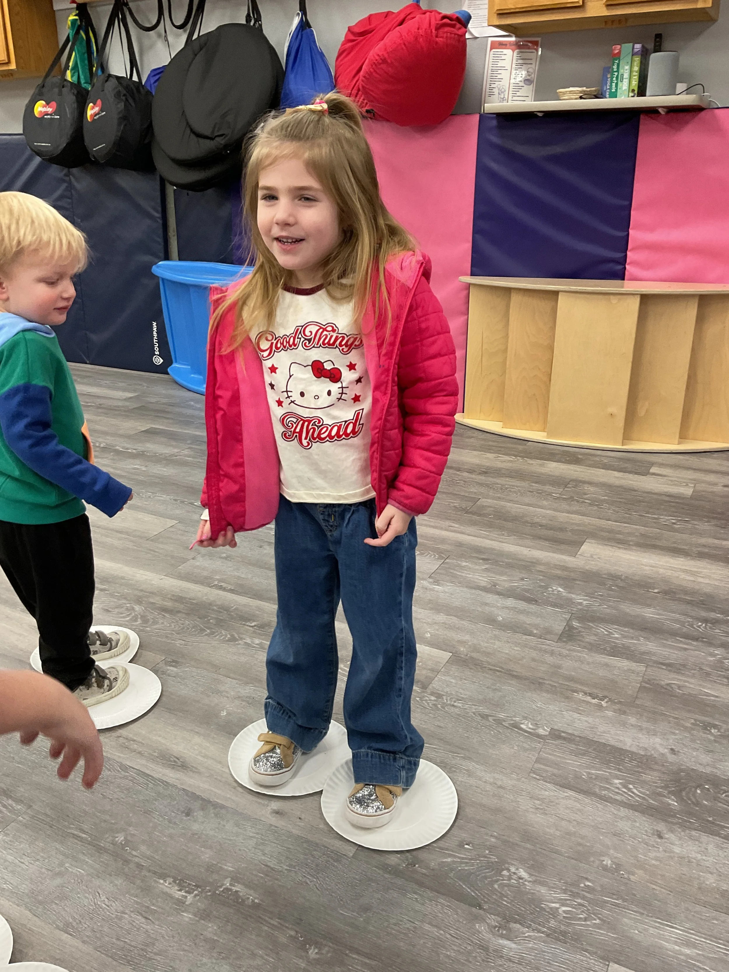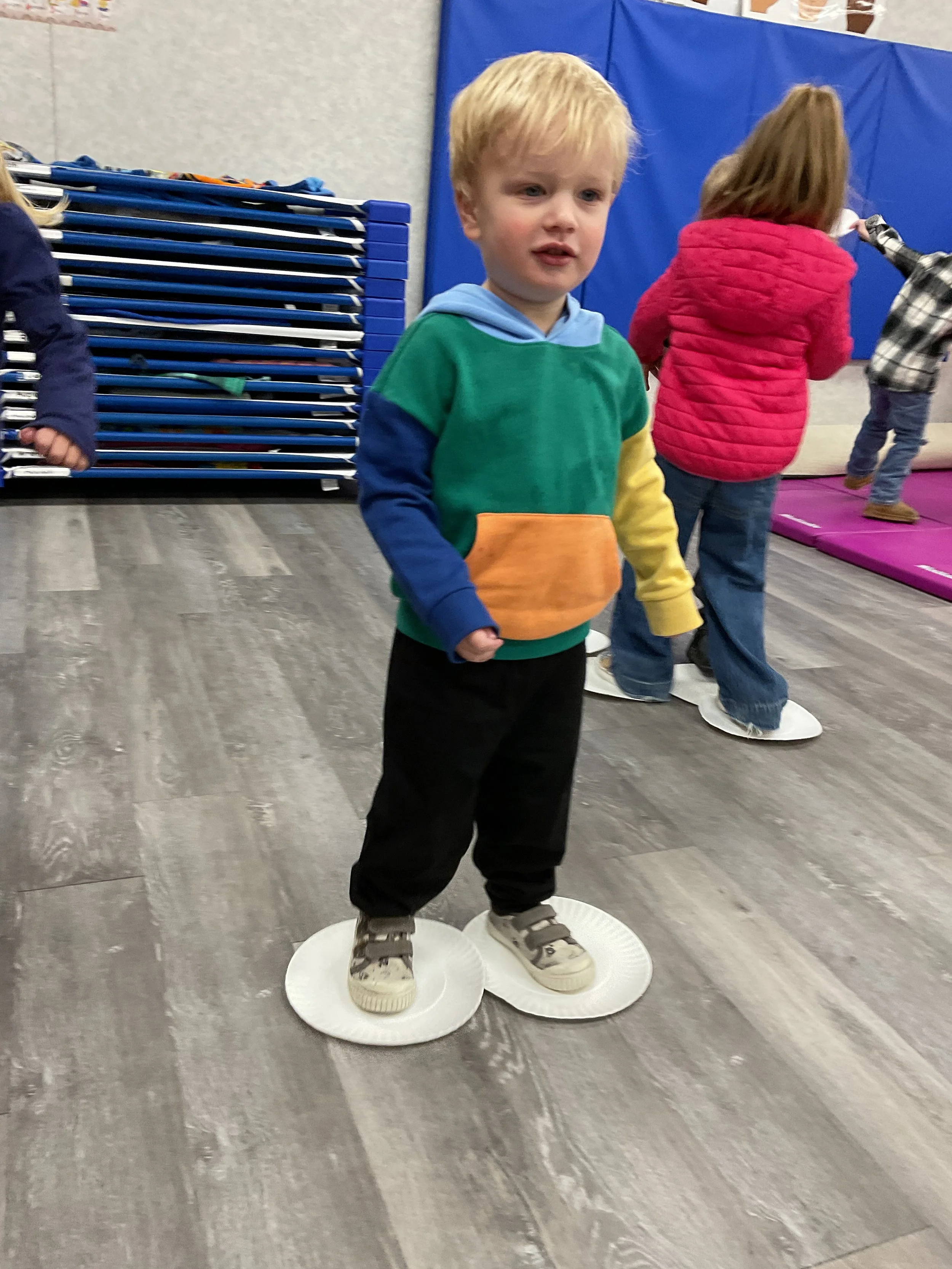 This morning, we read the book Pete the Cat: Play Ball written and illustrated by James Dean. During our music and movement time, we went ice skating inside! Then, during our math and cognition lesson, we matched sports equipment together. Next, for our science and sensory lesson, we decorated an Olympic medal. Finally, for our literacy and fine motor lesson, we practiced tracing and writing our names.