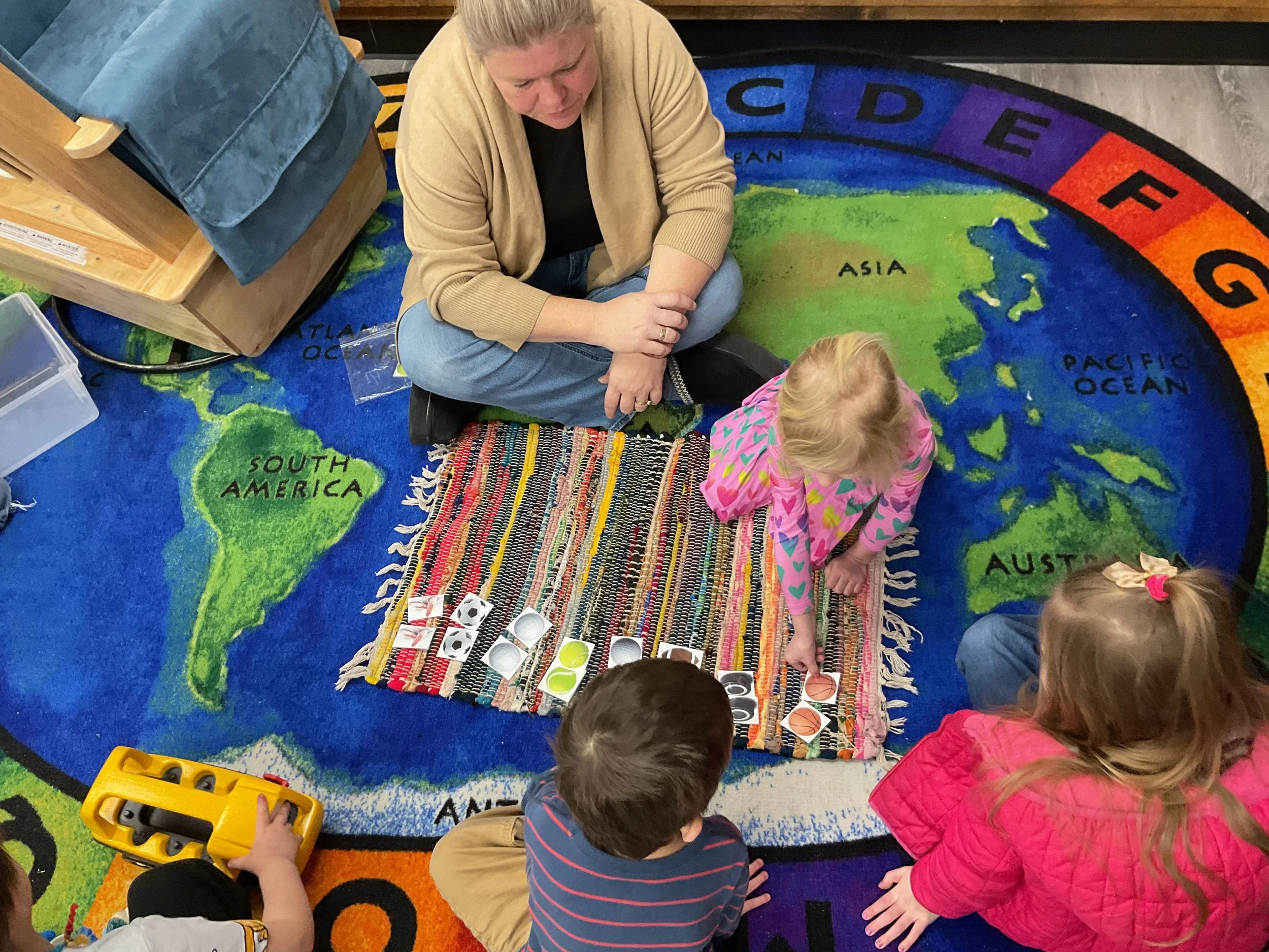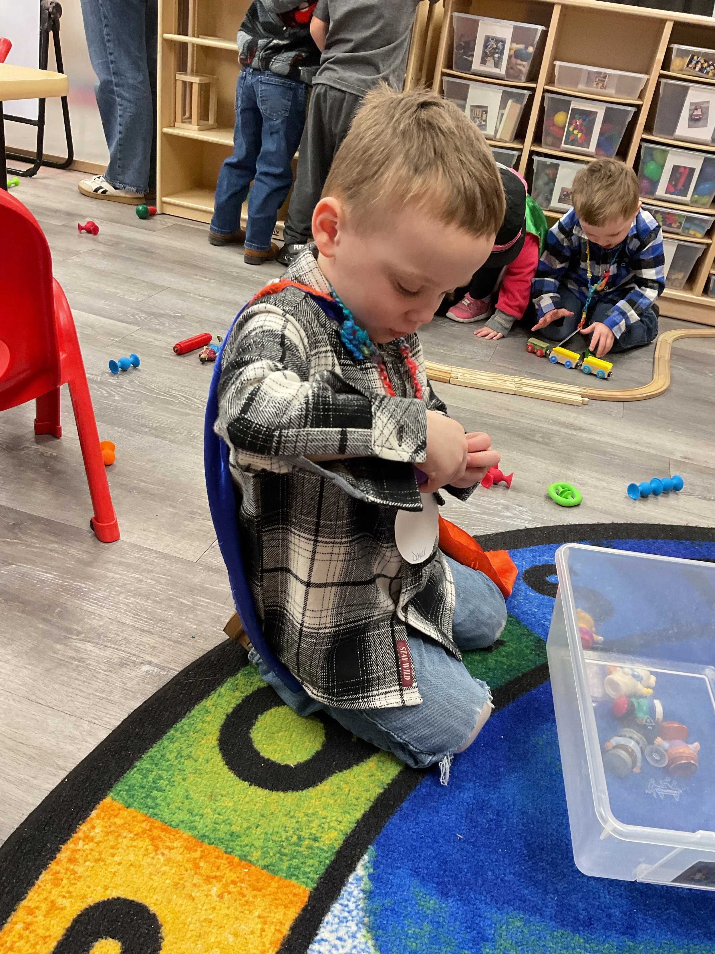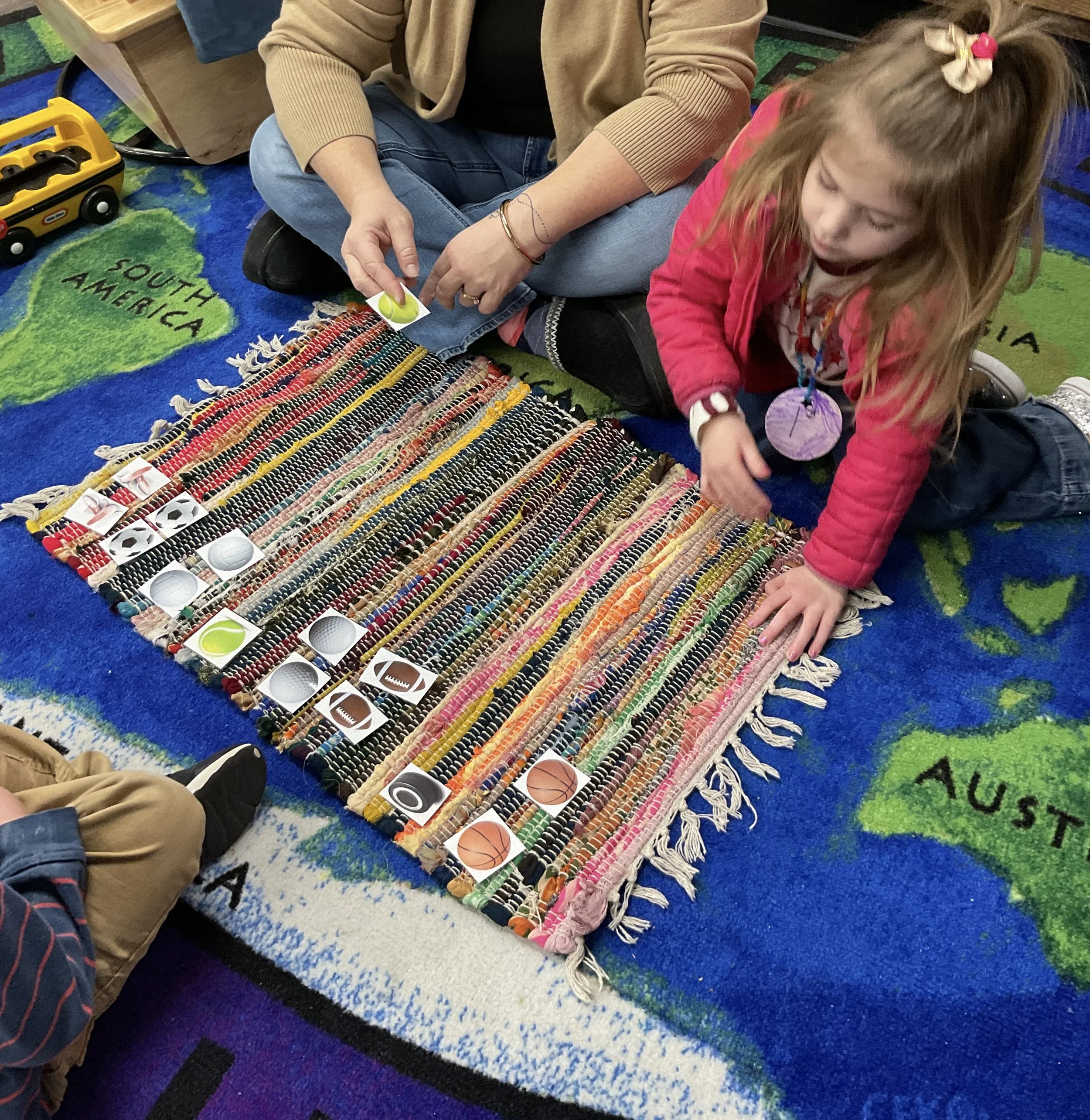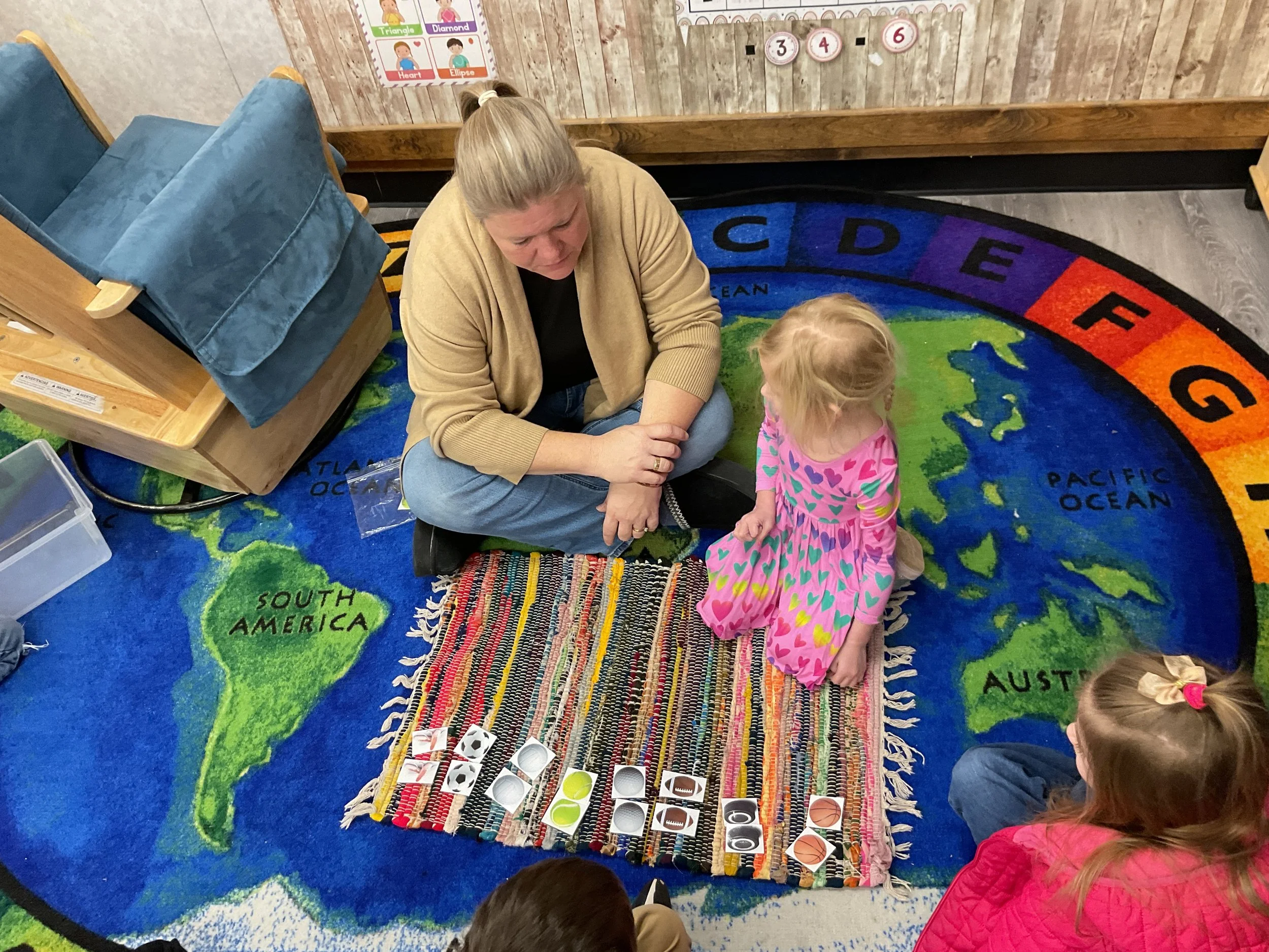 This morning, we read the book Pete the Cat: Play Ball written and illustrated by James Dean. During our music and movement time, we went ice skating inside! Then, during our math and cognition lesson, we matched sports equipment together. Next, for our science and sensory lesson, we decorated an Olympic medal. Finally, for our literacy and fine motor lesson, we practiced tracing and writing our names.