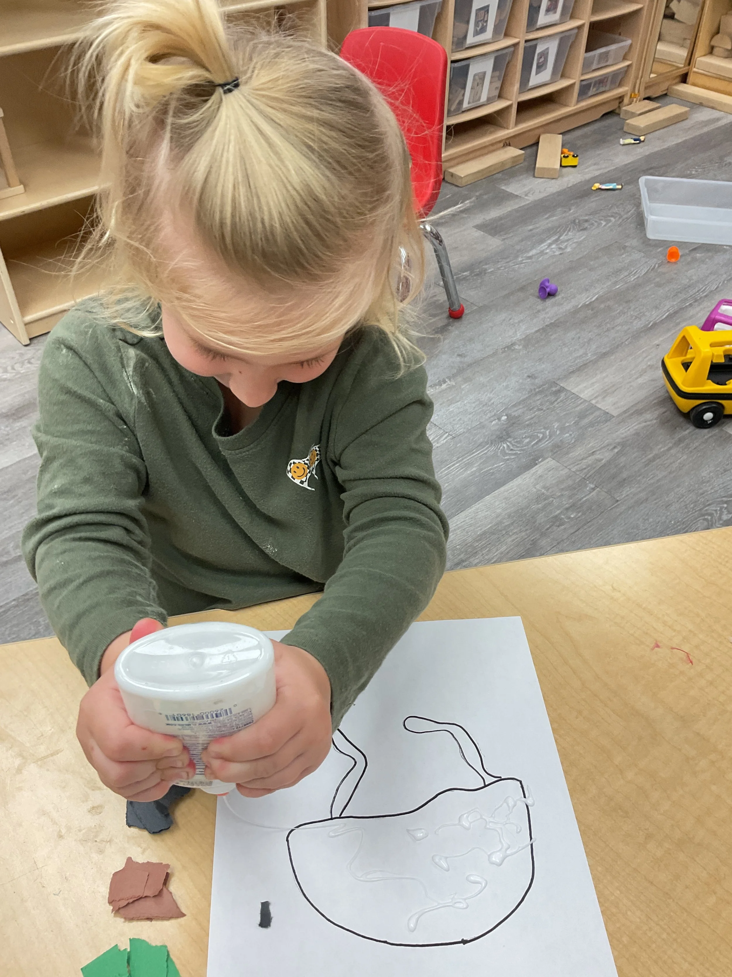 Happy Monday! Today we read, Veterans Heroes in our Neighborhood by Valerie Pfundstein and illustrated by Aaron Anderson. During our music and movement time, we had a dance party. First, during our math and cognition activity, we did a Military puzzle! Next, during our science and sensory activity, we tore green and brown paper to create a combat hat! Lastly, for our fine motor and literacy activity, we practiced tracing our names.