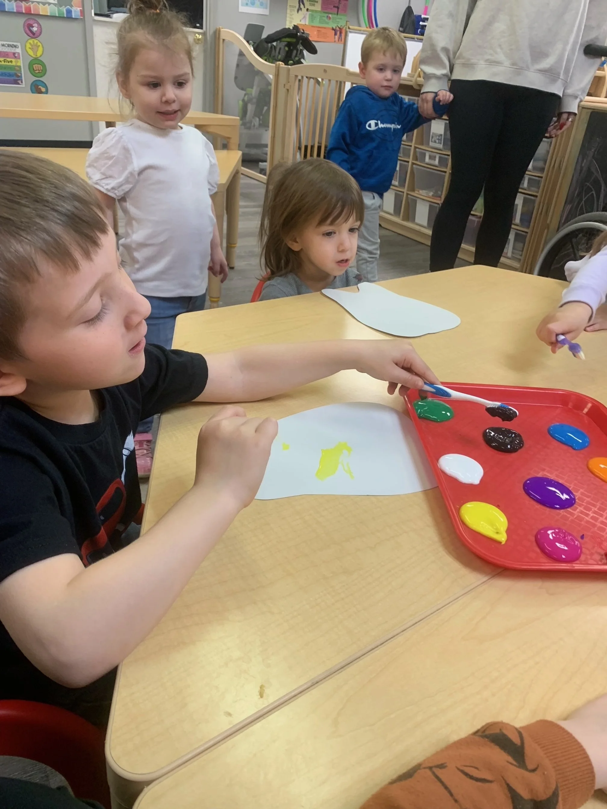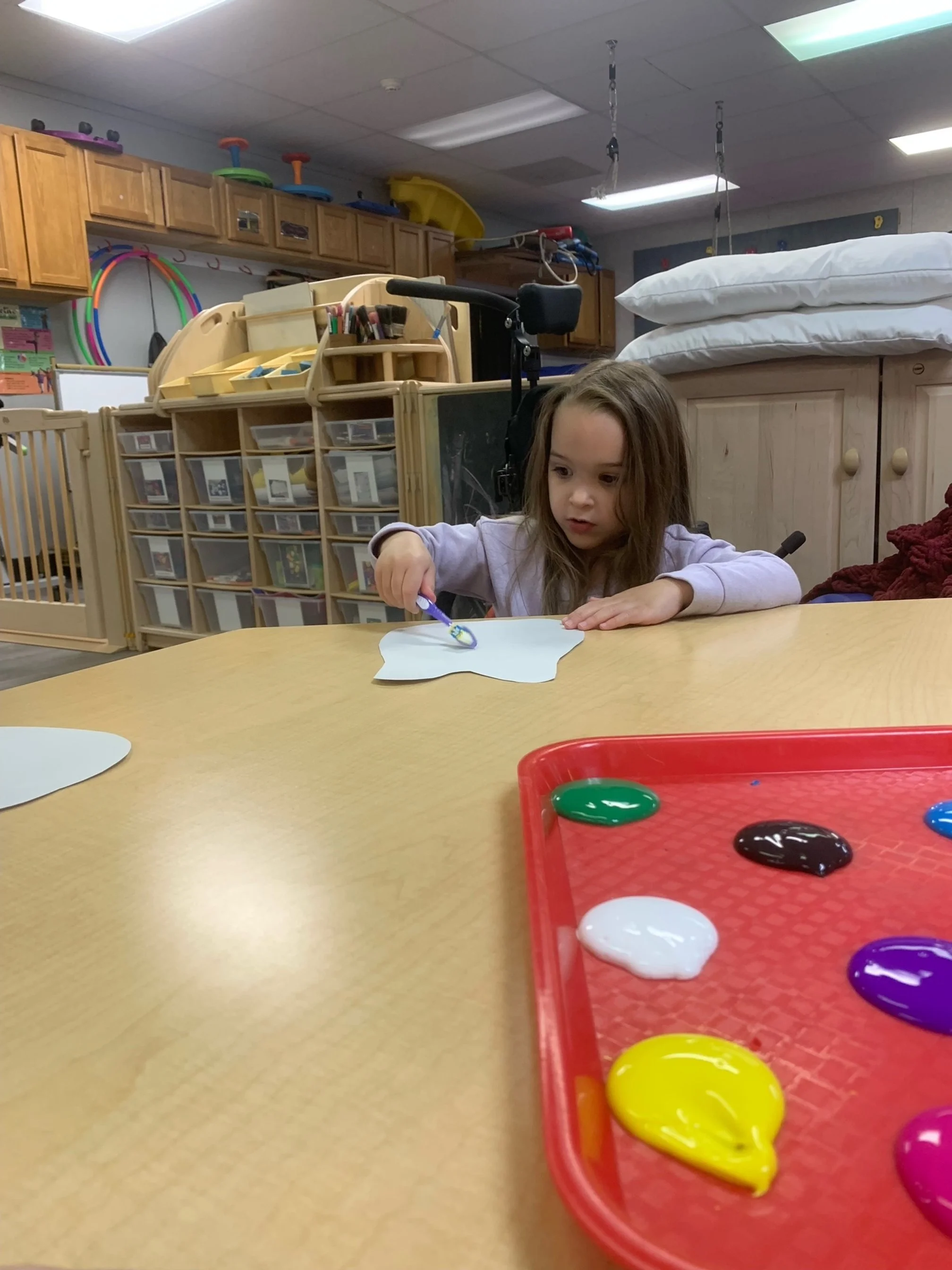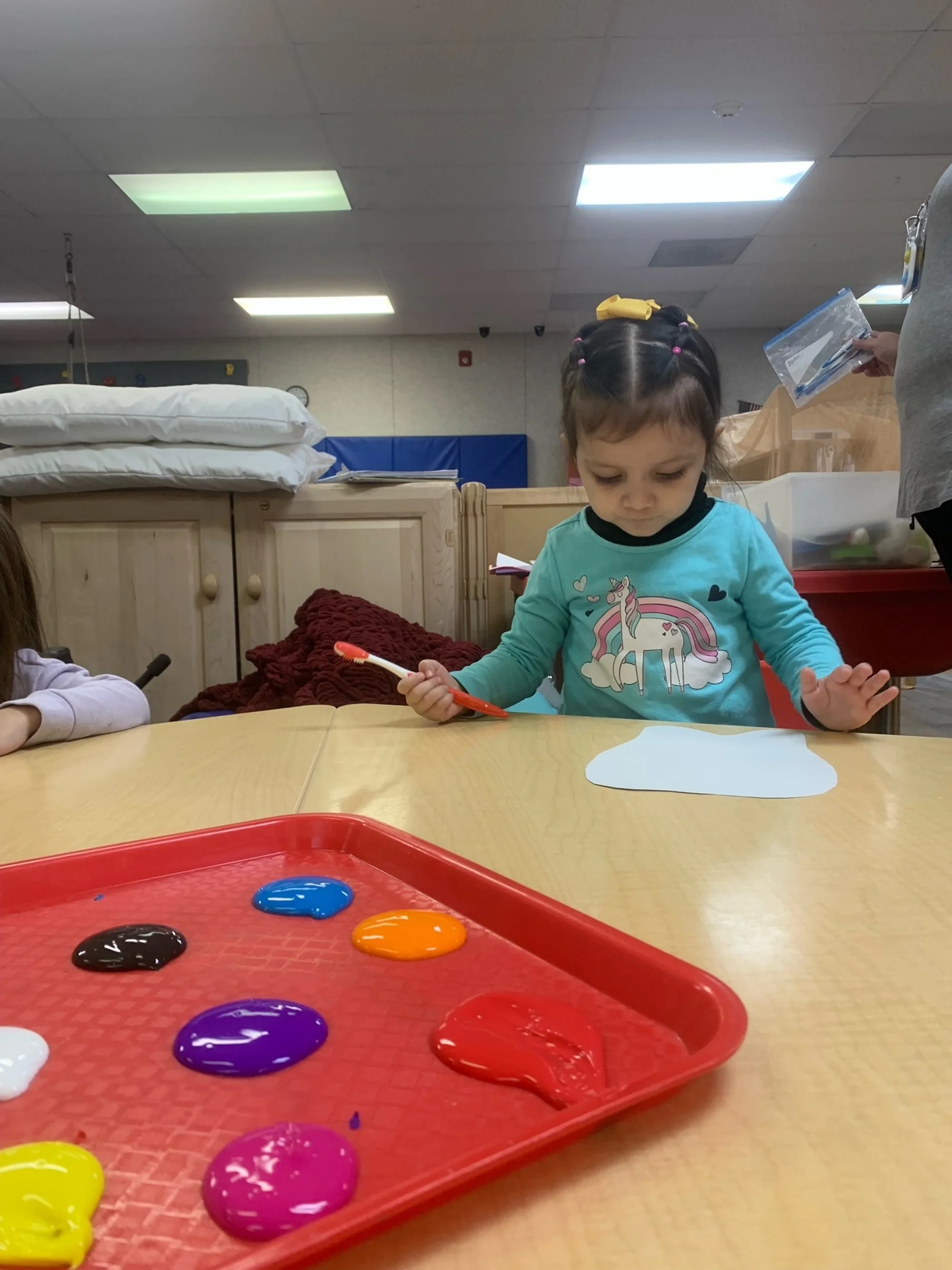 Today we read the book Who wears glasses? by Ana Galan. In this book we read about animals who wear glasses. After reading the book we talked about why some of our friends have glasses and some do not. During our math and cognition activity we did a heath and hygiene matching game. During our science and sensory activity we painted teeth with toothbrushes. During our fine motor and literacy activity we listened to a book on tape about keeping our teeth healthy.