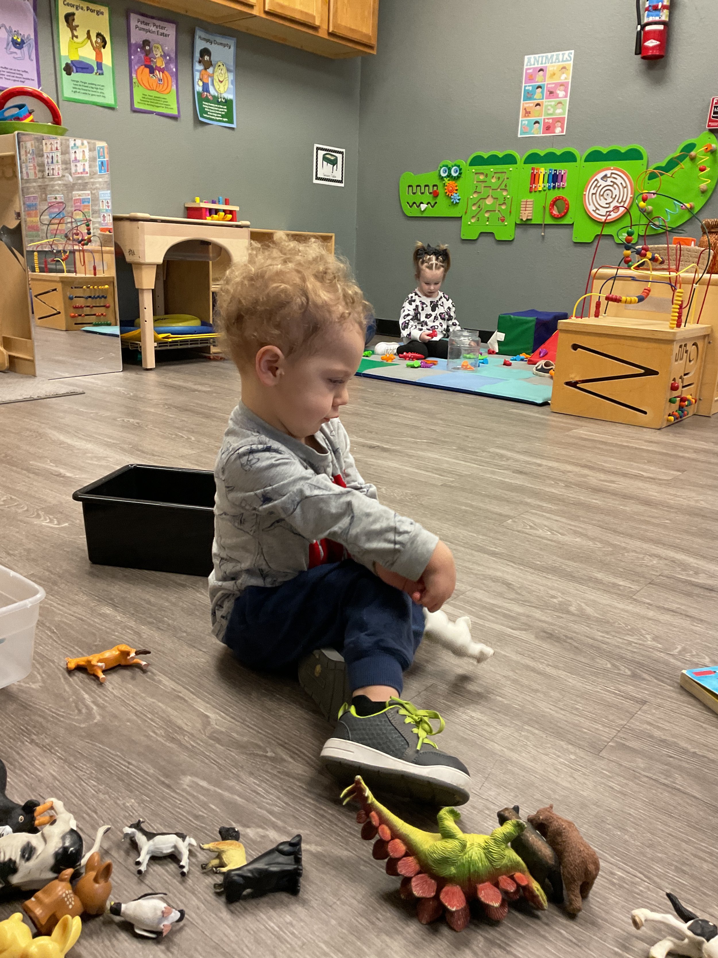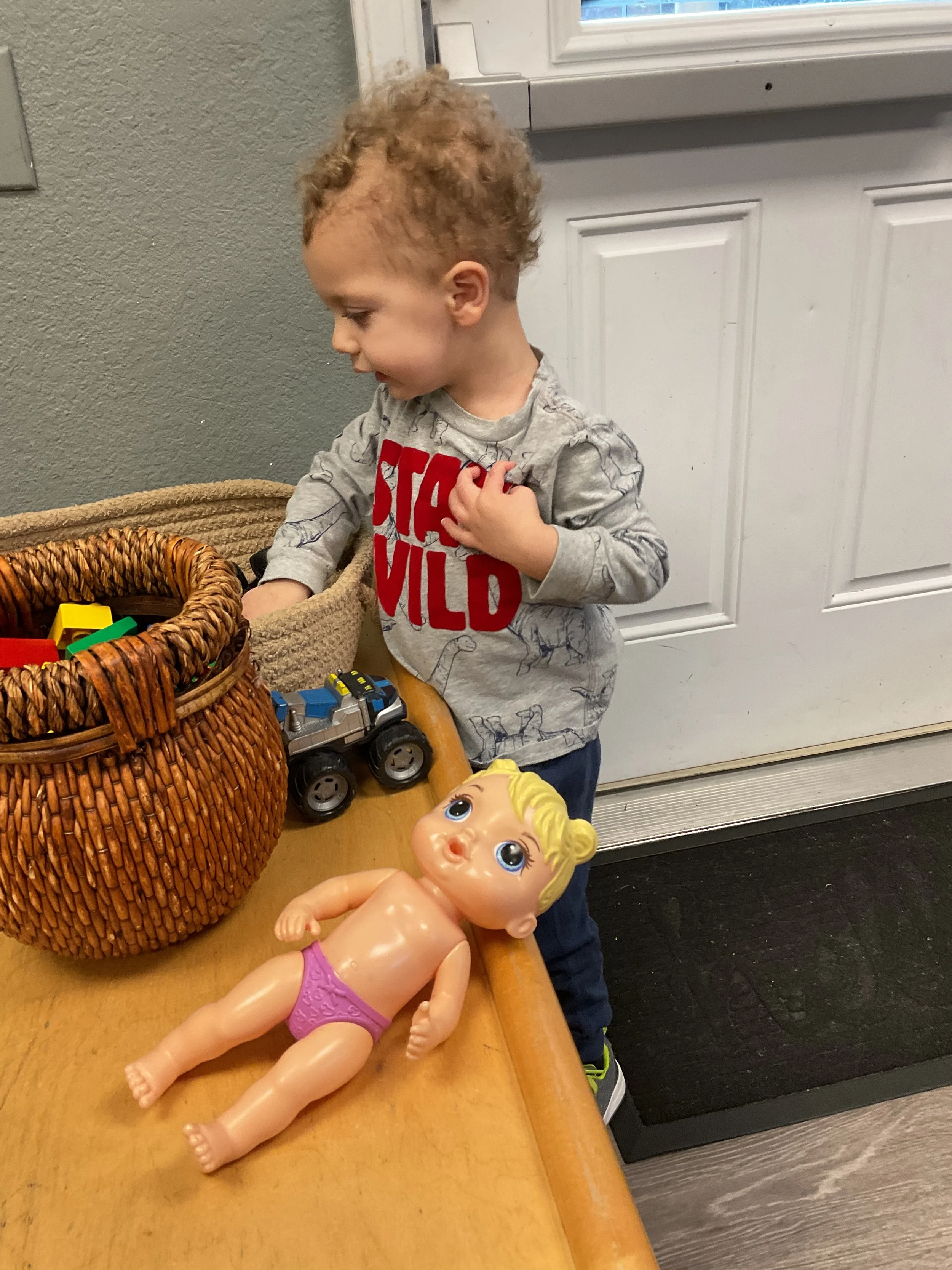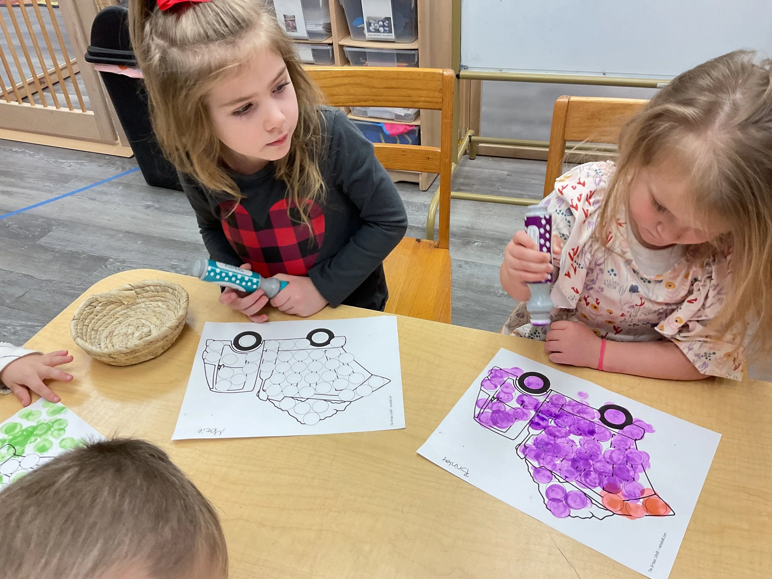 This morning, we Stanley the Builder written by Jonathan Cape. During our music and movement time, we played with balloons! For, our math and cognition lesson, we counted cars from 1 to 20. Next, for our sensory and science activity, we filled a bag of water and pushed pencils through to see if any water would spill out. Finally, for our literacy and fine motor lesson, we made the letter T into tractors!