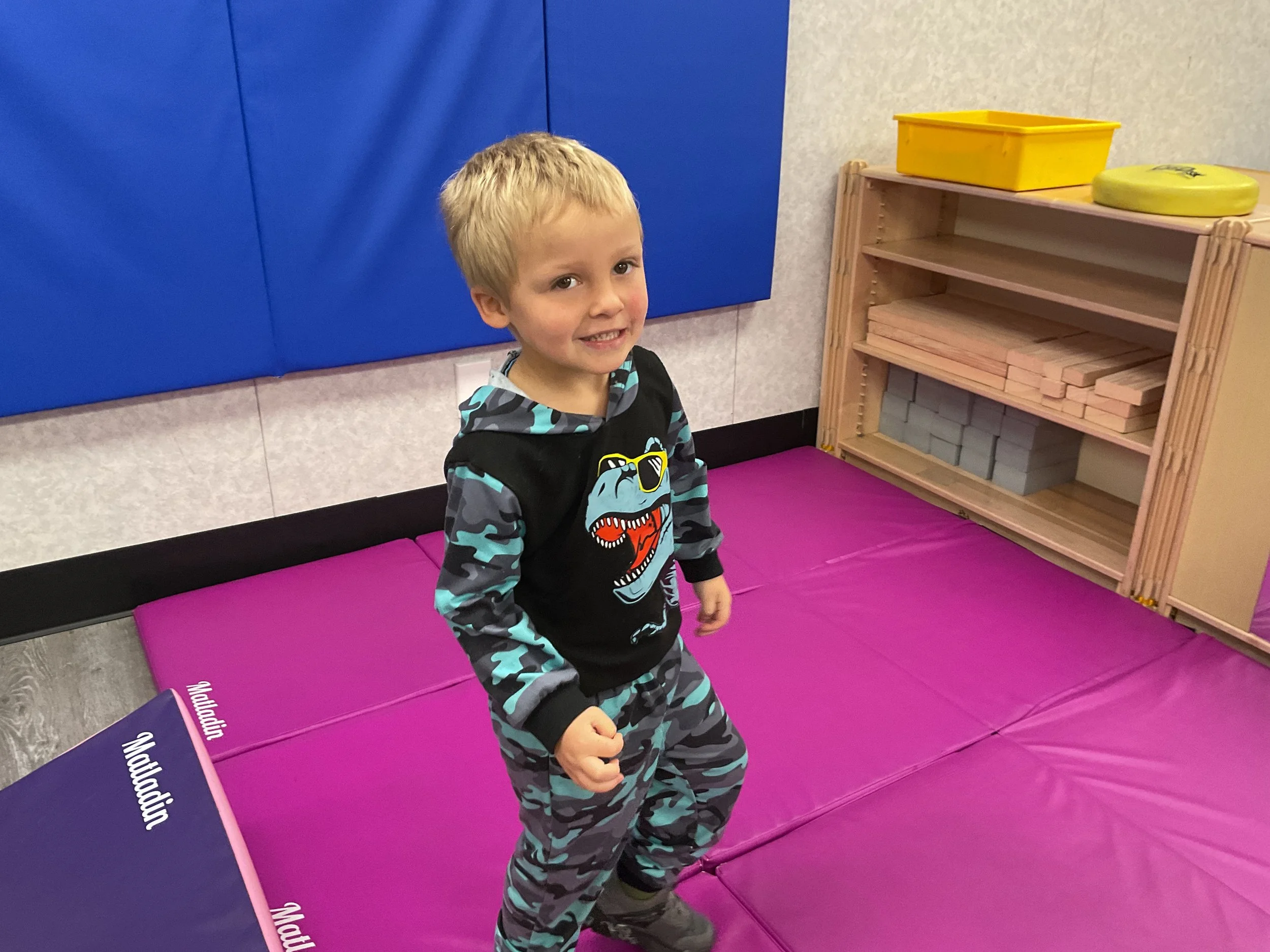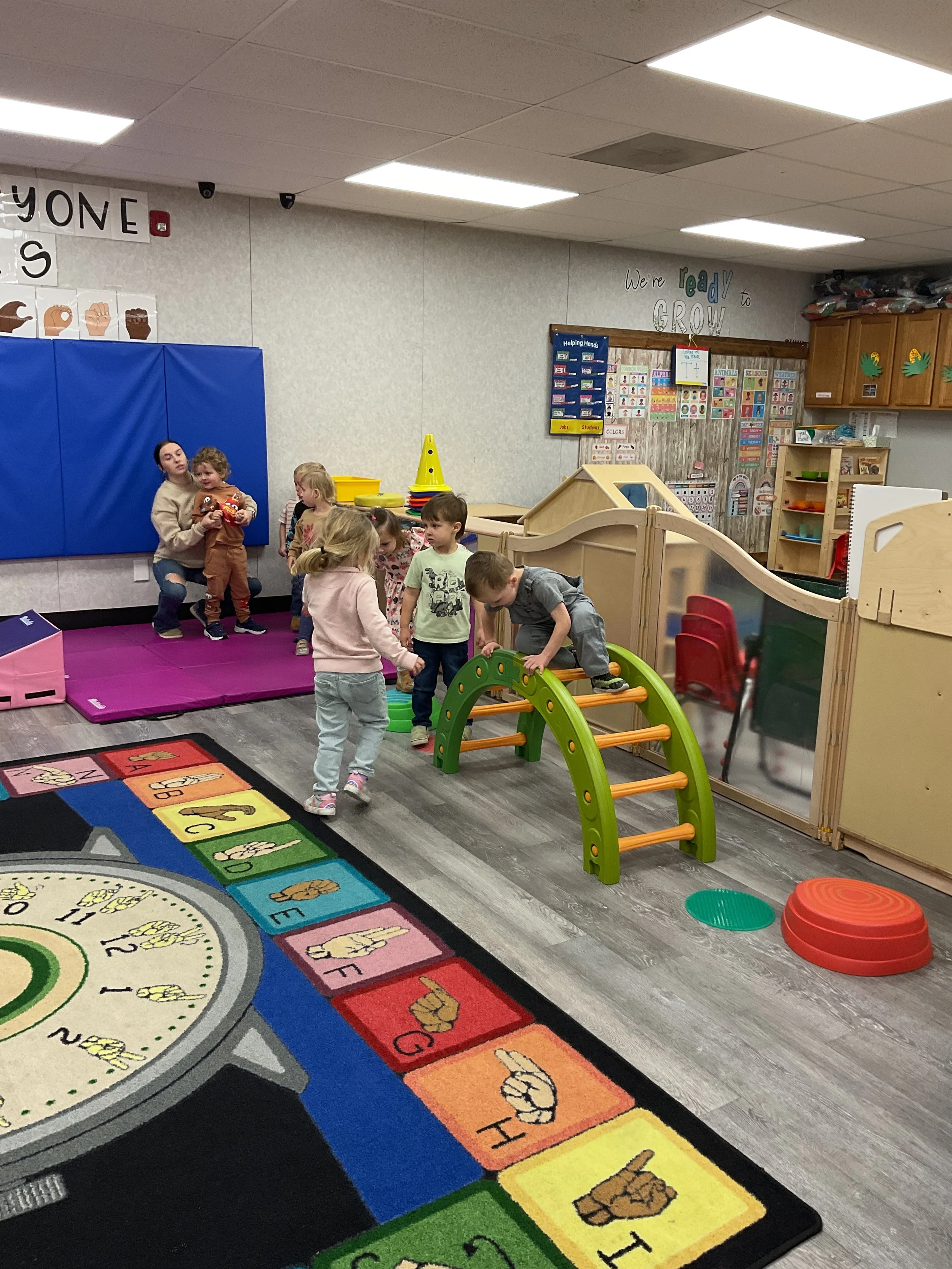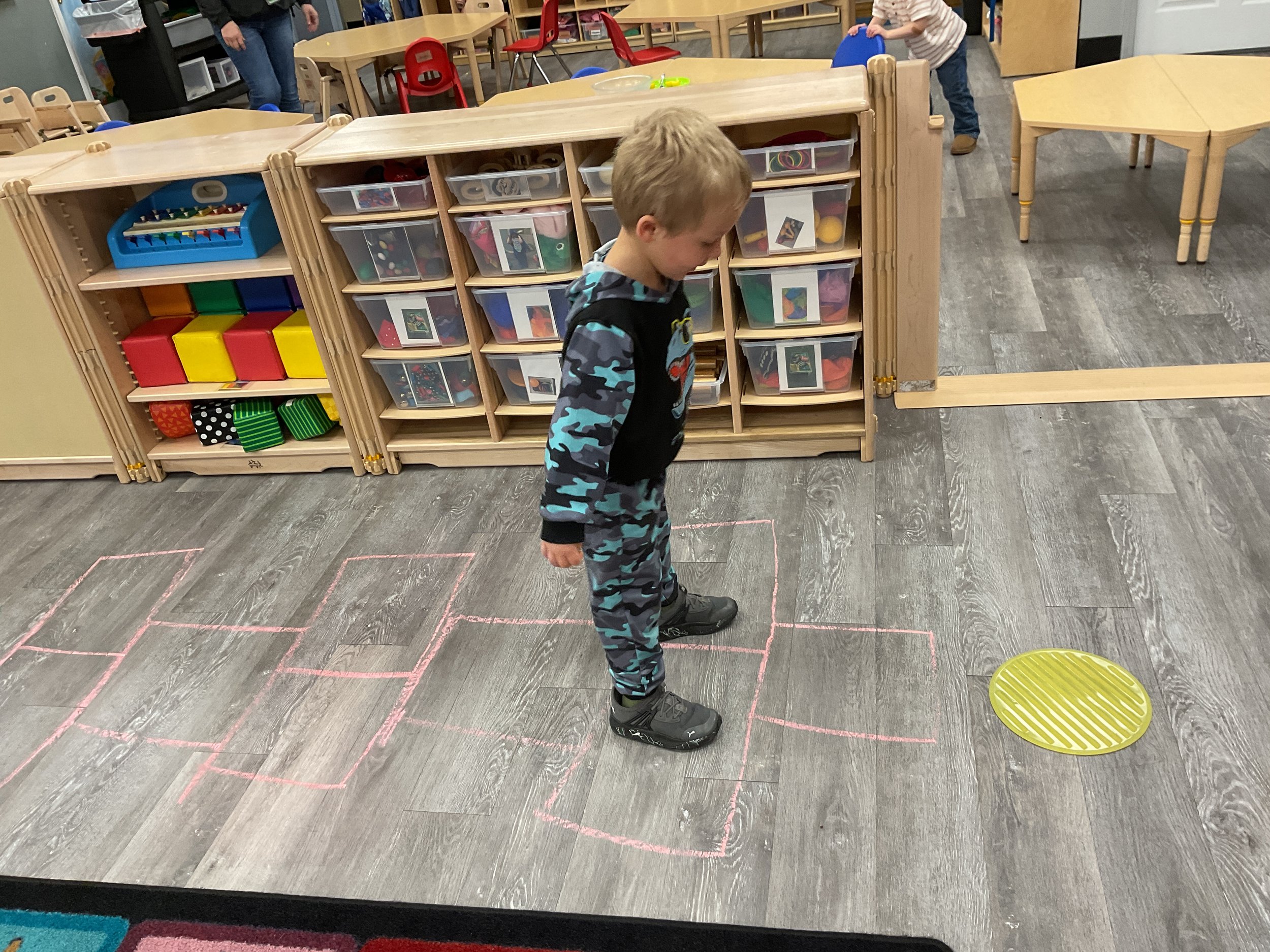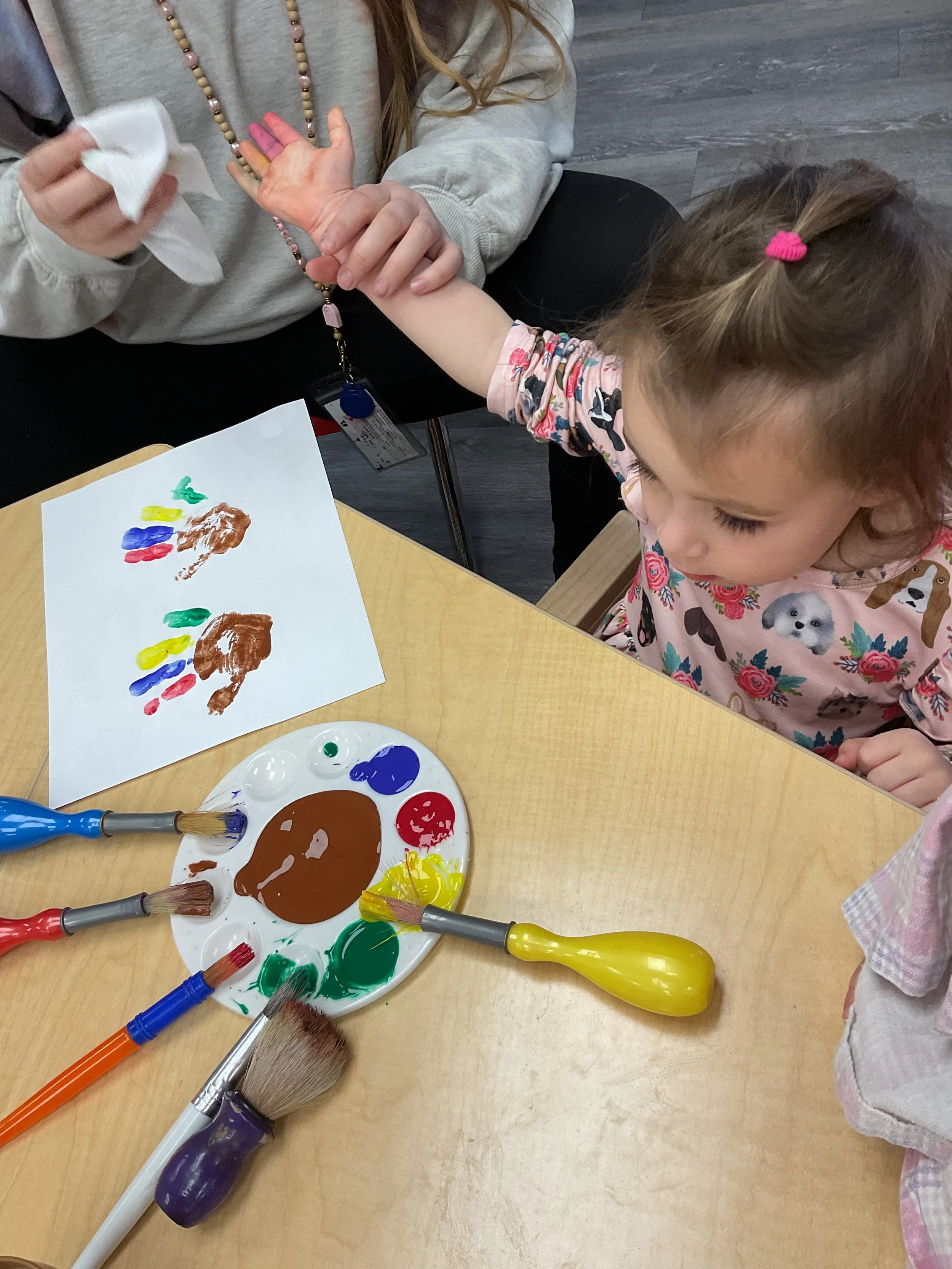 This morning, we read the book Run, Turkey, Run! by Diane Mayer illustrated by Laura Rader. During our music and movement time, we had a challenging obstacle course! We did summersaults, big jumps, and climbed over the bridge! Next, during our math and cognition lesson, we worked on putting numbers in number order, and we talked about 3 dimensional shapes like cones, cubes, and spheres. Then, during our science and sensory lesson, we filled a bowl with water, and then we dropped some of our toys in the water to see if they would sink or float. Finally, for our fine motor and literacy lesson, we painted our hands like Turkeys!