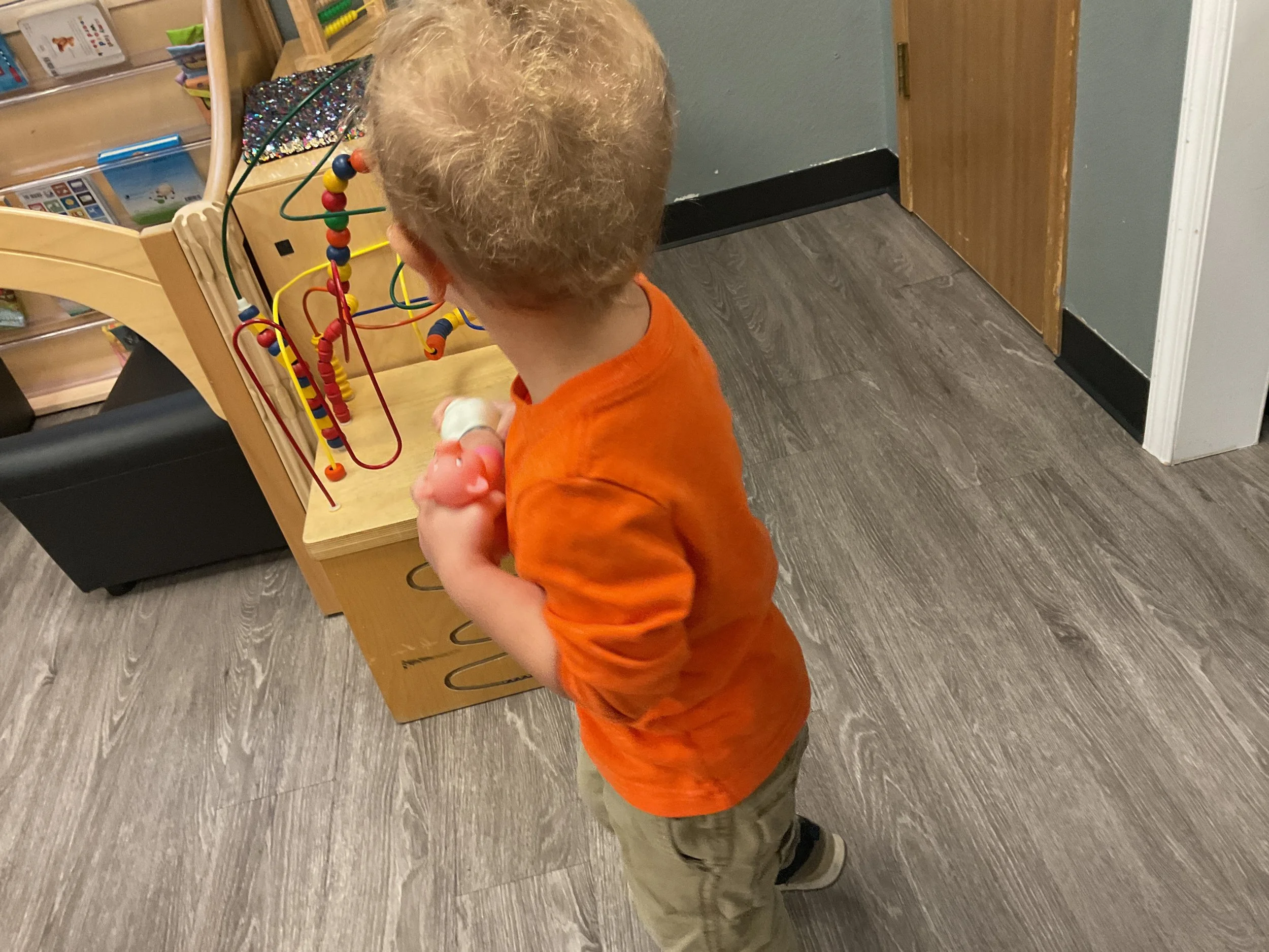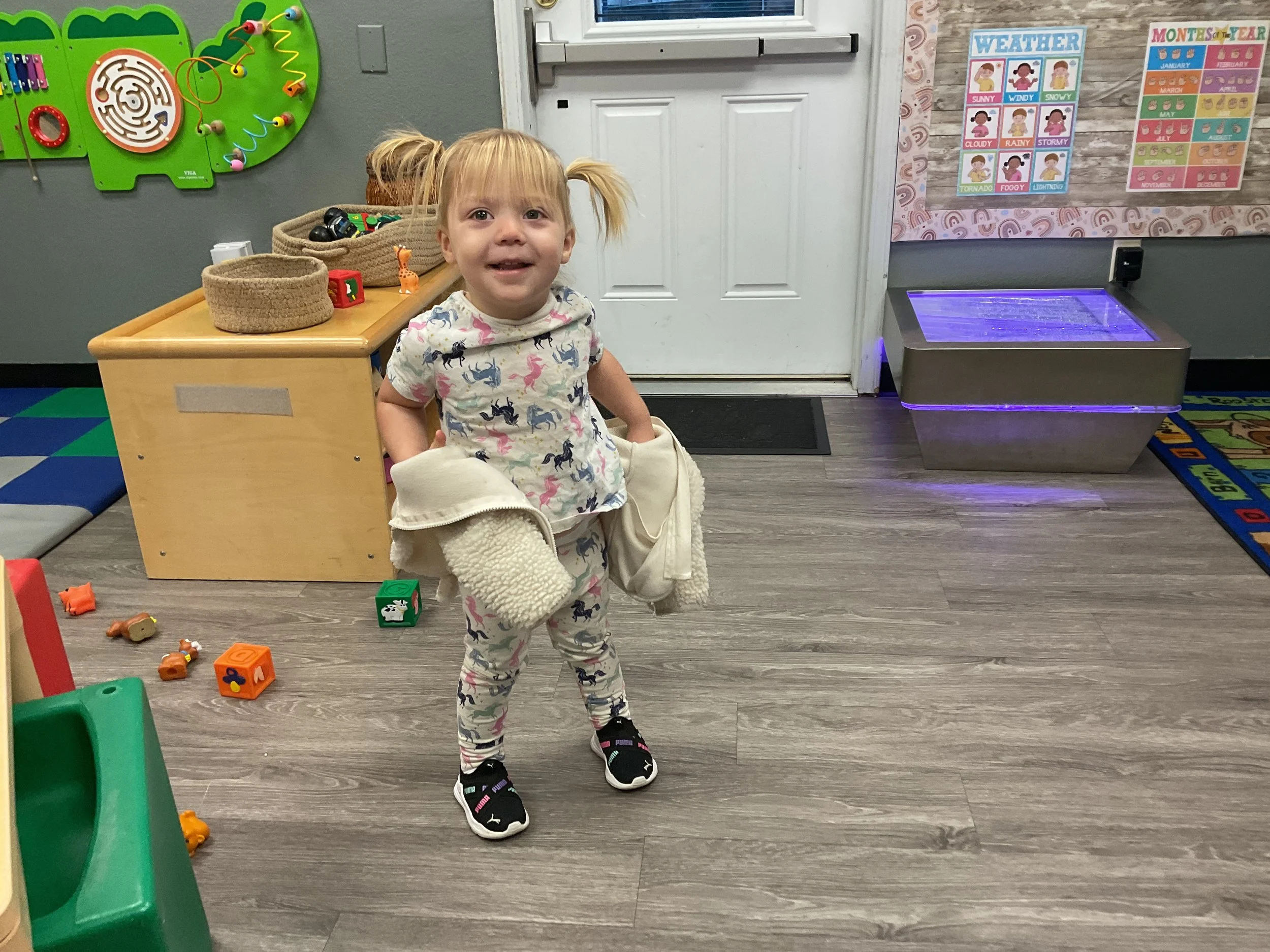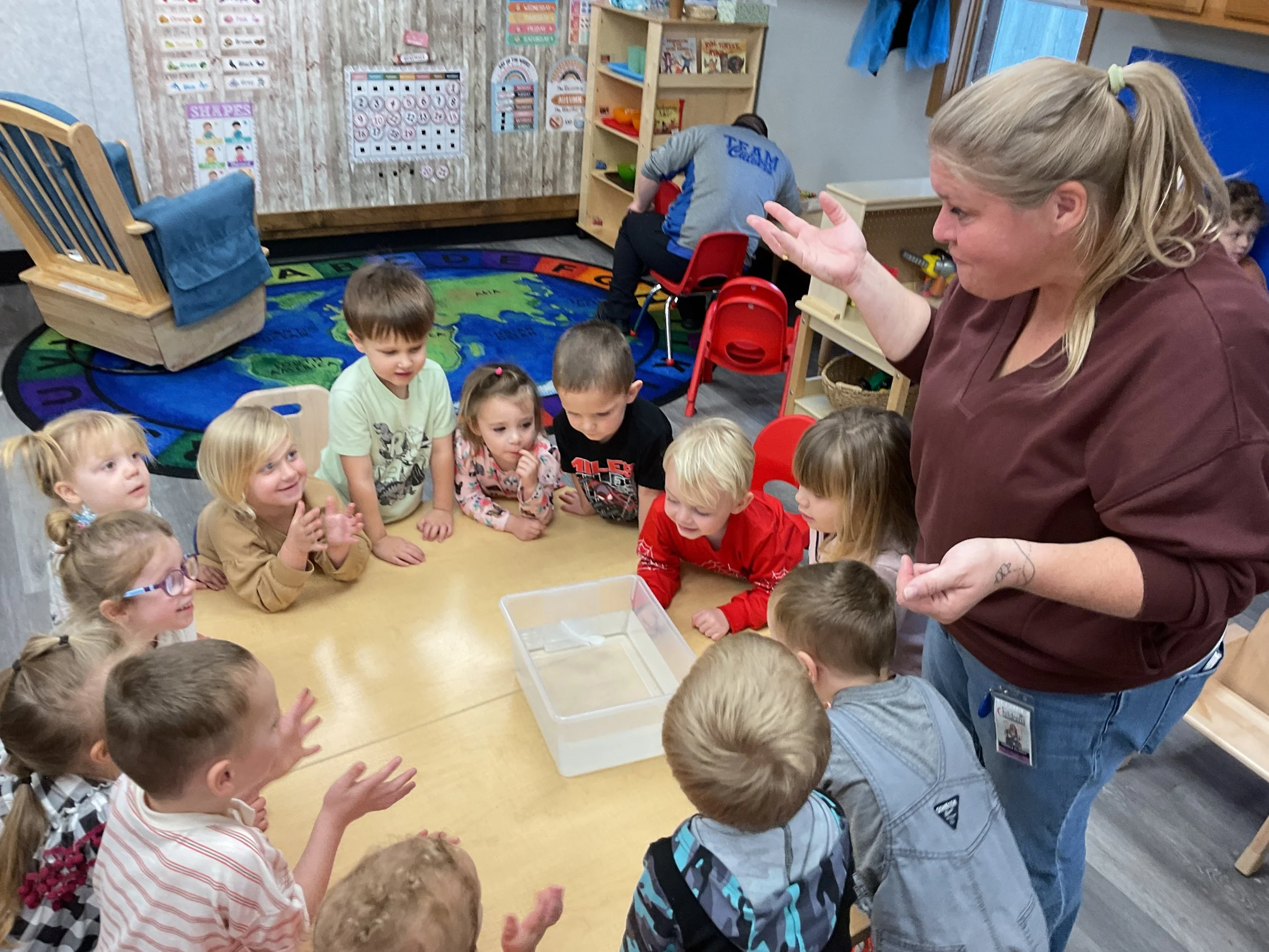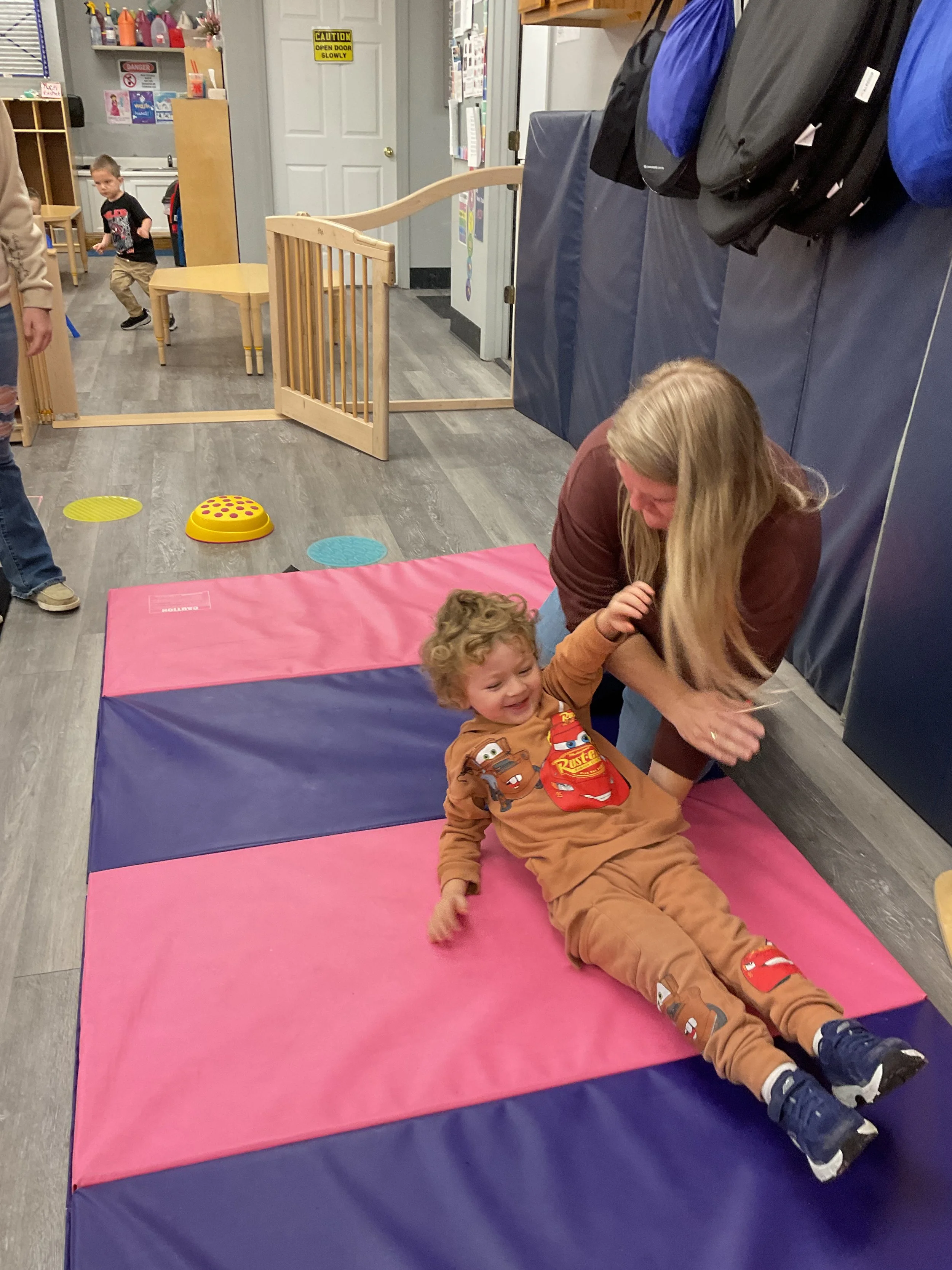 This morning, we read the book Run, Turkey, Run! by Diane Mayer illustrated by Laura Rader. During our music and movement time, we had a challenging obstacle course! We did summersaults, big jumps, and climbed over the bridge! Next, during our math and cognition lesson, we worked on putting numbers in number order, and we talked about 3 dimensional shapes like cones, cubes, and spheres. Then, during our science and sensory lesson, we filled a bowl with water, and then we dropped some of our toys in the water to see if they would sink or float. Finally, for our fine motor and literacy lesson, we painted our hands like Turkeys!