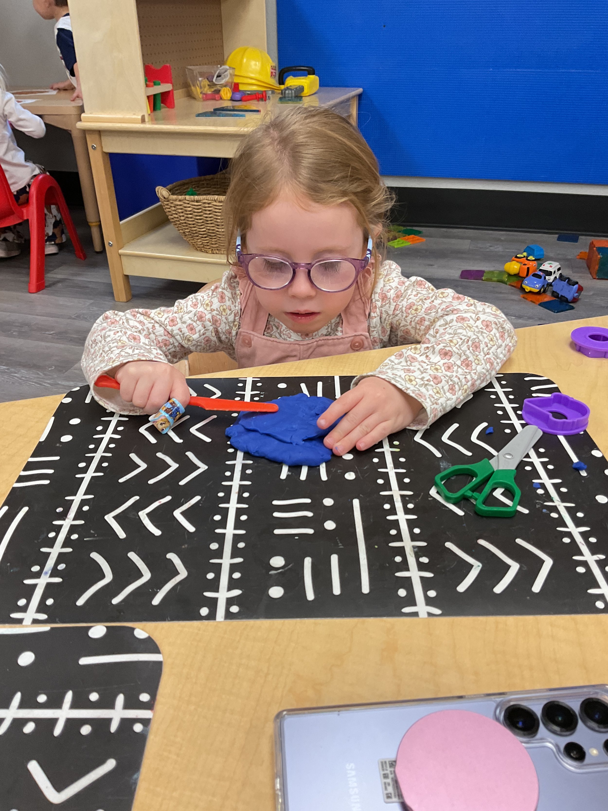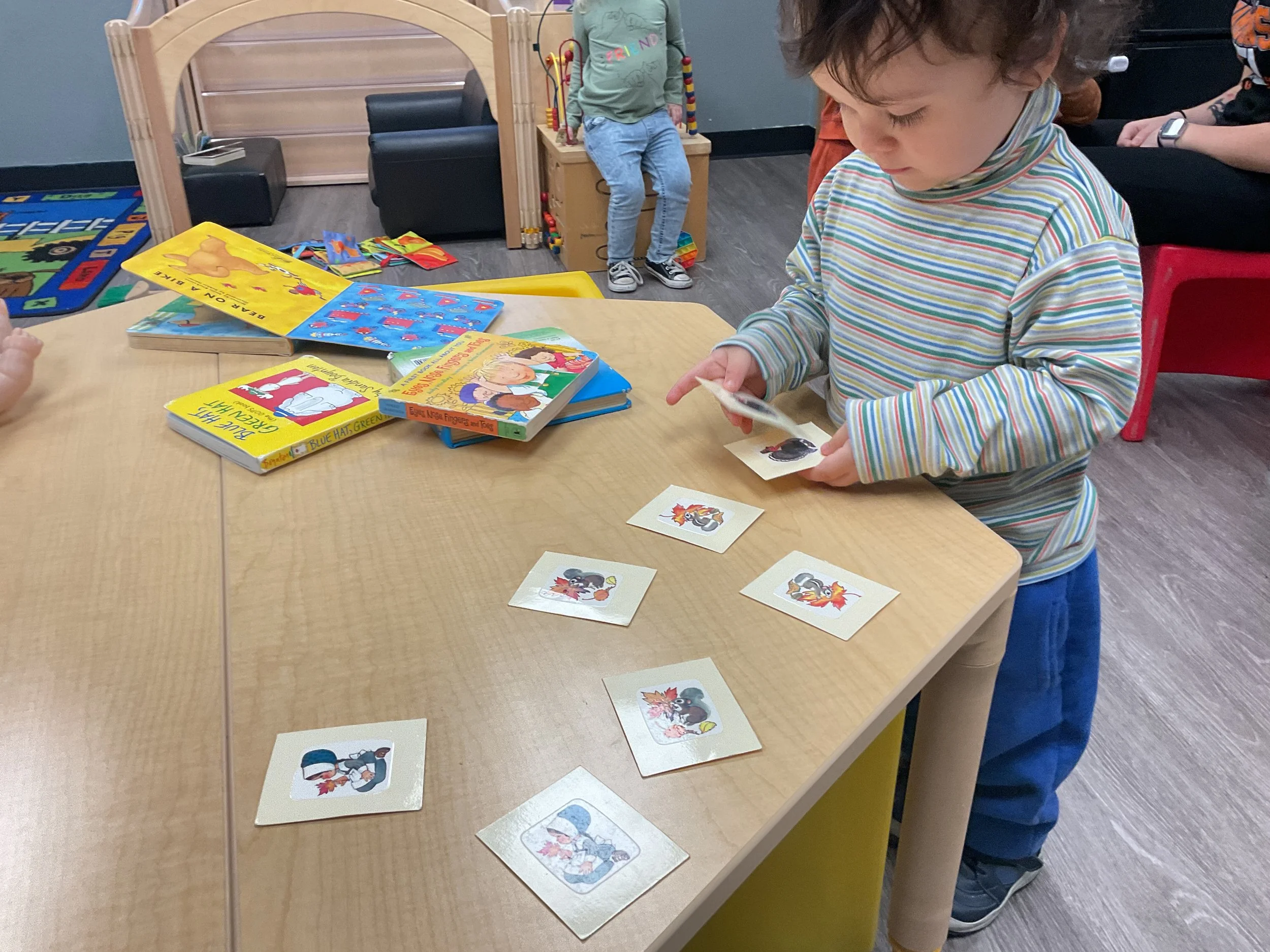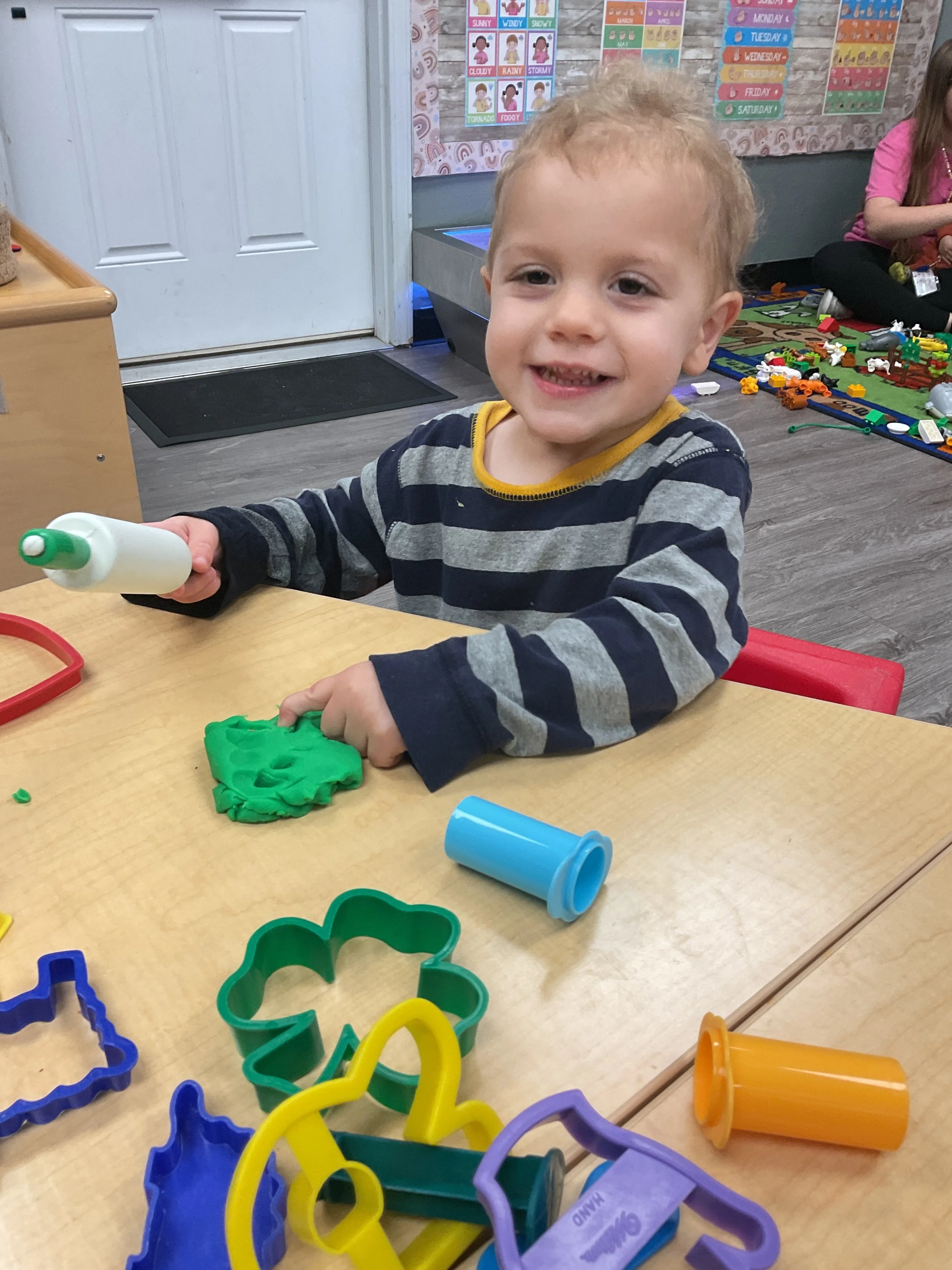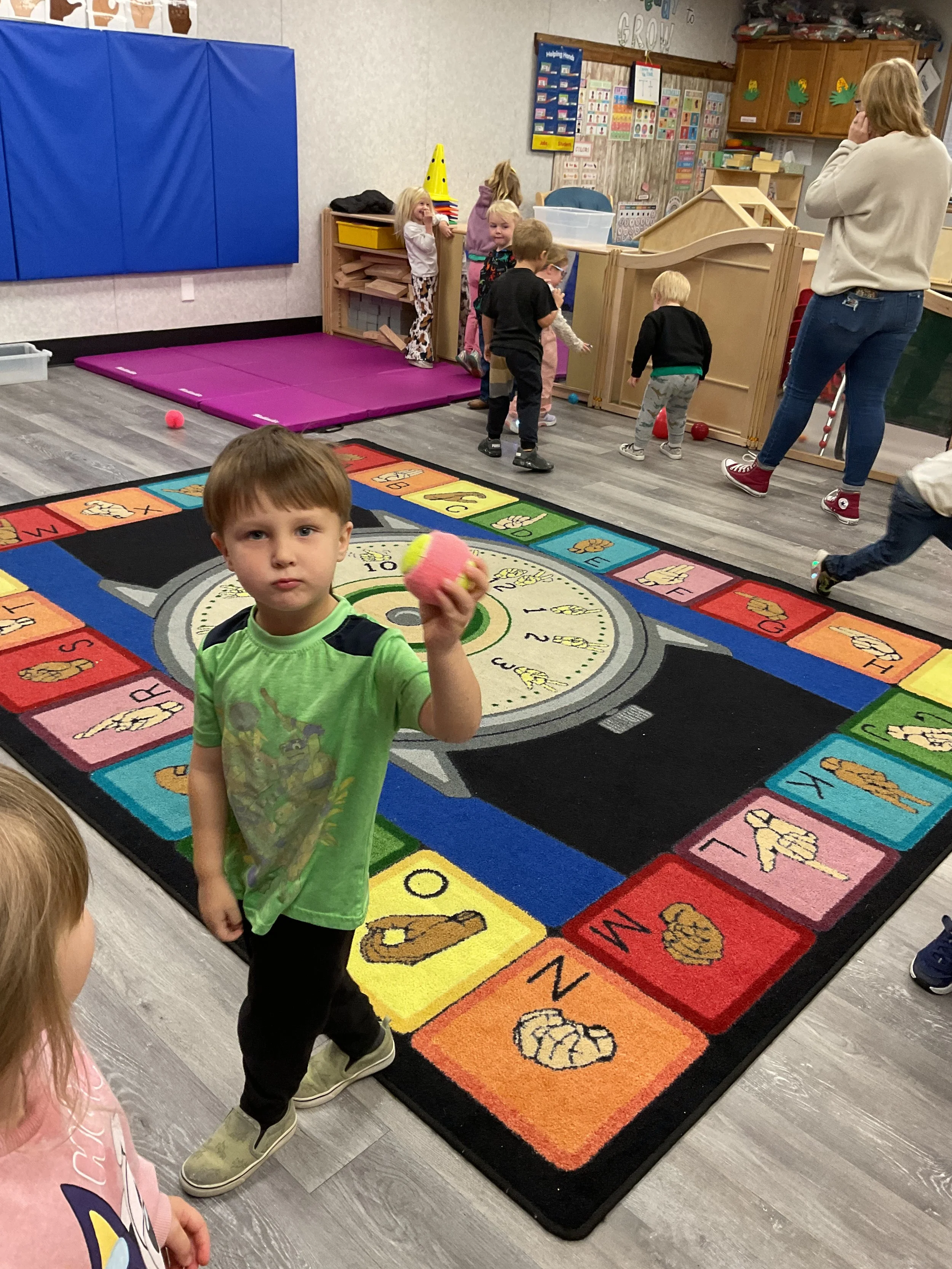 This morning, we read the book Thanksgiving is for Giving Thanks by Margaret Sutherland and illustrated by Sonja Lamut. During our music and movement time we played games of catch and tossed balls into bins at different heights. Next, during our math and cognition lesson we matched Thanksgiving themed pictures together. Then, during our science and sensory lesson we used playdough to make our favorite Thanksgiving pies. And finally, for our fine motor and literacy lesson we practiced our cutting skills by cutting a picture of a pumpkin pie.