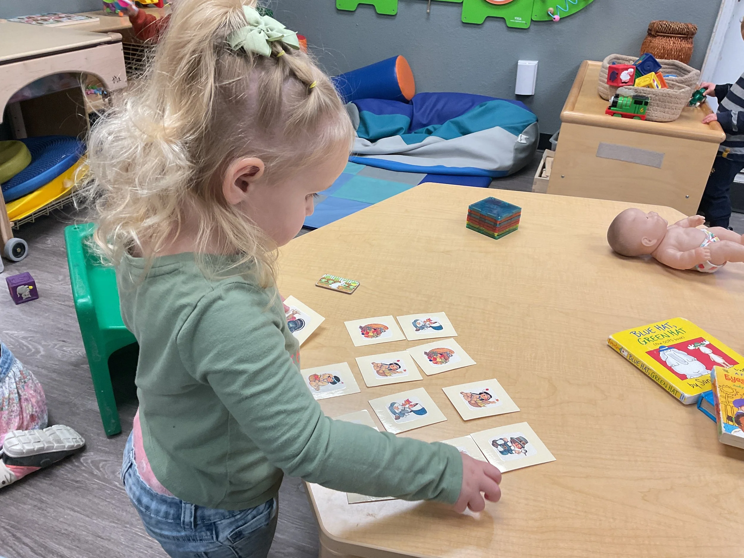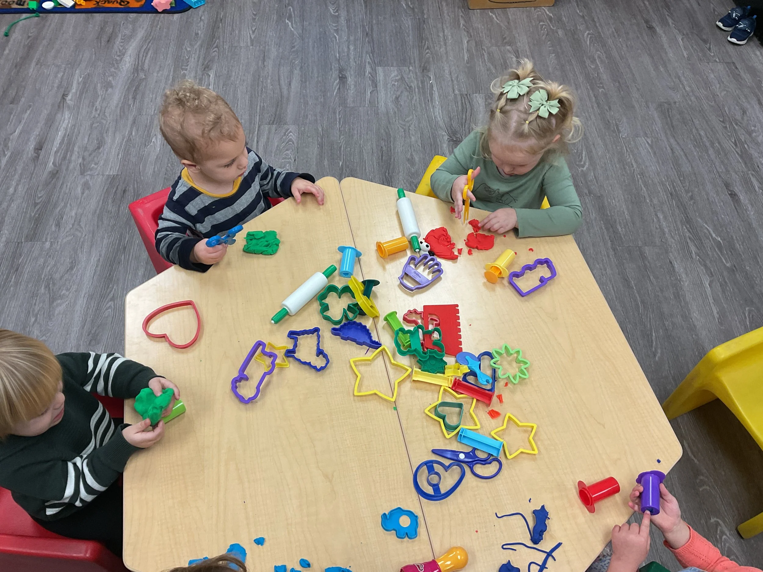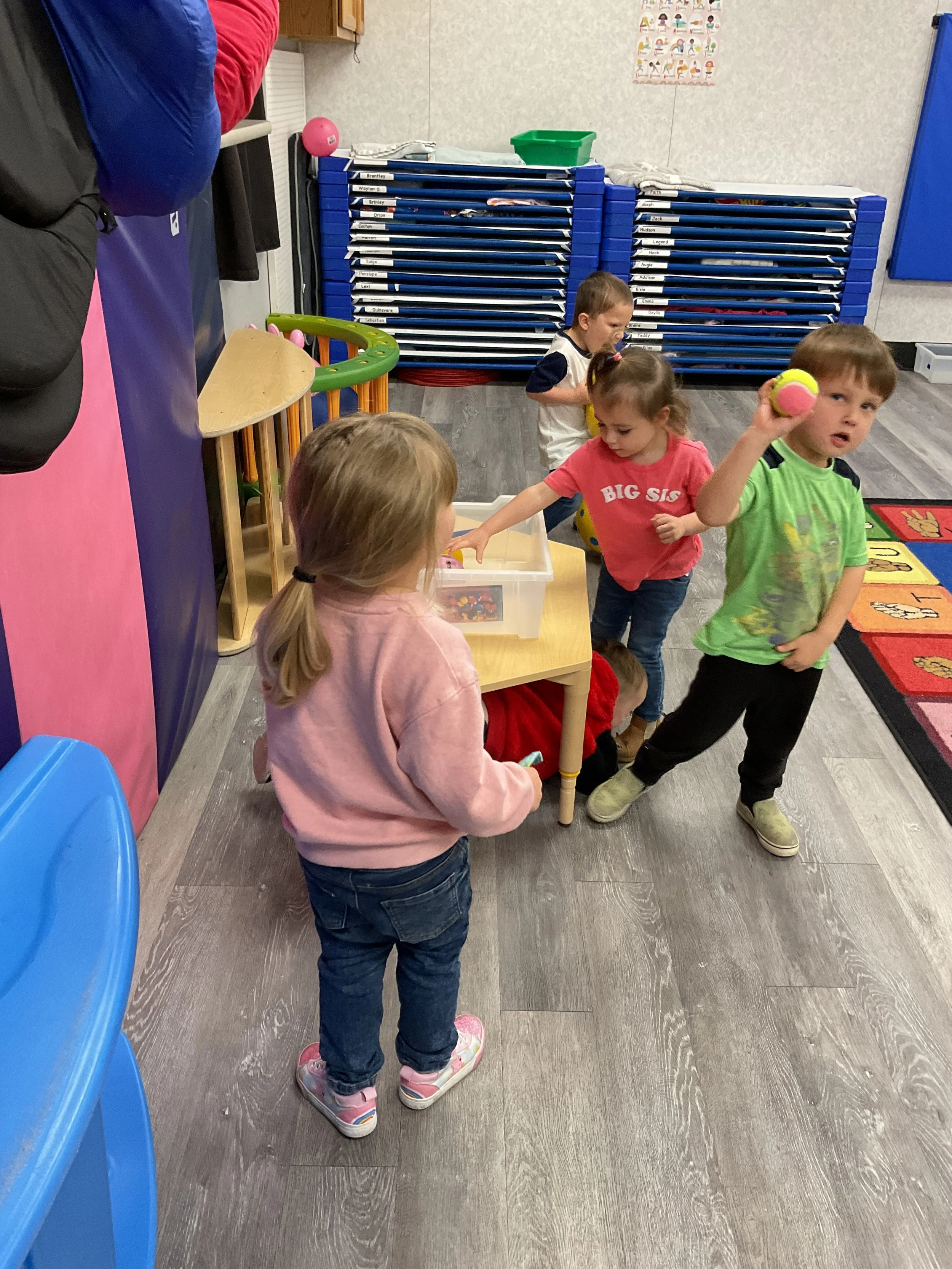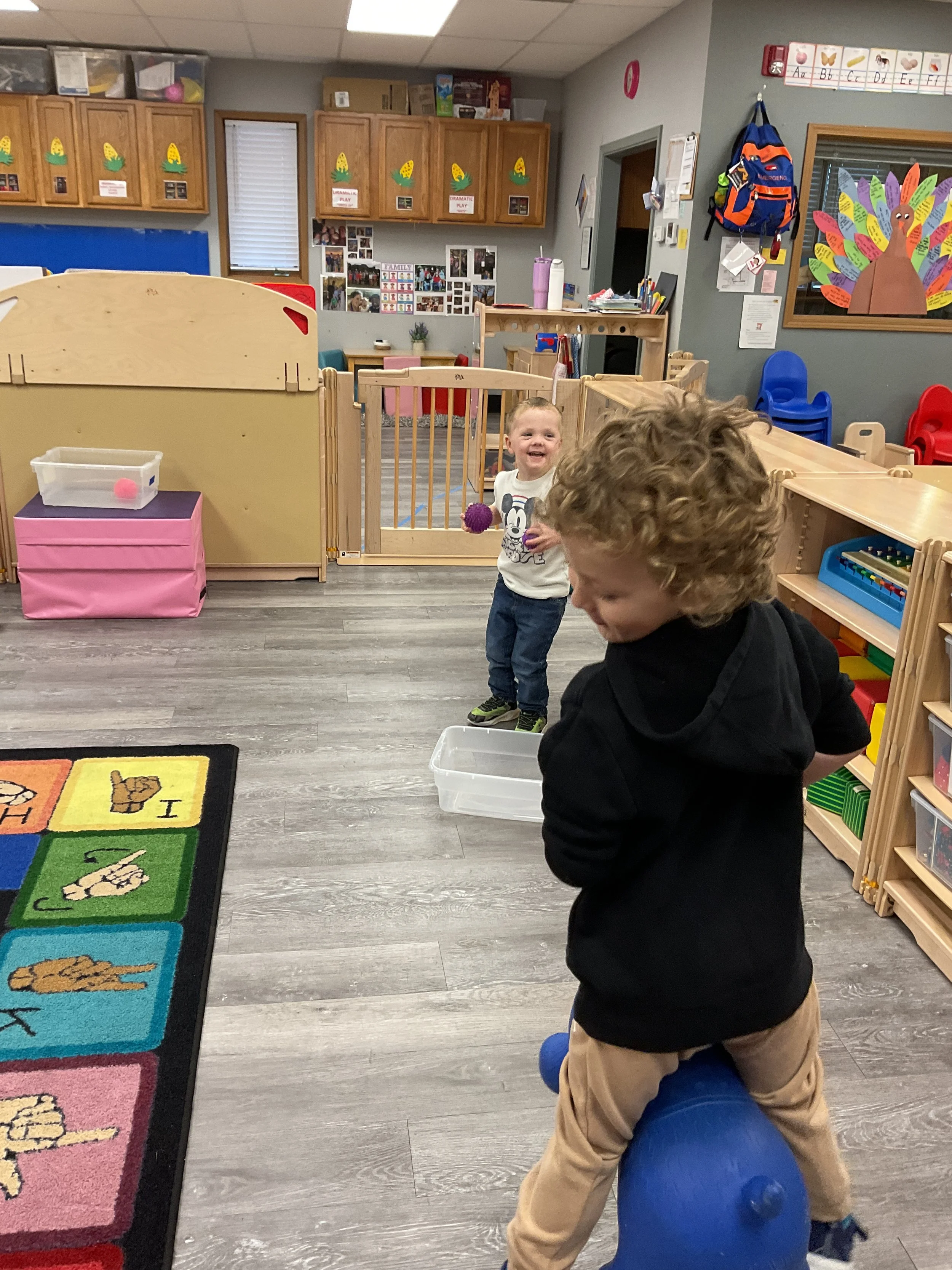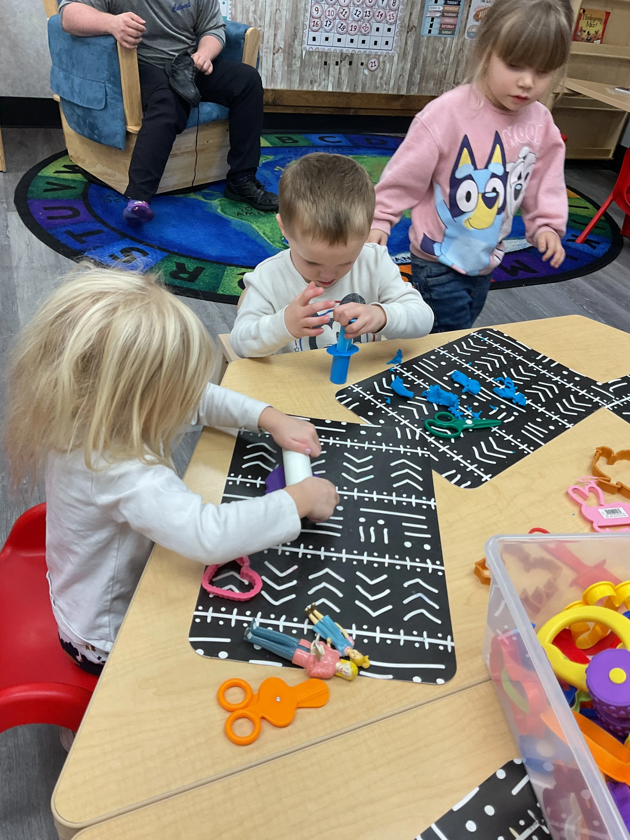 This morning, we read the book Thanksgiving is for Giving Thanks by Margaret Sutherland and illustrated by Sonja Lamut. During our music and movement time we played games of catch and tossed balls into bins at different heights. Next, during our math and cognition lesson we matched Thanksgiving themed pictures together. Then, during our science and sensory lesson we used playdough to make our favorite Thanksgiving pies. And finally, for our fine motor and literacy lesson we practiced our cutting skills by cutting a picture of a pumpkin pie.