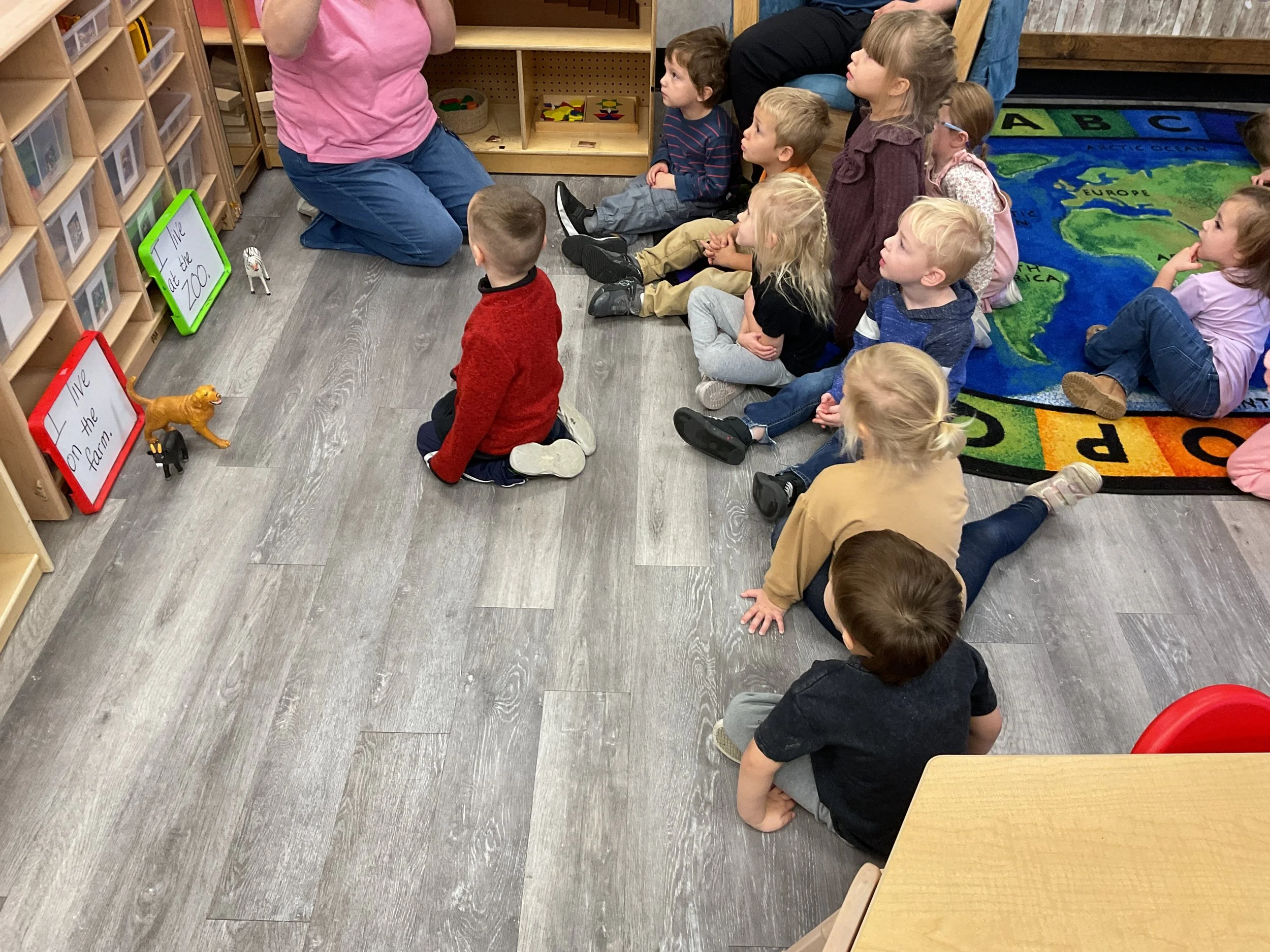 This morning, we read the book Cows written by Scholastic Books. During our music and movement time, we played with the parachute and then we sang the sang “The Farmer in the Dell”. Next, during our math and cognition lesson, we sorted animals who live on the farm from animals who live at the zoo. Then, during our science and sensory lesson, we used playdough to make our own farms. Finally, for our fine motor and literacy lesson, we practiced our cutting skills