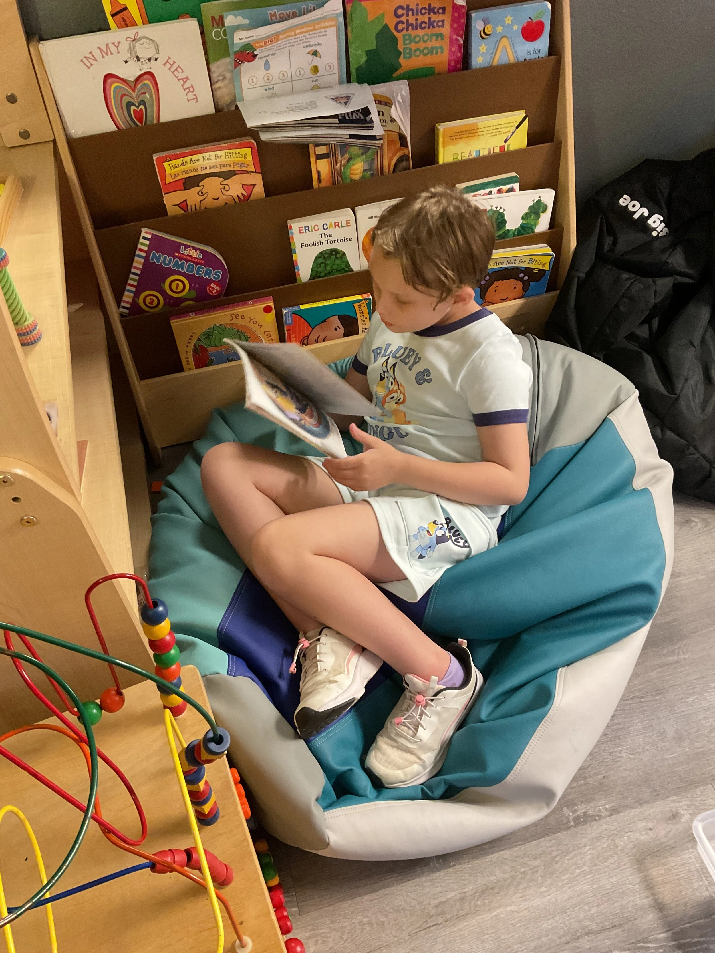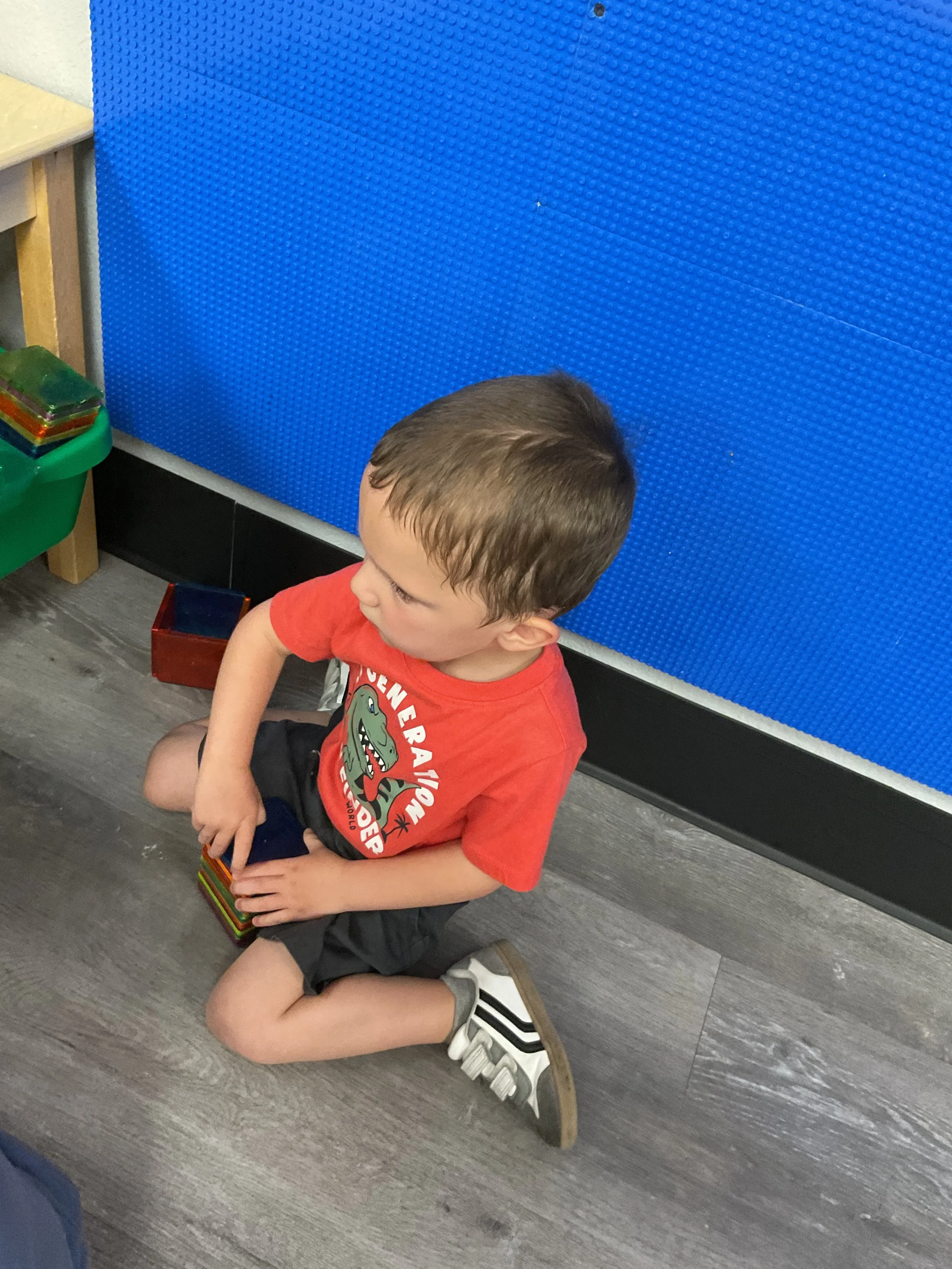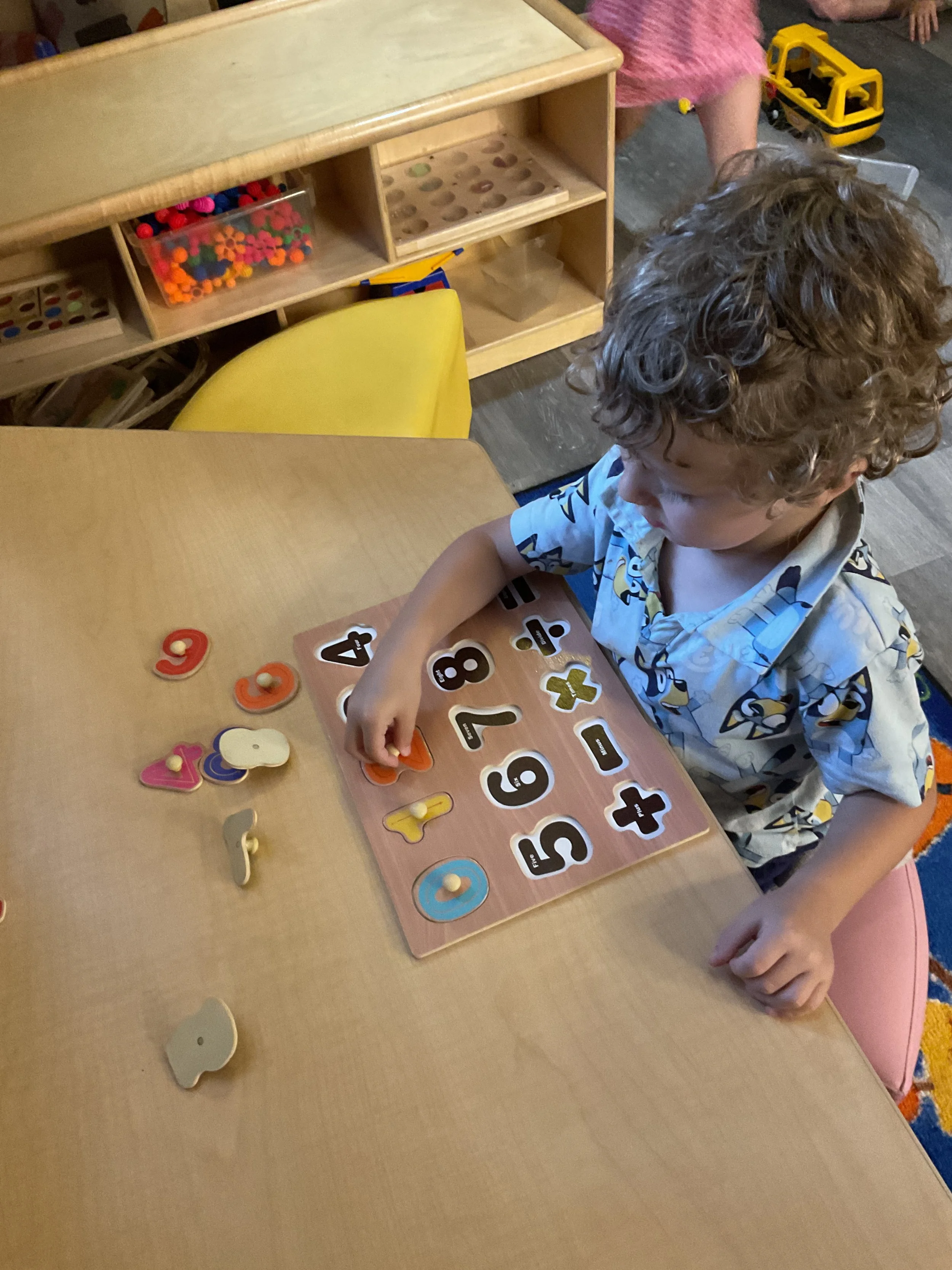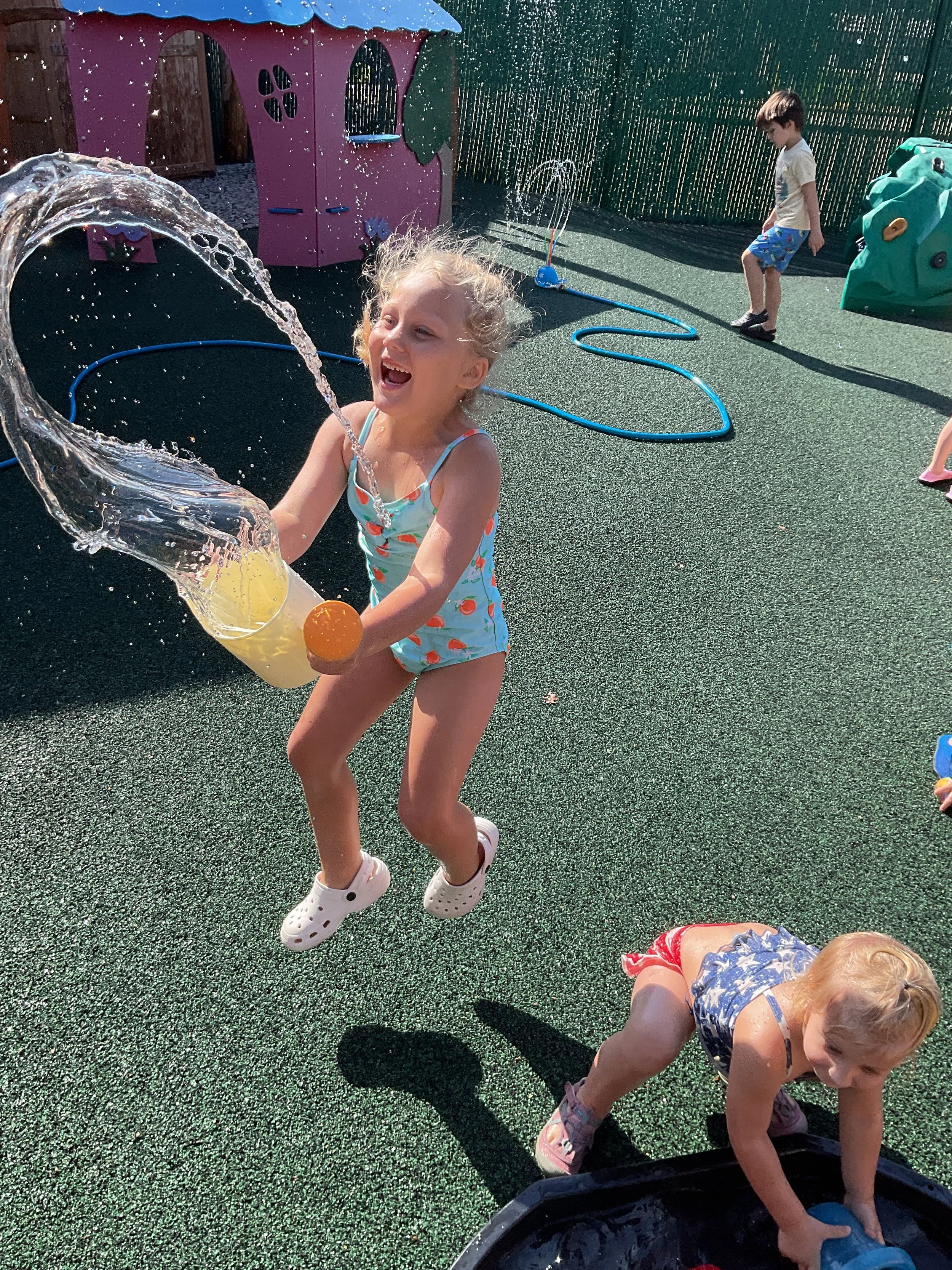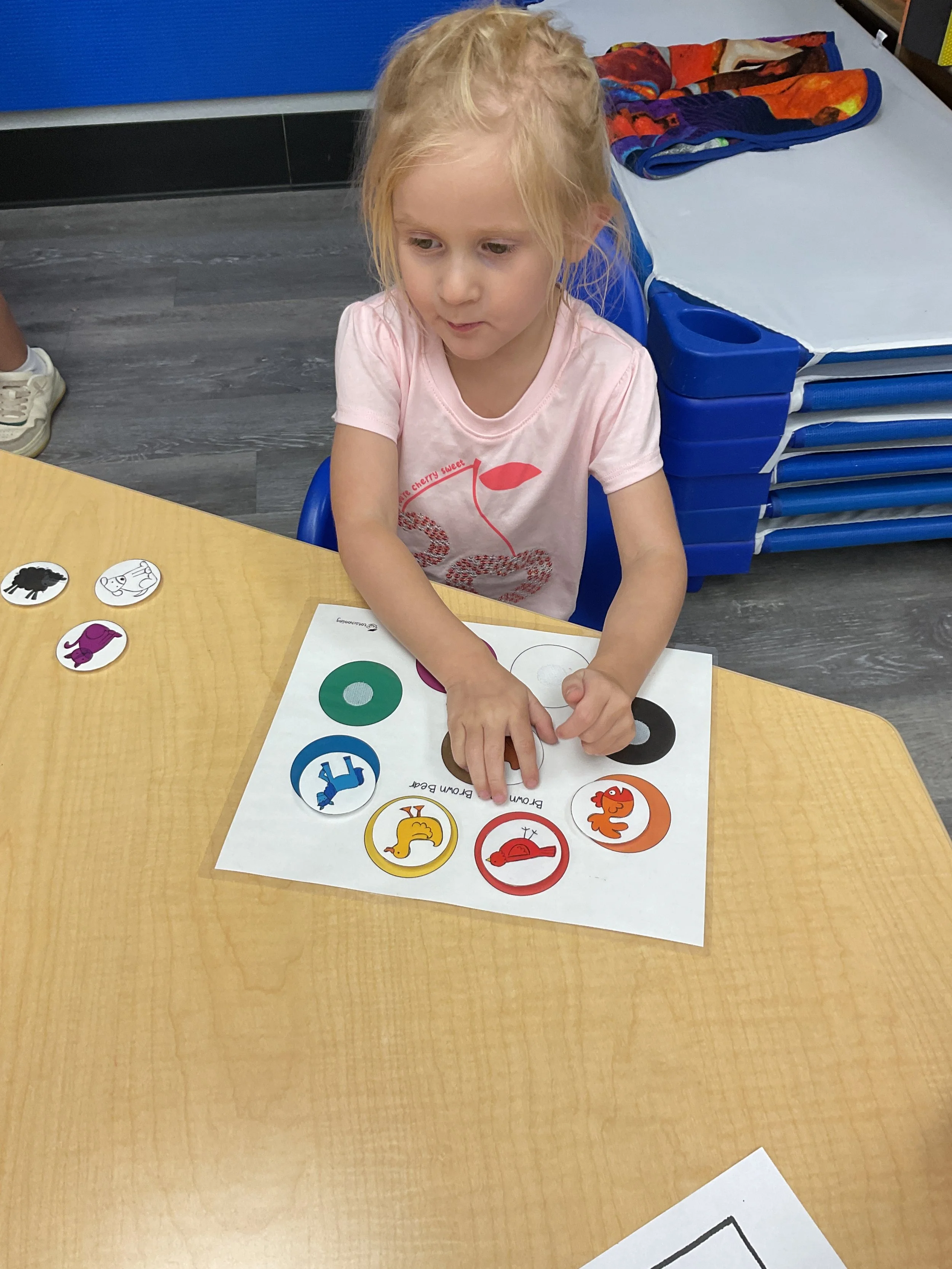 We had the best water day today! We had a kid vs. teacher water war, the kids definitely won. The victors then enjoyed popsicles! Today we read the book The Tiny Seed written and illustrated by Eric Carle. During music and movement time, we had a yoga class. During our math and cognition lesson, we worked on shape and color recognition using a Brown Bear color wheel. Next, for our science and sensory lesson, we filled our sensory bin with kinetic sand and made animals from Eric Carle's illustrations. Finally, during our fine motor and literacy lesson, we worked on our 3-finger grip by tracing lines.