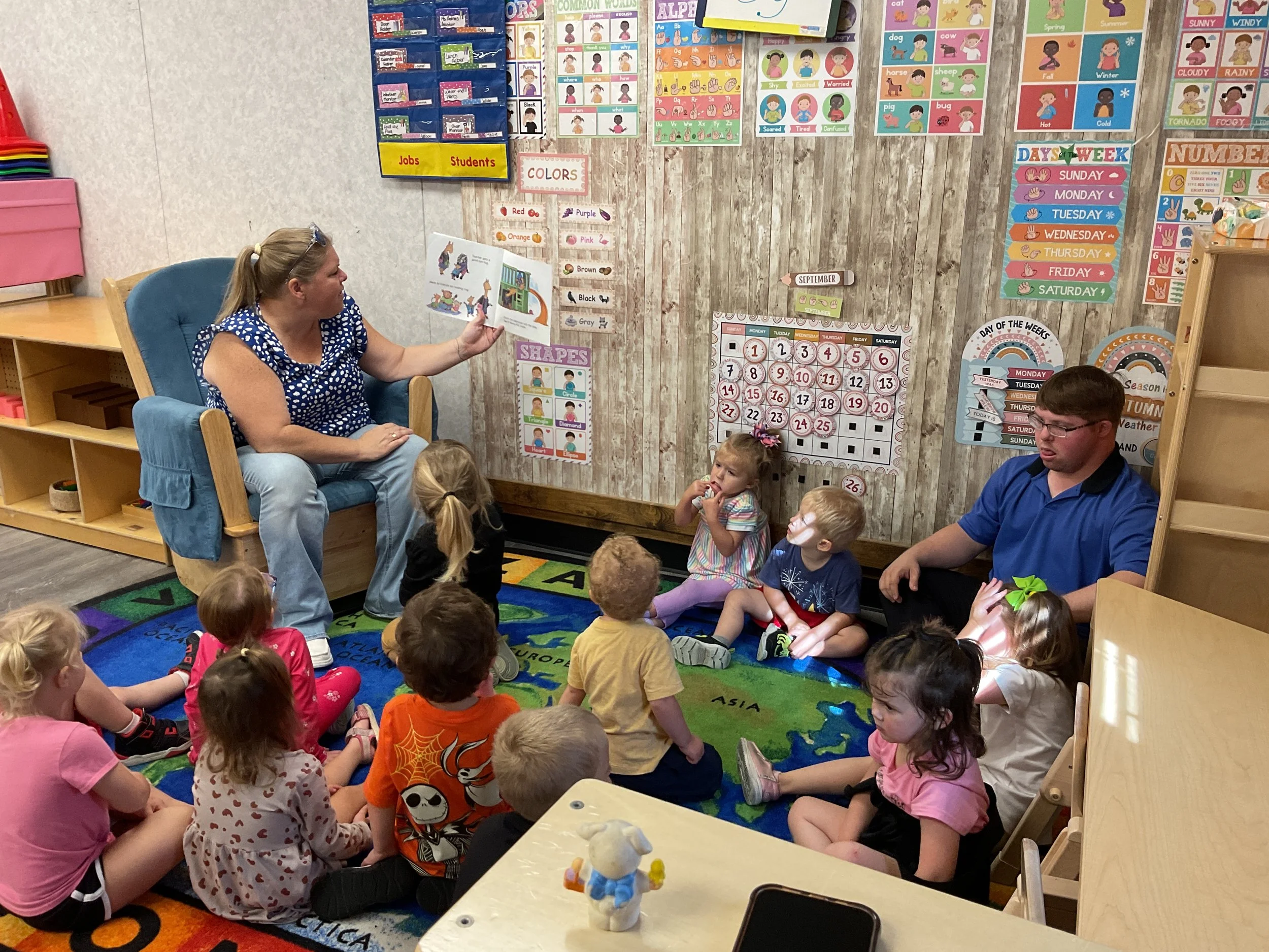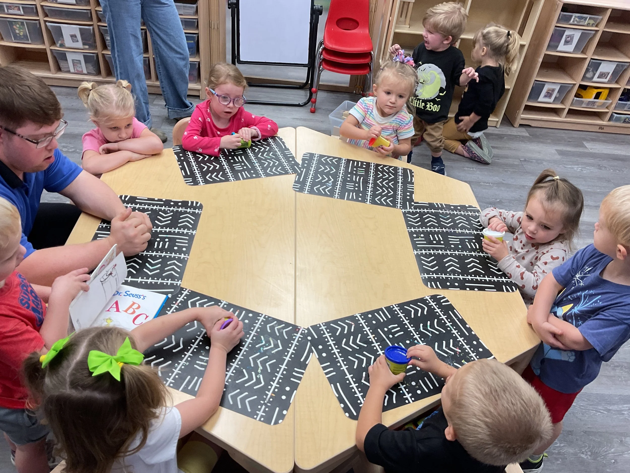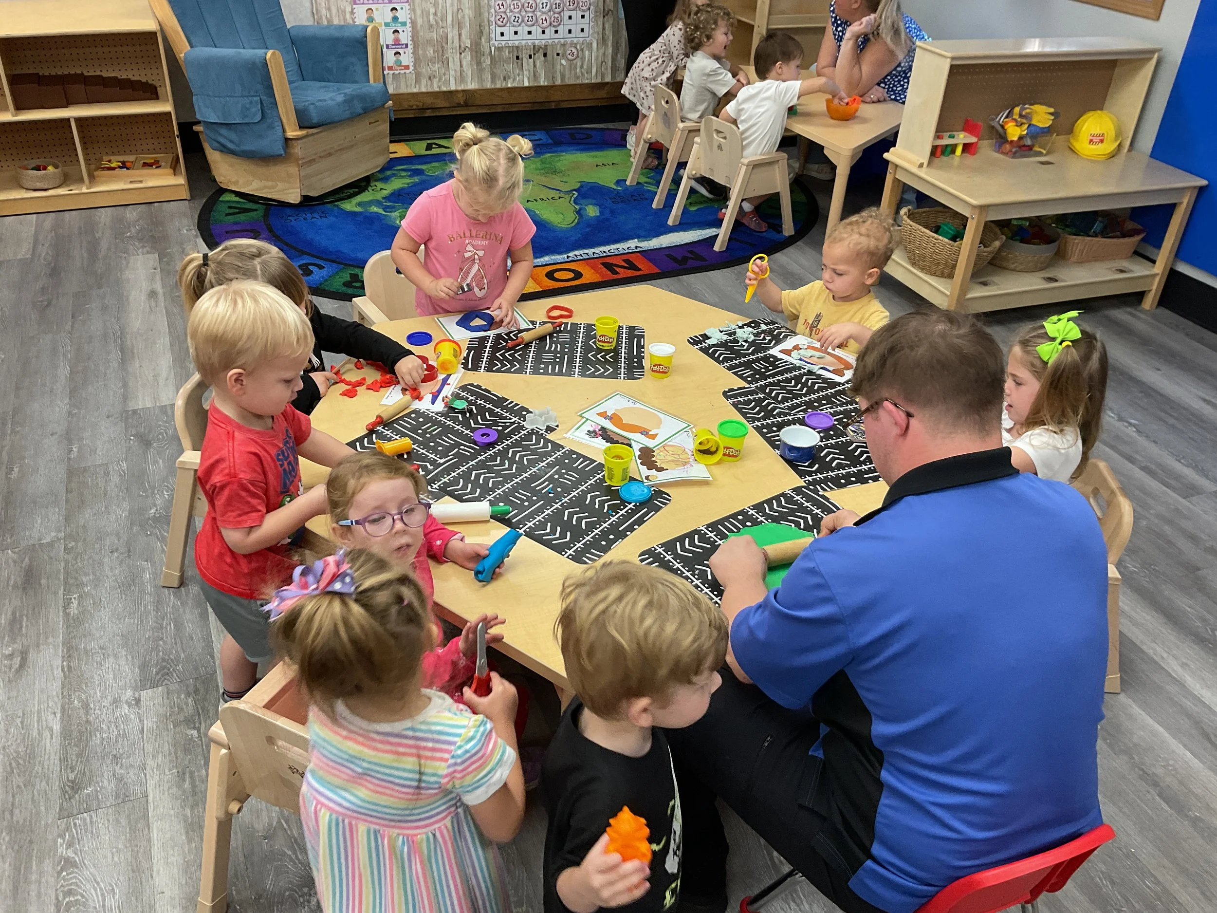 Today we read the book Llama, Llama Misses Mama written by Anna Dewdney. During our music and movement time, we took our big speaker out to the playground and had a morning dance party! Then, during our math and cognition lesson, we used our hands to make clapping patterns. Next, during our science and sensory lesson, we used playdough to make our friends and families. Finally, for our fine motor and literacy lesson, we practiced cutting out pictures of our famiies!