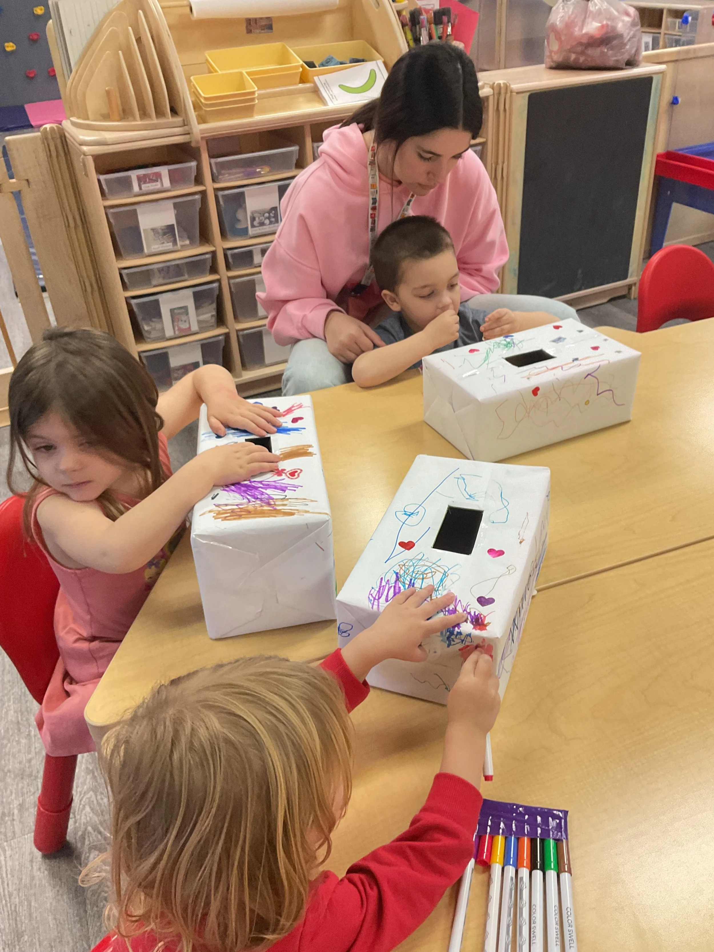 Happy Valentine’s Day!! Today we read the book Happy Valentine’s Day, Mouse! by Laura Numeroff. In this book Mouse makes each Valentine to represent what he loves most about each one of his friends. During our math and cognition activity, we made valentine dogs out of different shapes. Then during our fine motor and literacy activity, we made a letter creation. During our science and sensory activity, we passed out our valentines cards and celebrated Valentine’s Day.