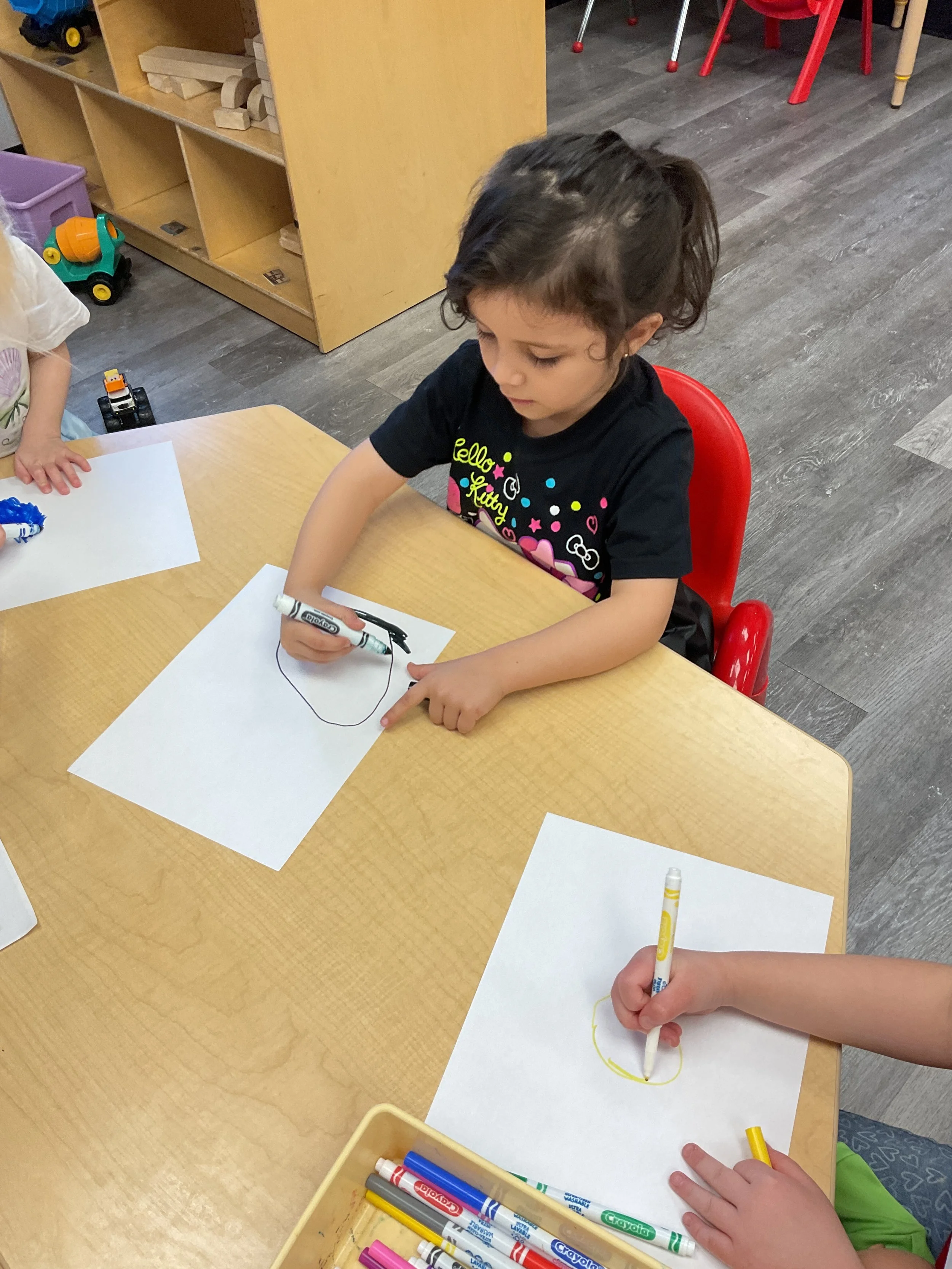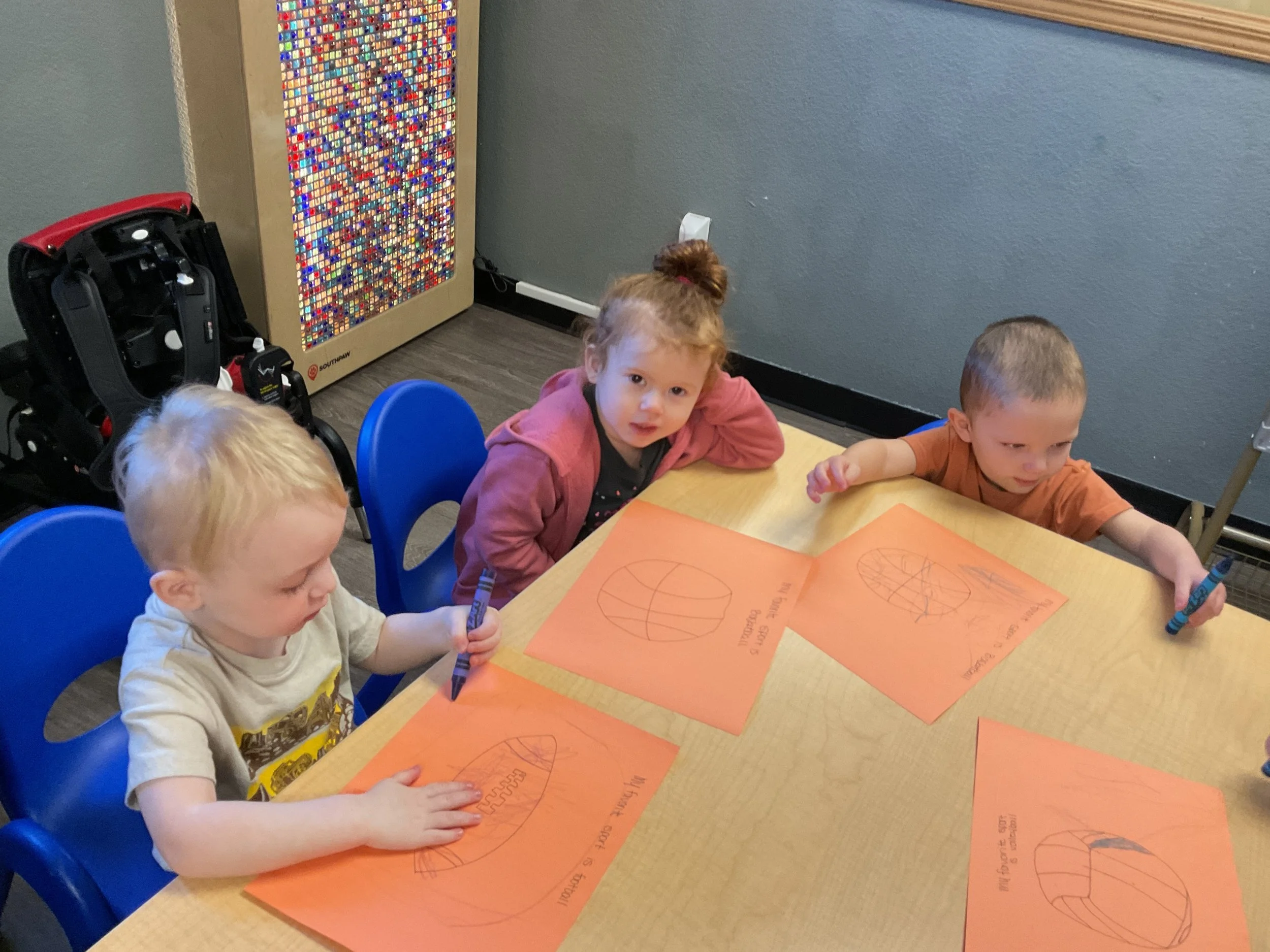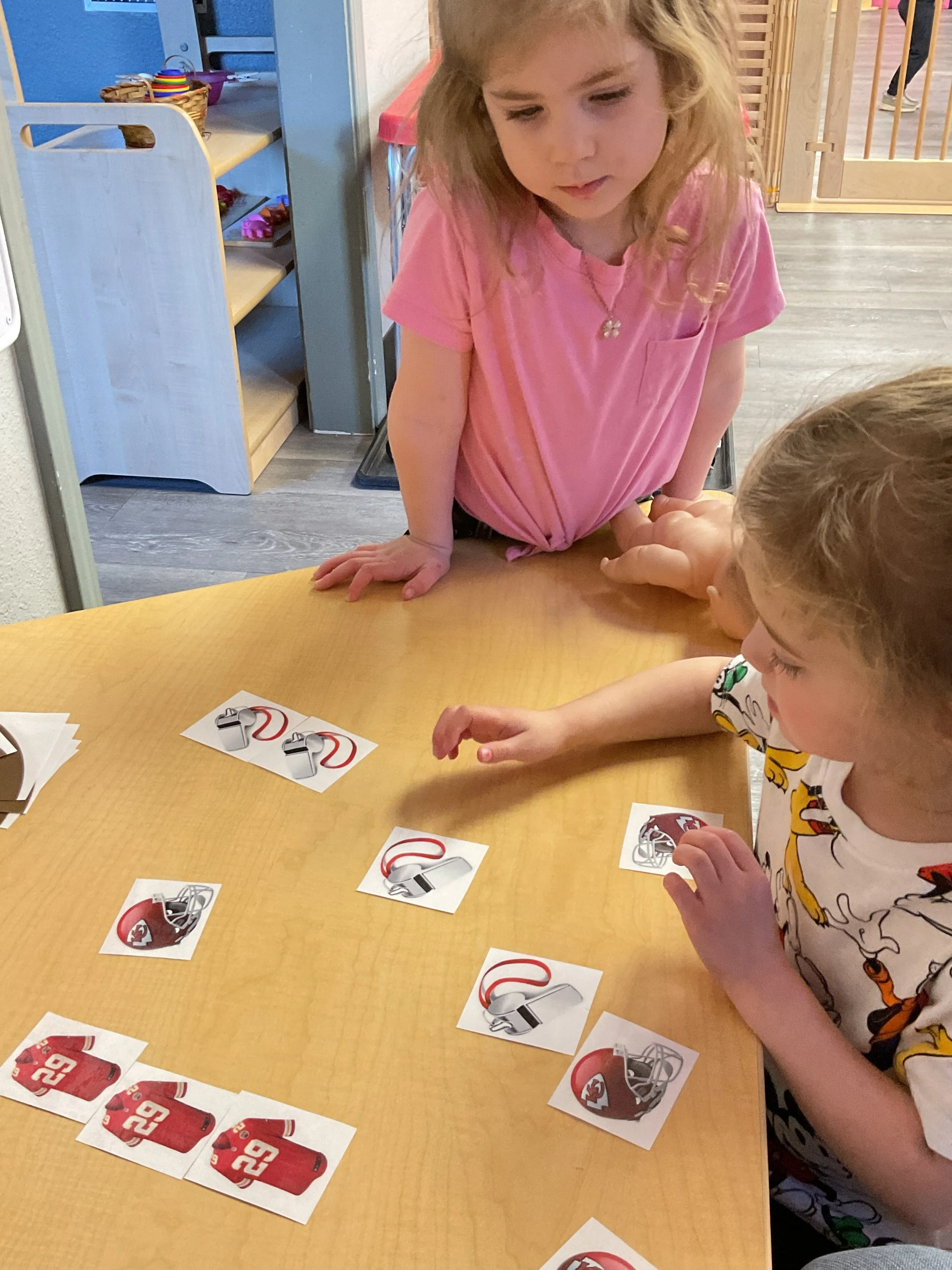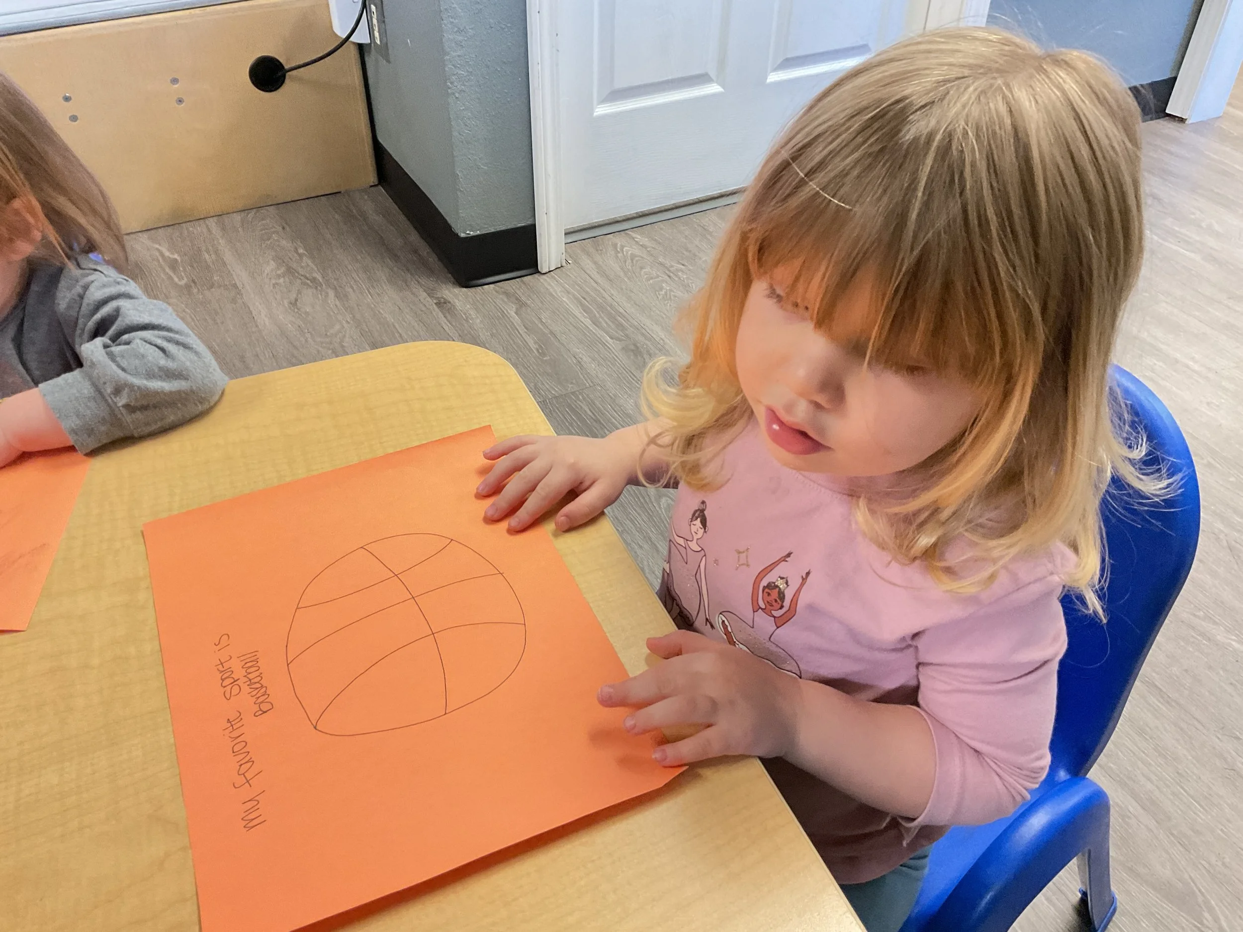 Today we read the book Dogs Don’t Wear Sneakers written by Laura Numeroff and illustrated by Joe Mathieu. During our math and cognition lesson, we counted the laces on footballs and had to find its match and we also matched football equipment together. Next, during our science and sensory lesson, we drew pictures of our favorite sports. Finally, during our fine motor and literacy lesson, we practiced tracing and writing our names.