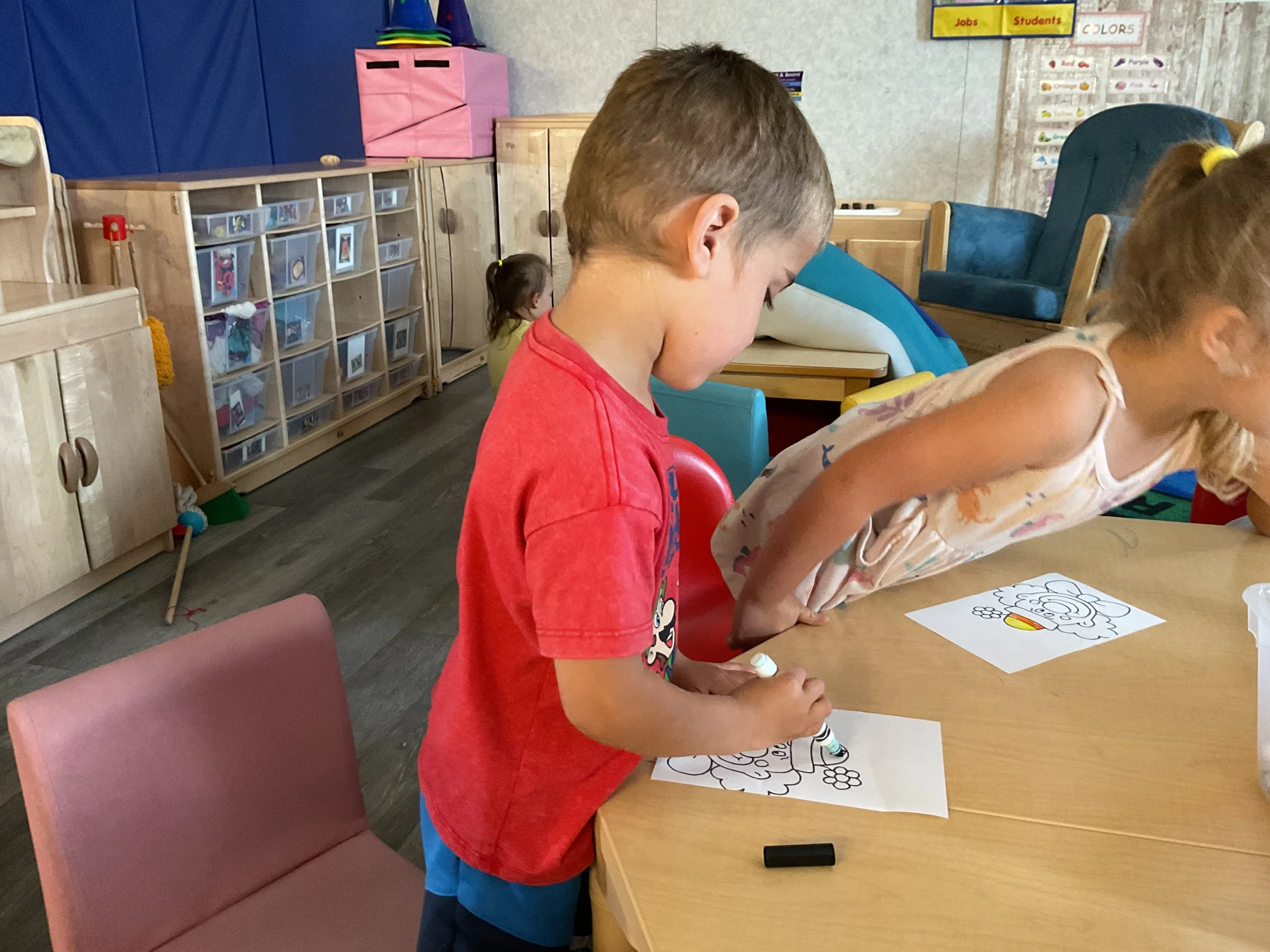 This morning, we read the book Clifford at the Circus written by Norman Bridwell. During our math and cognition lesson, we practiced counting by using scoops of ice cream to match the number of cones. Then, for our sensory and science lesson, we colored a picture of a clown. Finally, for our fine motor and literacy lesson, we listened to a book on tape.
