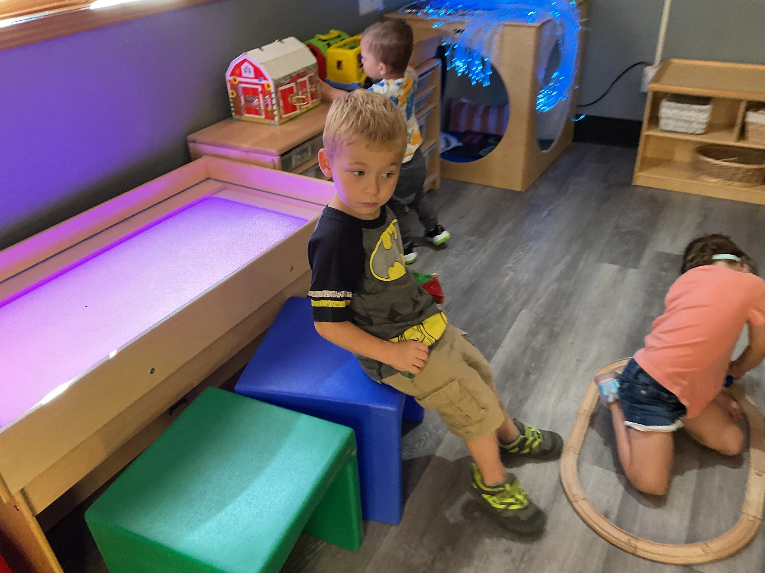 Today we read the book Bearobics by Vic Parker and Emily Bolam. First, during our math and cognition lesson, we matched animal tracks to the correct animal. Next, during our science and sensory lesson, we drew our favorite forest animals. And finally, during our fine motor and literacy lesson, we practiced writing our names!