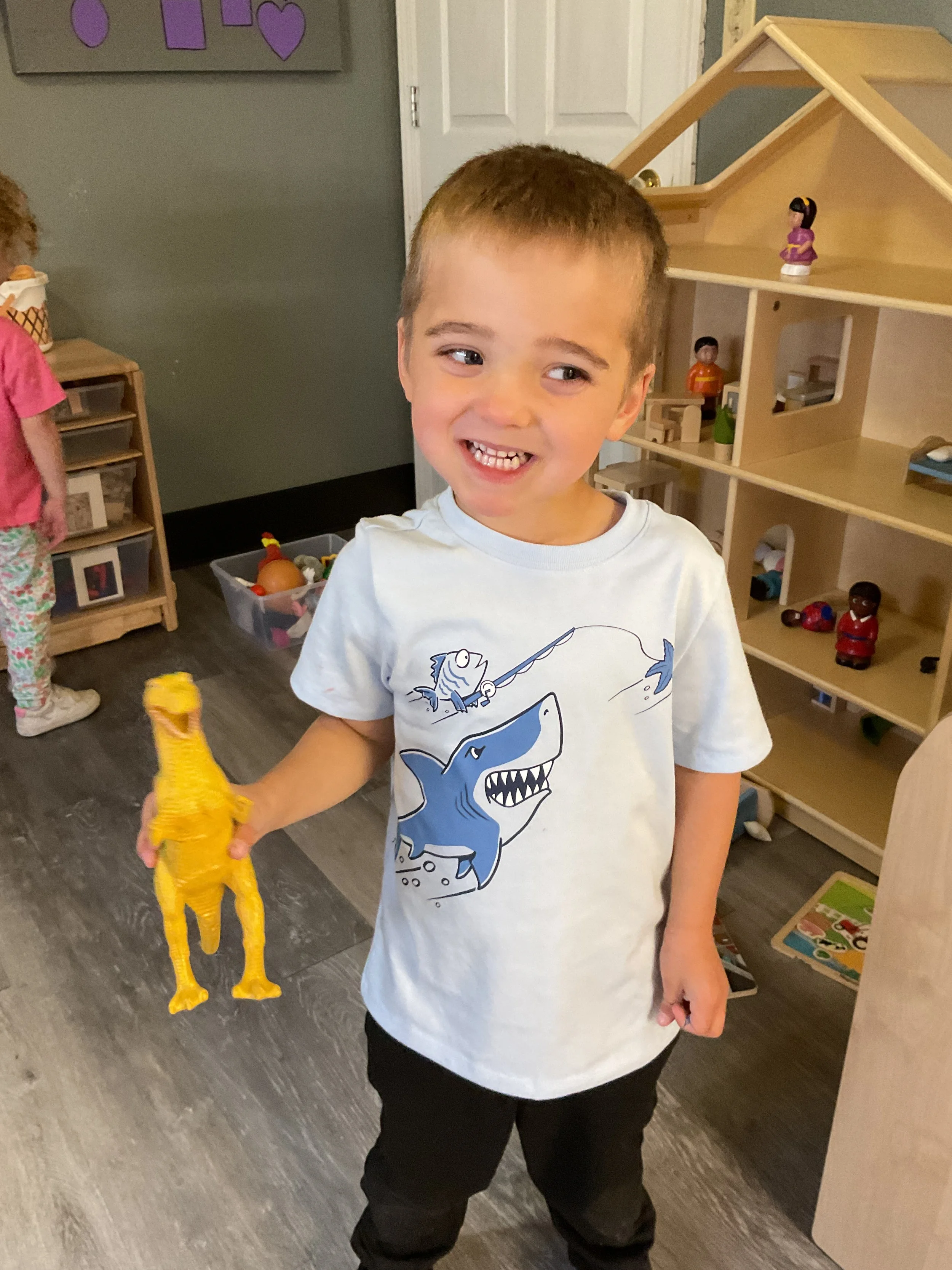 Today we read the book Frog on the Log written by Leyland Perree and illustrated by Joelle Dreidemy. During our math and cognition lesson, we sorted frogs by color. Next, for our sensory and science lesson, we drew a picture of a pond and all talked about the animals that live in a pond! Finally, for our fine motor and literacy lesson, we practiced writing and tracing our names.