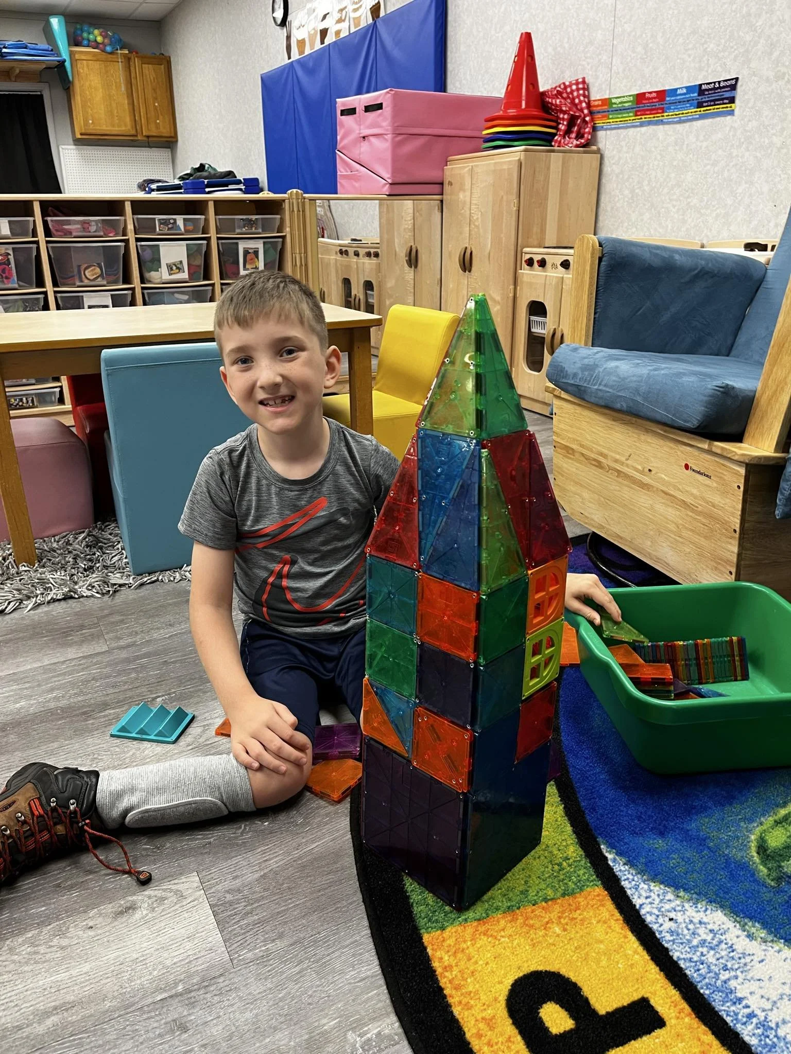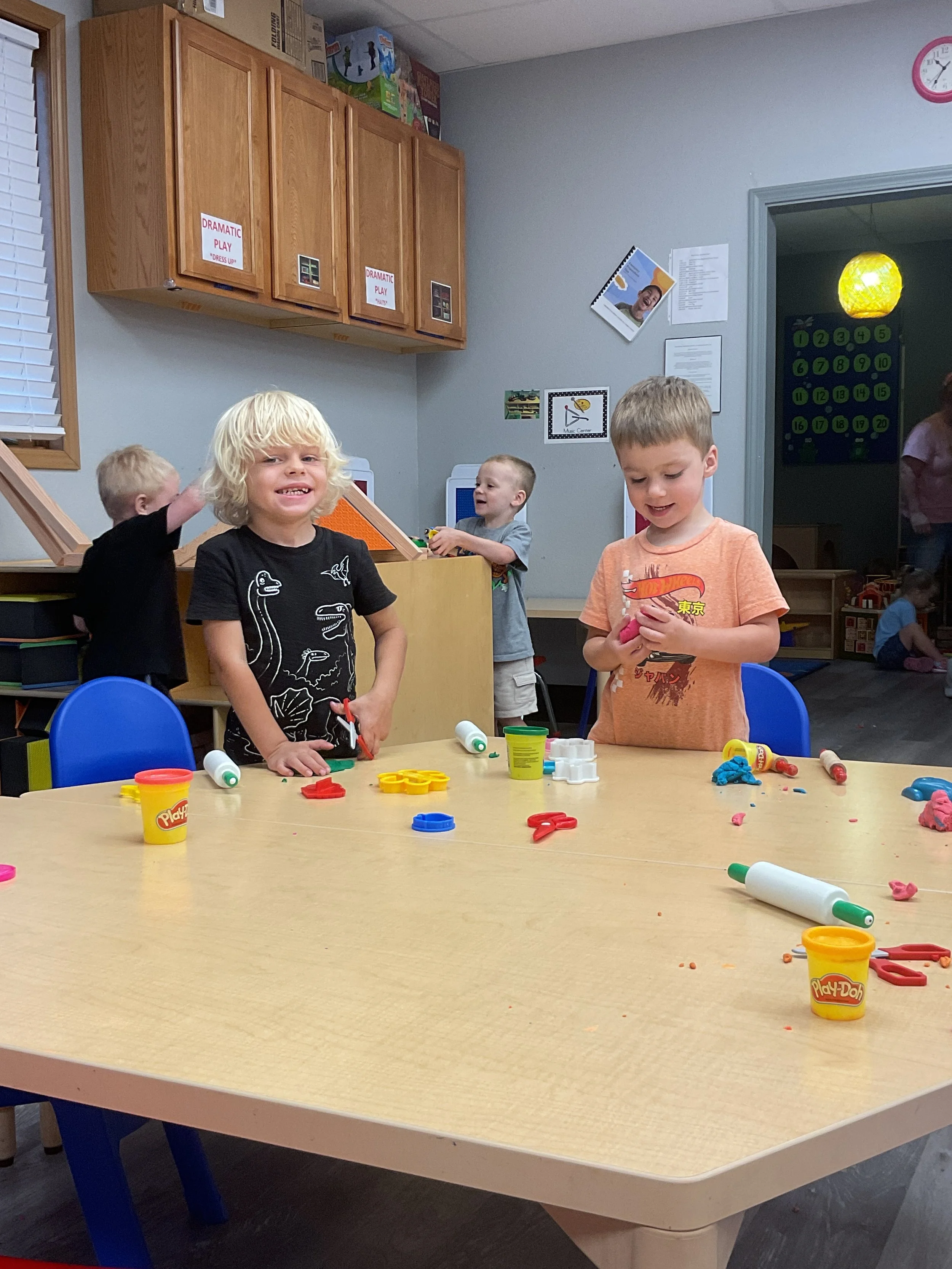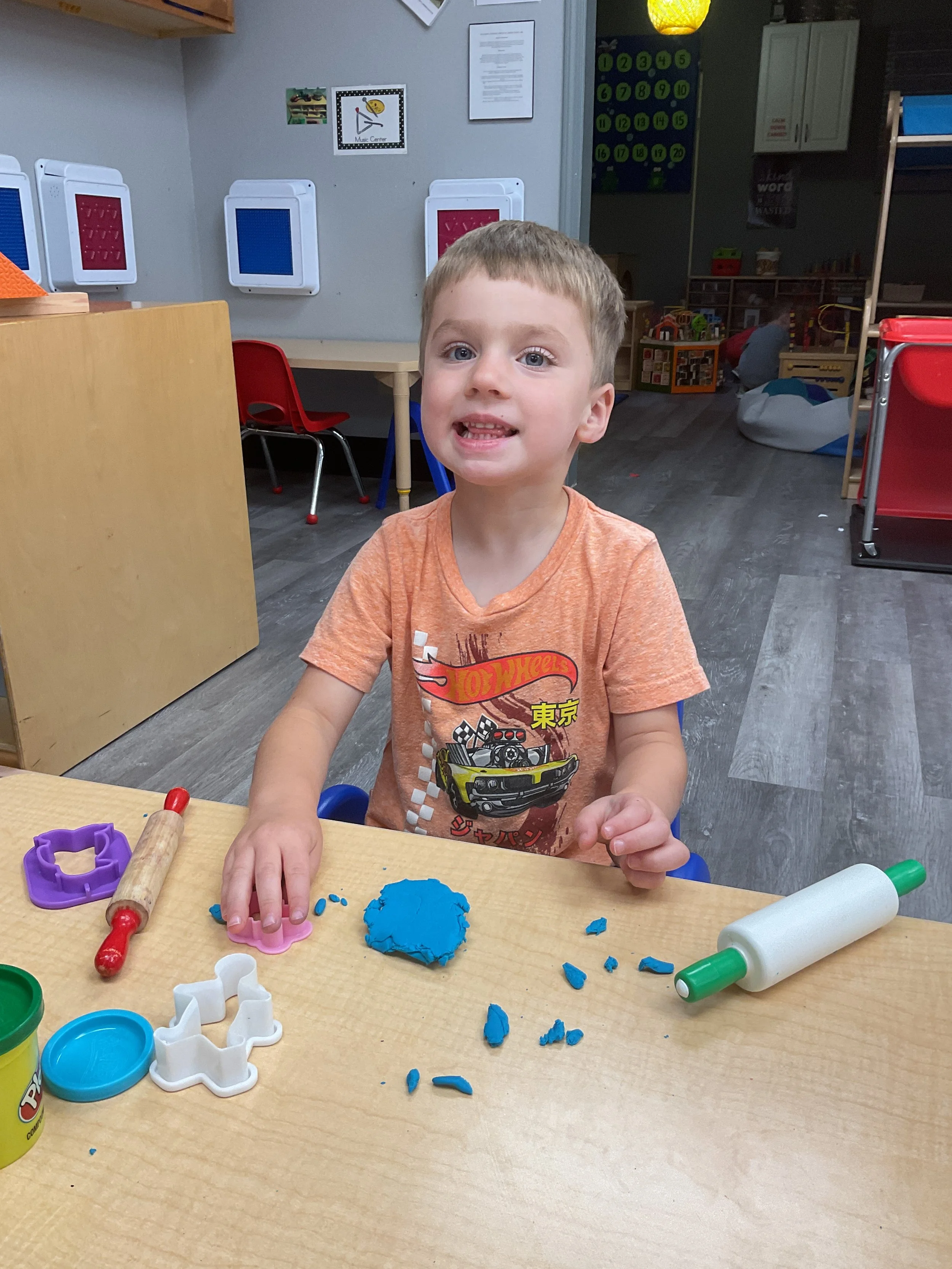 This morning, we read the book No Moon, No Milk written by Chris Babcock and illustrated by Mark Teague. This morning, during music and movement time, we played with balloons! We tried to keep them floating in the air because in space there is no gravity to hold us down. During our math and cognition lesson, we worked on completing space patterns. For our science and sensory lesson, we use playdough to make aliens and space ships. Finally, during our fine motor and literacy lesson, we practiced our cutting skills