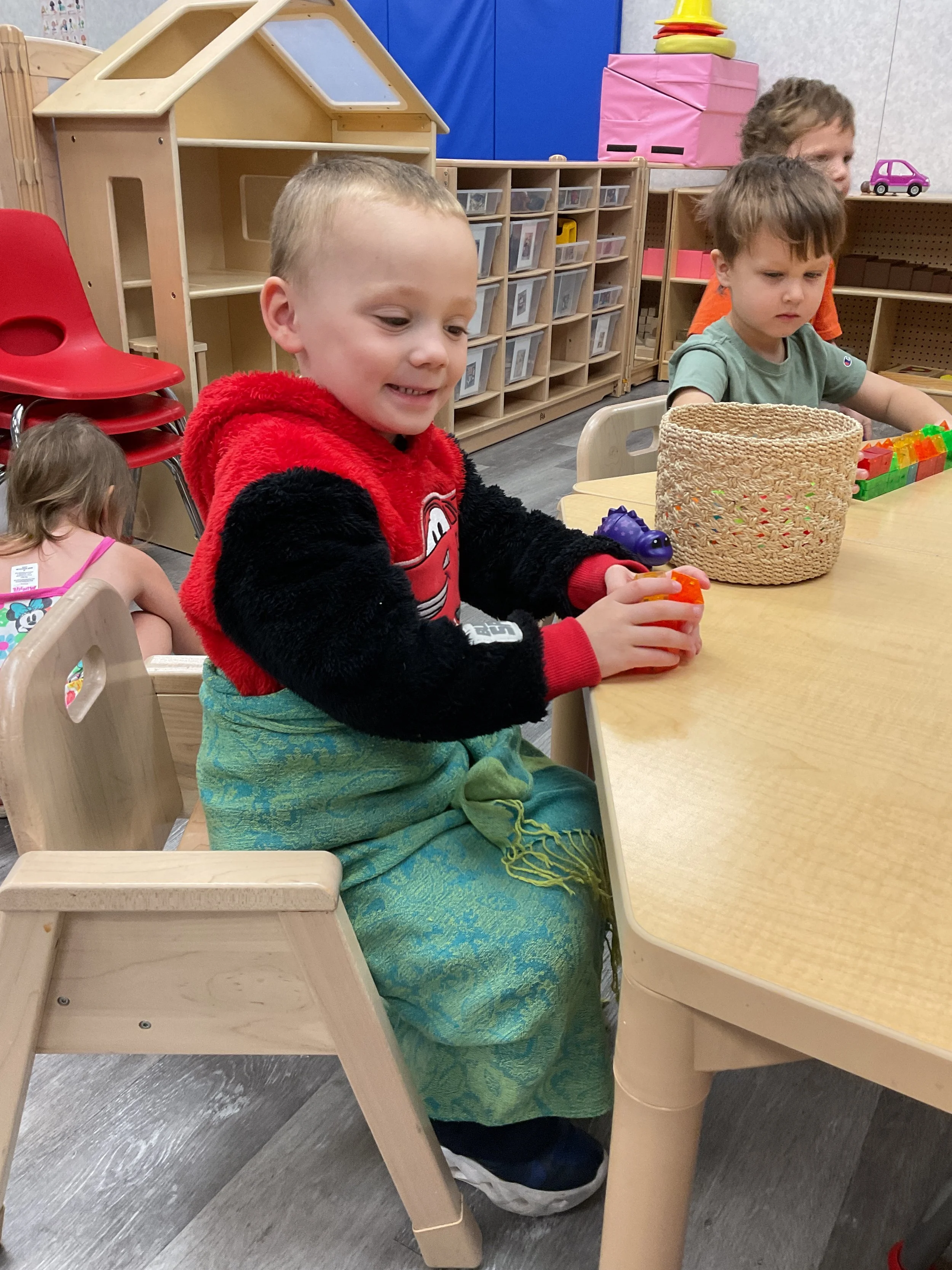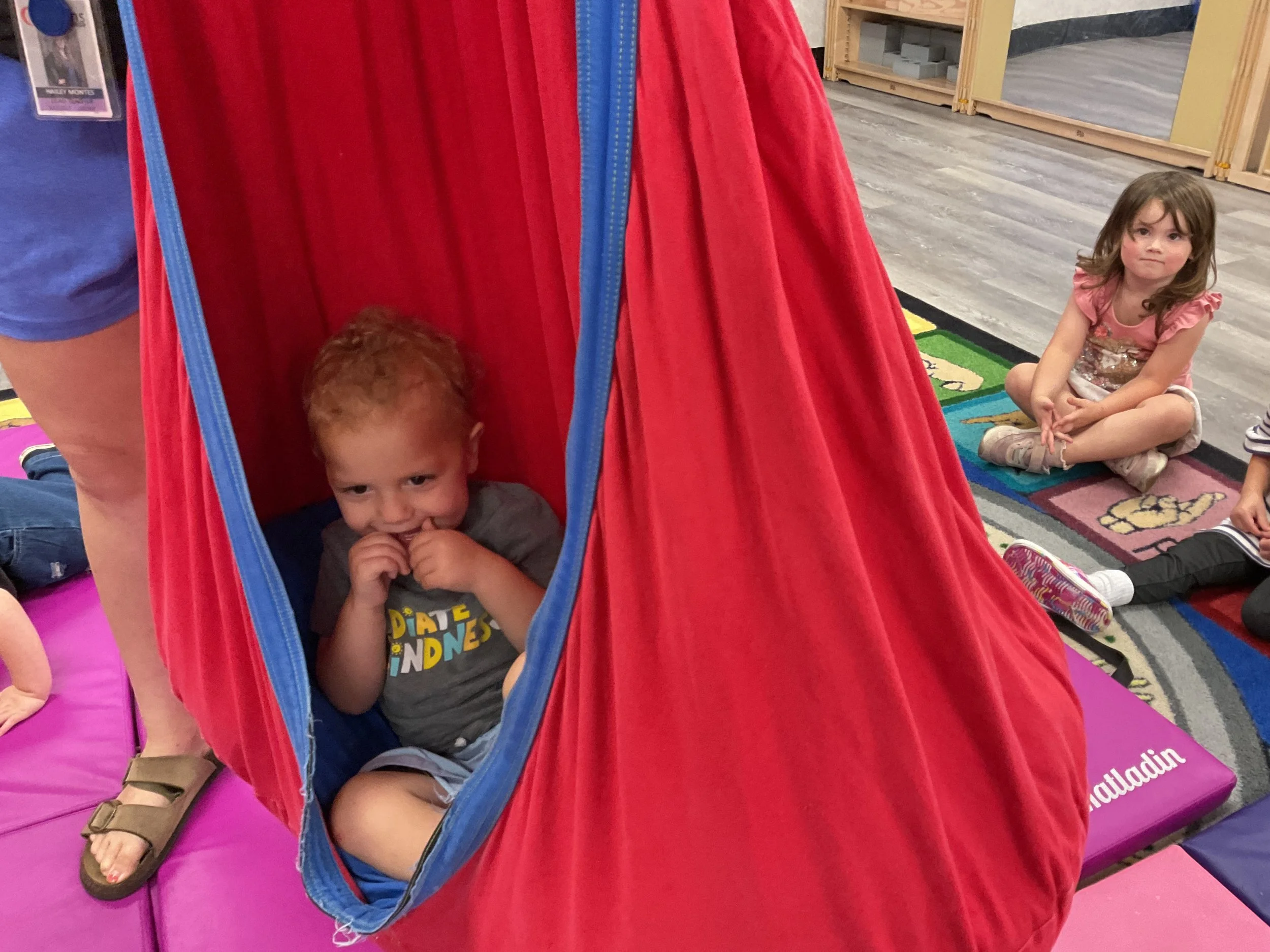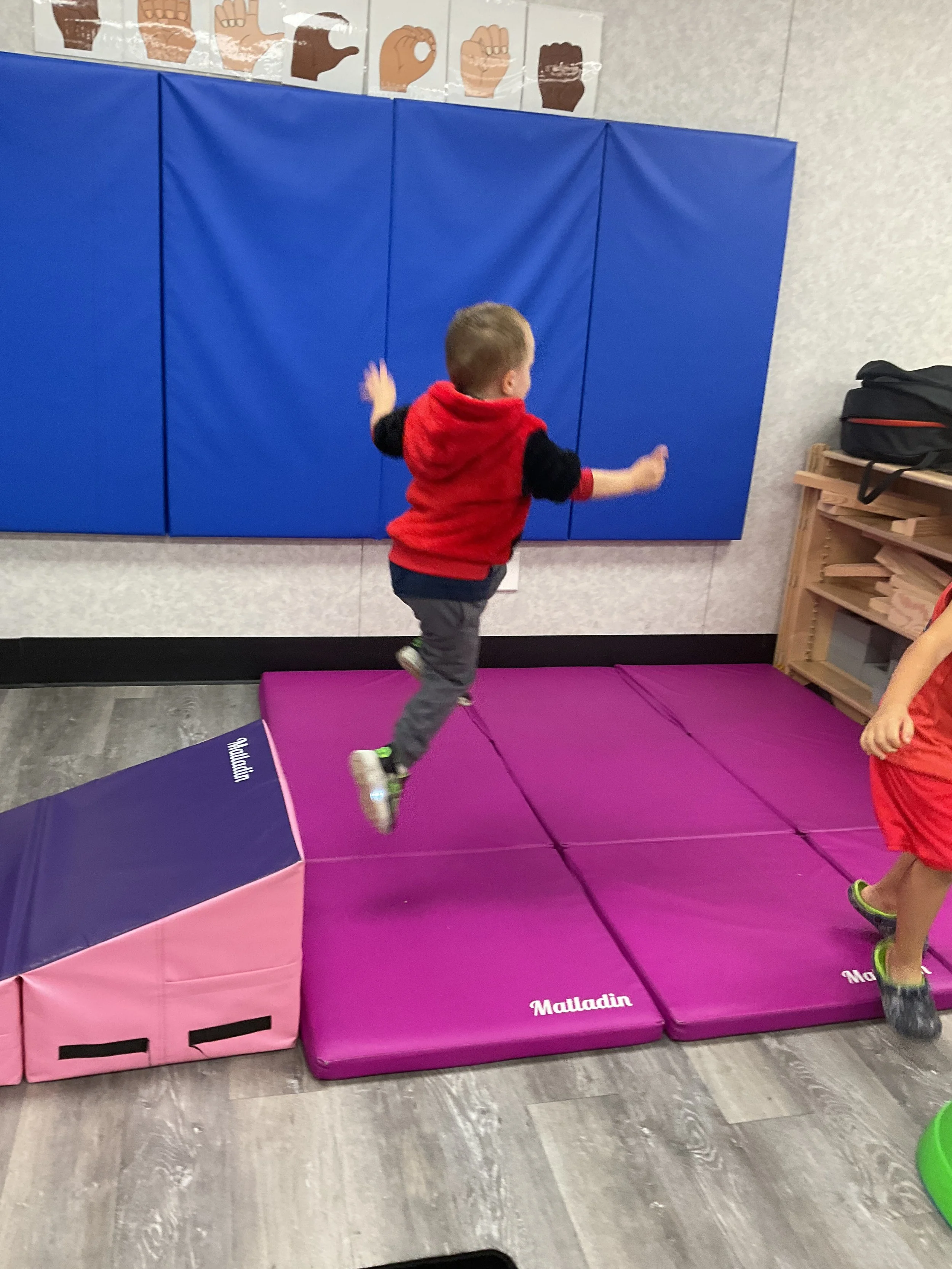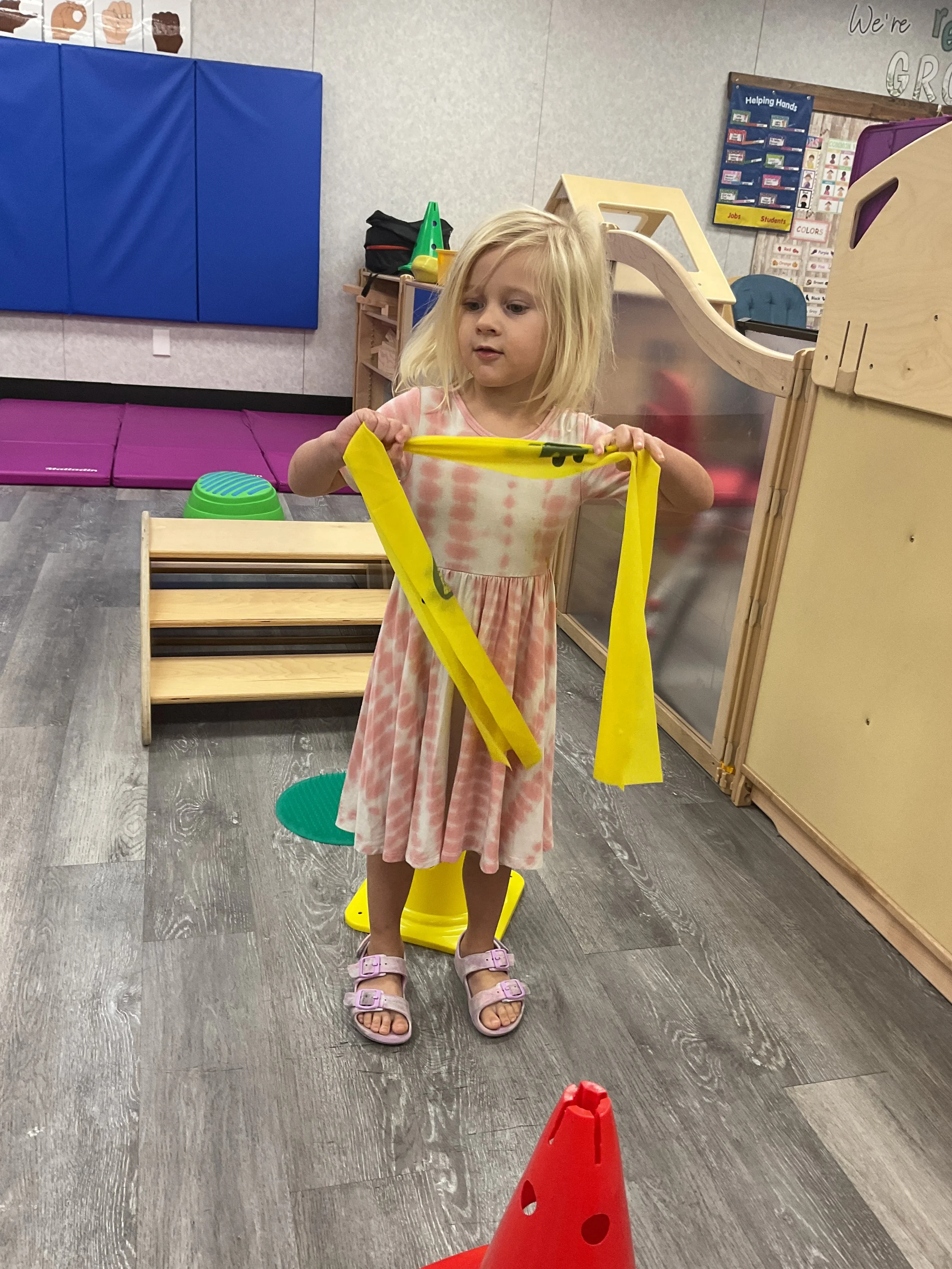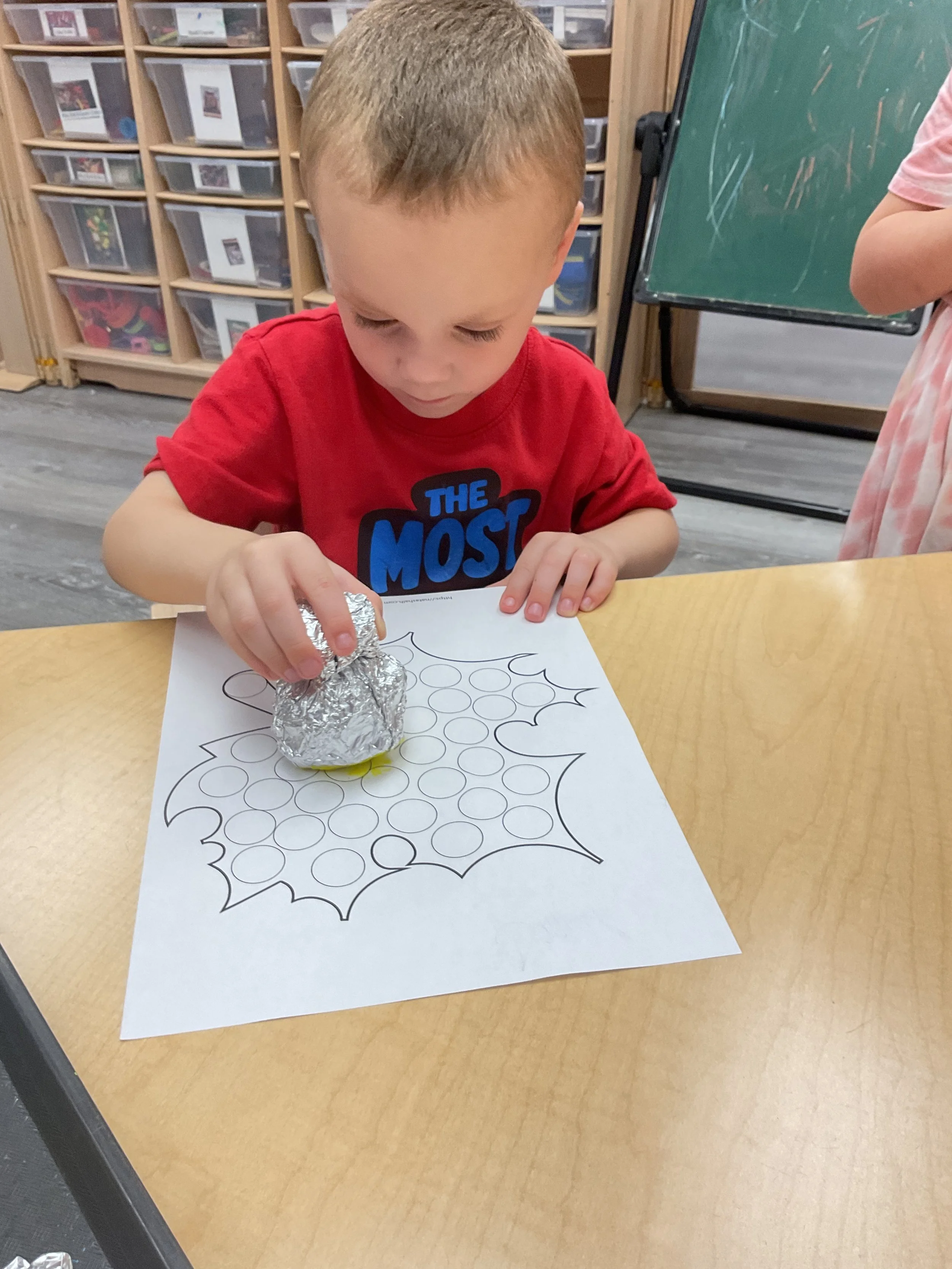 This morning, we read the book A Tree is Nice written by Janice May Udry and illustrated by Marc Semont. During our music and movement time, we navigated an obstacle course. Next, during our math and cognition lesson, we worked on beginning sounds. Then, for our science and sensory lesson, we talked about the life cycle of a plant. Finally, during our fine motor and literacy lesson, we painted tree leaves yellow with foil stampers.