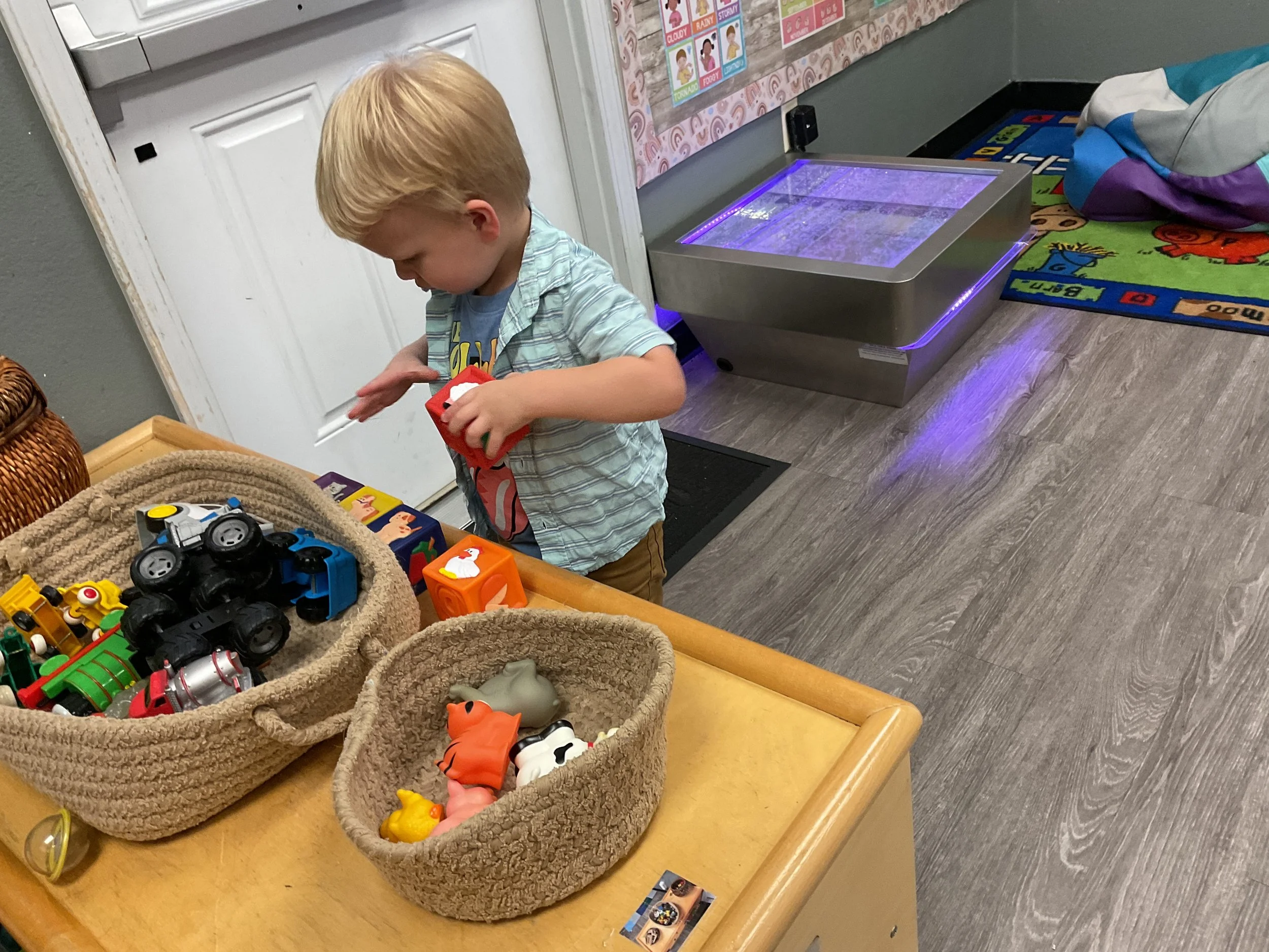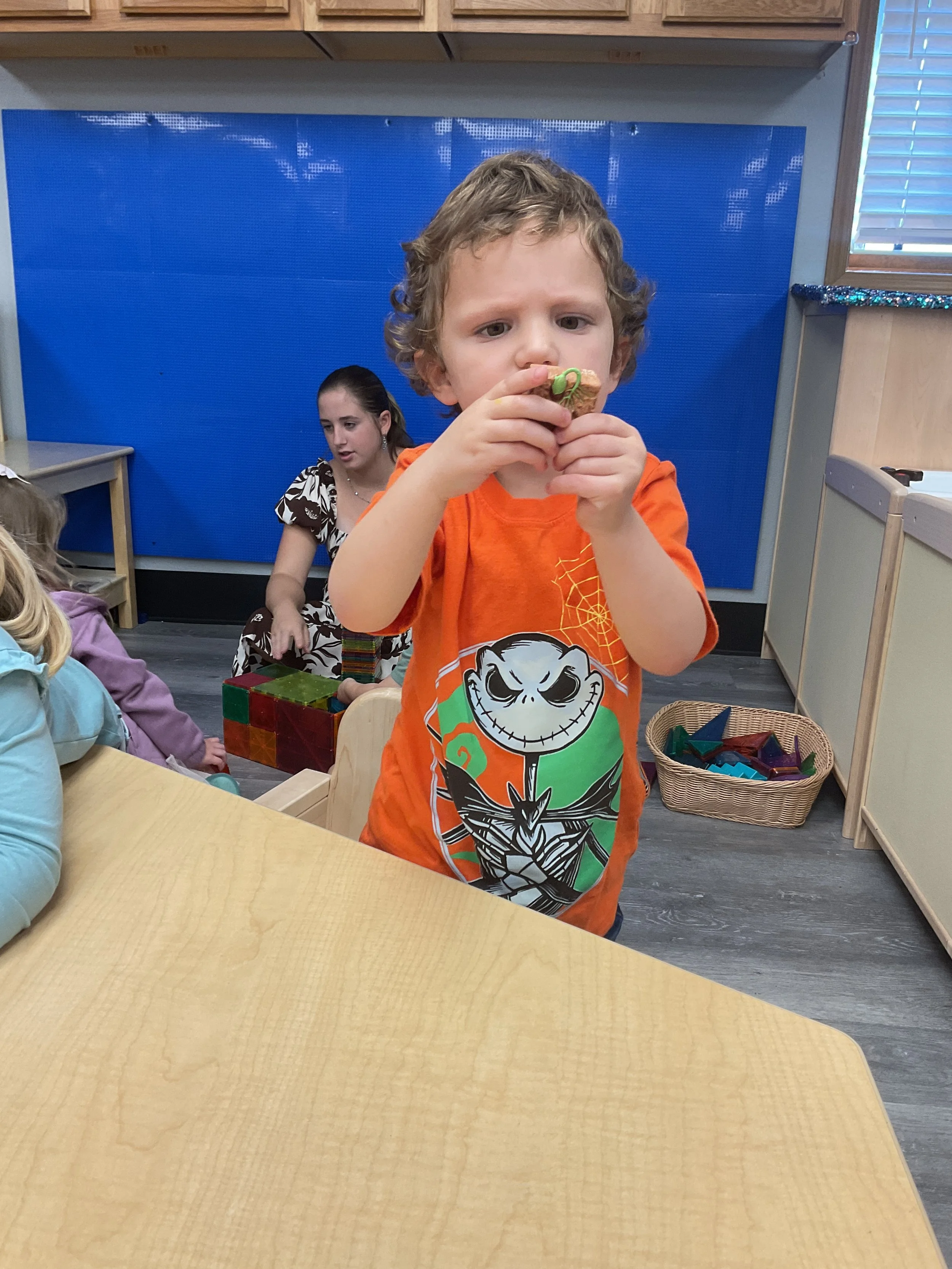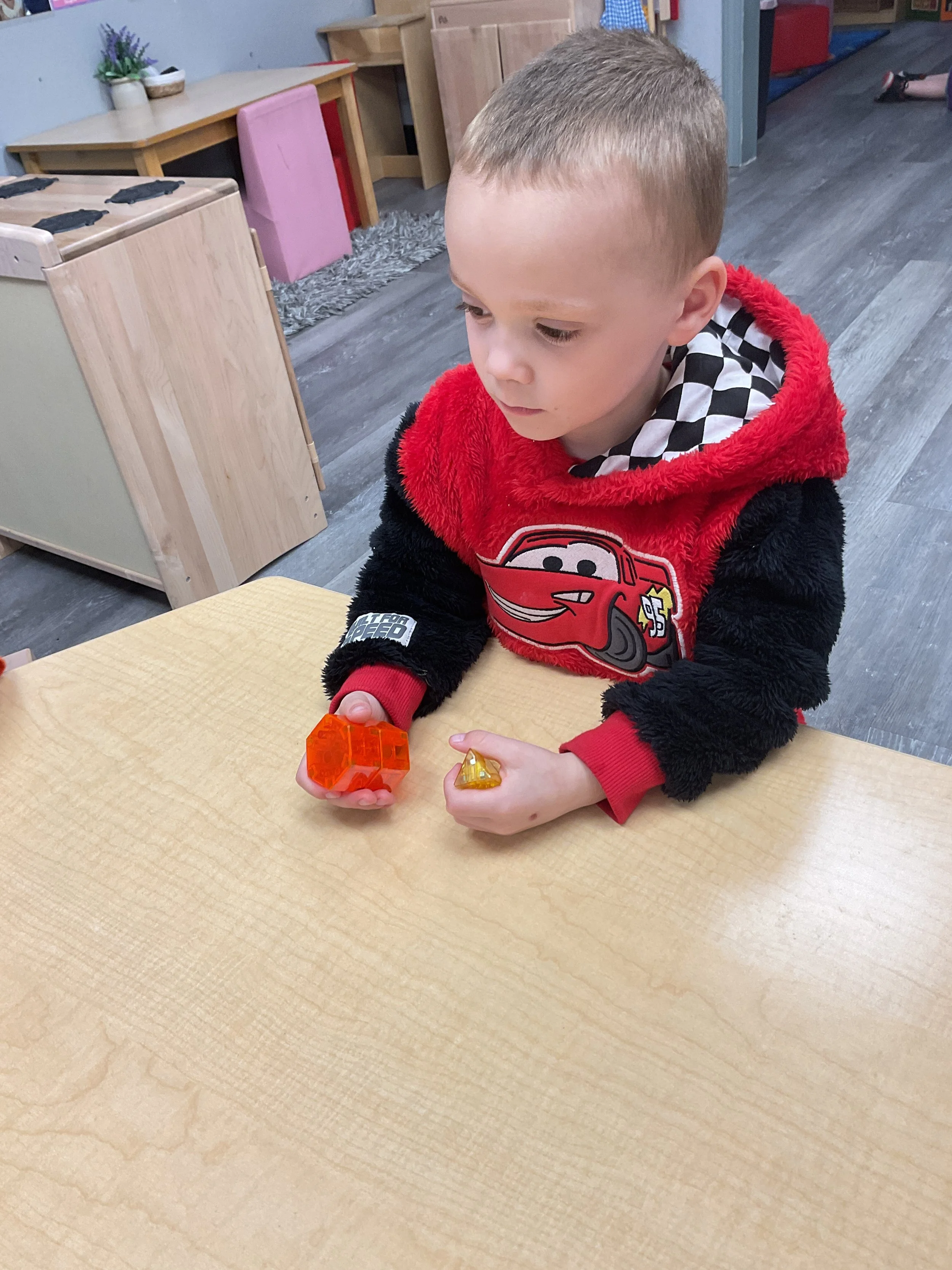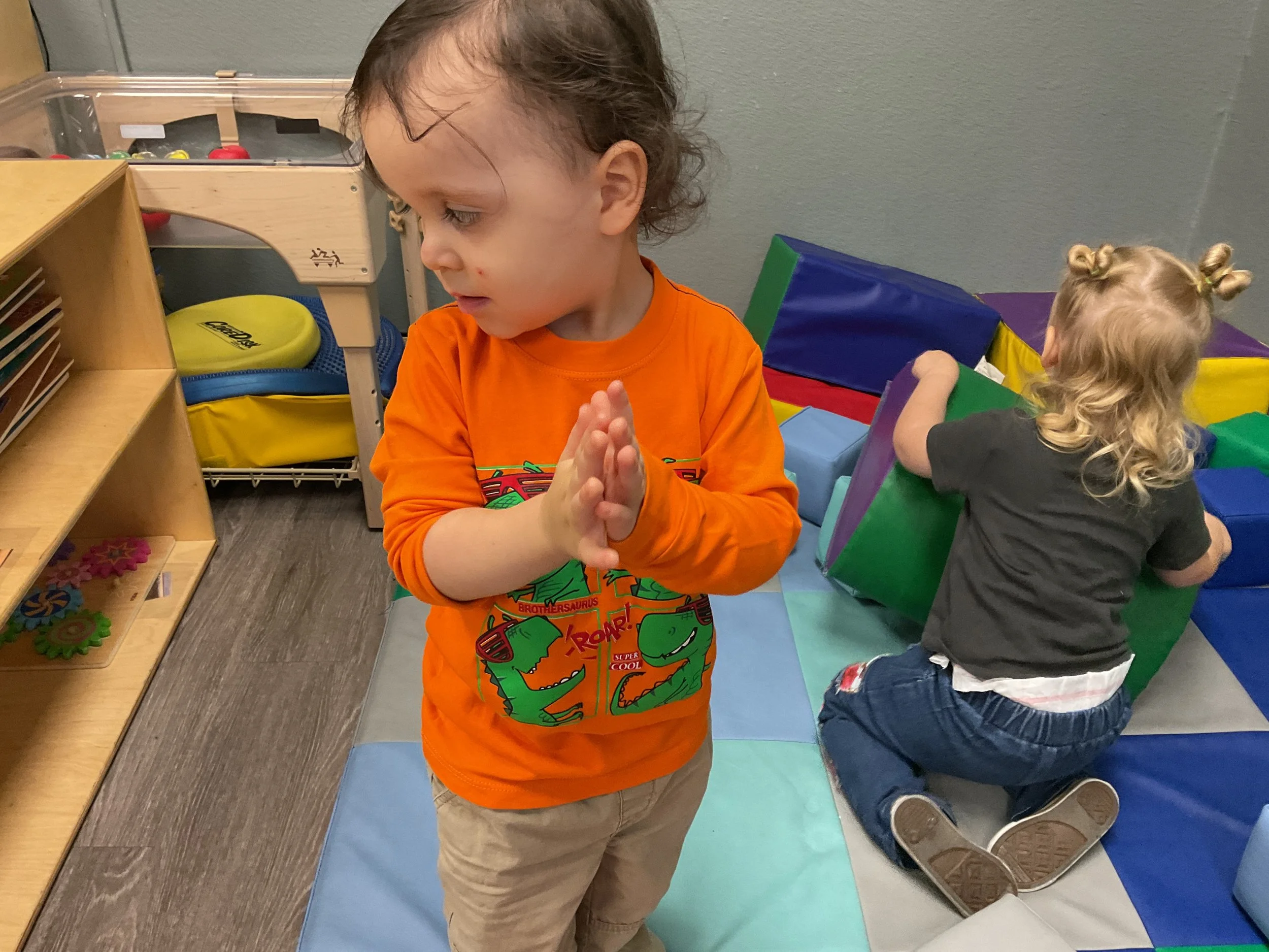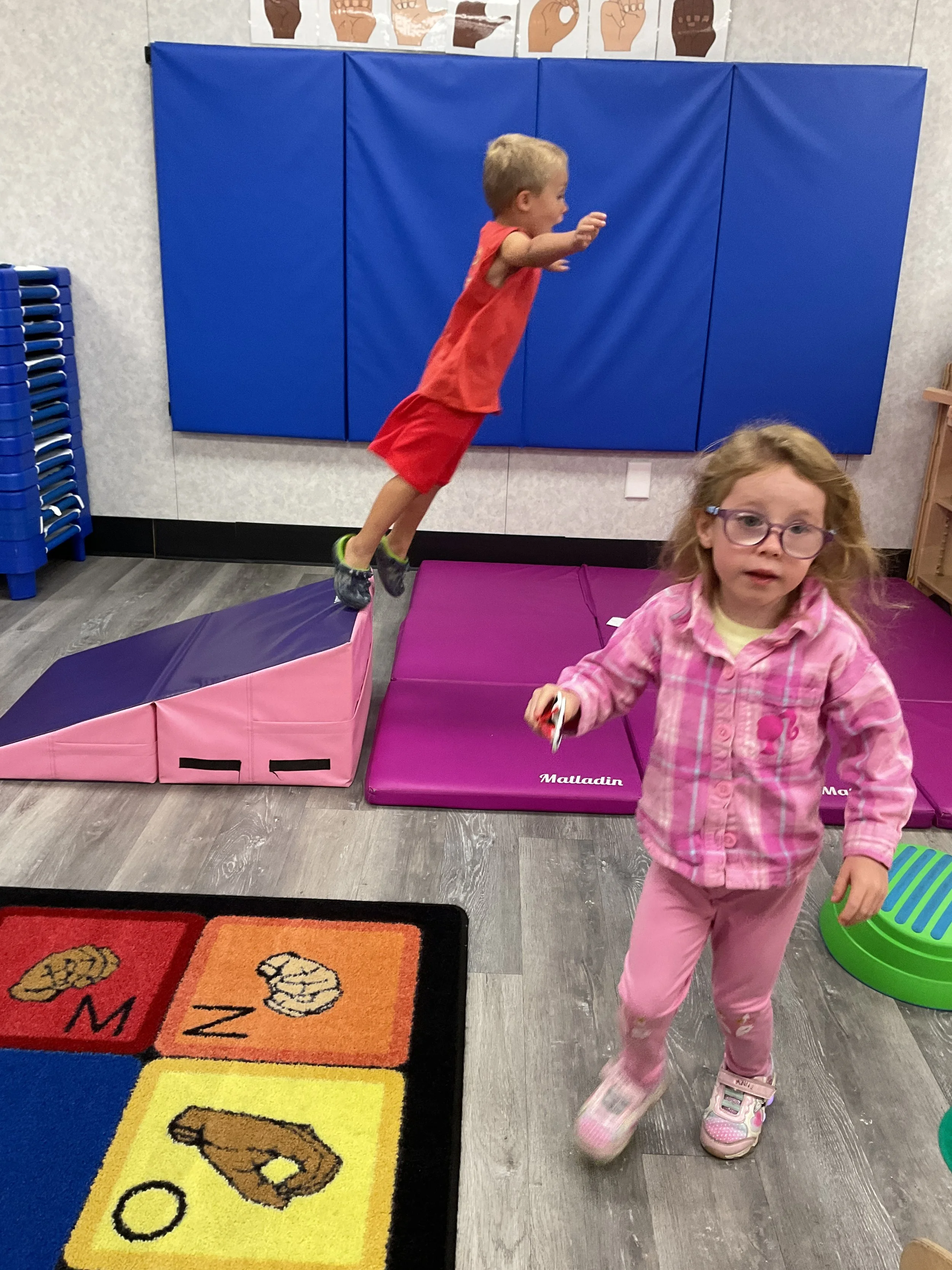 This morning, we read the book A Tree is Nice written by Janice May Udry and illustrated by Marc Semont. During our music and movement time, we navigated an obstacle course. Next, during our math and cognition lesson, we worked on beginning sounds. Then, for our science and sensory lesson, we talked about the life cycle of a plant. Finally, during our fine motor and literacy lesson, we painted tree leaves yellow with foil stampers.